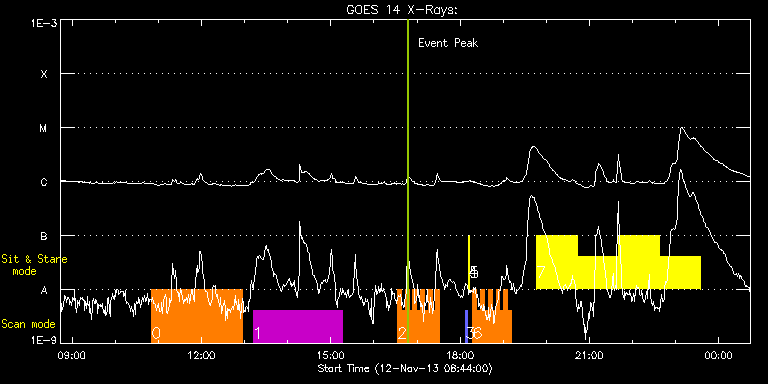EIS Observation timeline overlay to GOES-Xray curve Code 1" 2" 40" 266" EIS Observations list for this event: STUDY ACRONYM ID DATE OBSERVED DESCRIPTION NOAA# TARGET 0 cam_ar_limb_lite_v2 | 37375 | 2013/11/12 10:50:43 | AR Tempreture Diagnostic | | Active Region TIMELINE ID DATE OBSERVED FITS FILE XCEN (+W/-E) YCEN (+N/-S) DUR ----------------------------------------------------------------------------------------------------------------- 37375 | 2013/11/12 10:50:43.000 | eis_l0_20131112_105043.fits.gz | -9869.70 | -9963.20 | 2h6m1s 1 HPW021_VEL_240x512v1 | 37378 | 2013/11/12 13:12:27 | AR11890 obs | 1890 | Active Region TIMELINE ID DATE OBSERVED FITS FILE XCEN (+W/-E) YCEN (+N/-S) DUR ----------------------------------------------------------------------------------------------------------------- 37378 | 2013/11/12 13:12:27.000 | eis_l0_20131112_131227.fits.gz | -9869.71 | -9963.20 | 2h3m48s 2 HH_Flare+AR_180x152 | 37364 | 2013/11/12 16:32:57 | AR11890 obs | 1890 | Flare TIMELINE ID DATE OBSERVED FITS FILE XCEN (+W/-E) YCEN (+N/-S) DUR ----------------------------------------------------------------------------------------------------------------- 37364 | 2013/11/12 16:32:57.000 | eis_l0_20131112_163257.fits.gz | -9871.70 | -9963.20 | 5m18s 37364 | 2013/11/12 16:38:18.000 | eis_l0_20131112_163818.fits.gz | -9871.70 | -9963.20 | 5m17s 37364 | 2013/11/12 16:43:38.000 | eis_l0_20131112_164338.fits.gz | -9871.70 | -9963.20 | 5m18s 37364 | 2013/11/12 16:48:59.000 | eis_l0_20131112_164859.fits.gz | -9871.70 | -9963.20 | 5m18s 37364 | 2013/11/12 16:54:20.000 | eis_l0_20131112_165420.fits.gz | -9871.70 | -9963.20 | 5m18s 37364 | 2013/11/12 16:59:41.000 | eis_l0_20131112_165941.fits.gz | -9871.70 | -9963.20 | 5m18s 37364 | 2013/11/12 17:05:02.000 | eis_l0_20131112_170502.fits.gz | -9871.70 | -9963.20 | 5m18s 37364 | 2013/11/12 17:10:23.000 | eis_l0_20131112_171023.fits.gz | -9871.70 | -9963.20 | 5m18s 37364 | 2013/11/12 17:15:44.000 | eis_l0_20131112_171544.fits.gz | -9871.70 | -9963.20 | 5m17s 37364 | 2013/11/12 17:21:04.000 | eis_l0_20131112_172104.fits.gz | -9871.70 | -9963.20 | 5m18s 37364 | 2013/11/12 17:26:25.000 | eis_l0_20131112_172625.fits.gz | -9871.70 | -9963.20 | 5m18s 3 PRY_slot_contextLITE | 37354 | 2013/11/12 18:07:50 | EIS-AIA alignment | | Active Region TIMELINE ID DATE OBSERVED FITS FILE XCEN (+W/-E) YCEN (+N/-S) DUR ----------------------------------------------------------------------------------------------------------------- 37354 | 2013/11/12 18:07:50.000 | eis_l0_20131112_180750.fits.gz | -9884.69 | -9963.20 | 2m56s 4 Alignment_266 | 37355 | 2013/11/12 18:11:05 | EIS-AIA alignment | | Quiet Sun TIMELINE ID DATE OBSERVED FITS FILE XCEN (+W/-E) YCEN (+N/-S) DUR ----------------------------------------------------------------------------------------------------------------- 37355 | 2013/11/12 18:11:05.000 | eis_l0_20131112_181105.fits.gz | -10002.00 | -9963.20 | 1m22s 5 XRT_synop_AIA | 37356 | 2013/11/12 18:13:12 | EIS-AIA alignment | | Quiet Sun TIMELINE ID DATE OBSERVED FITS FILE XCEN (+W/-E) YCEN (+N/-S) DUR ----------------------------------------------------------------------------------------------------------------- 37356 | 2013/11/12 18:13:12.000 | eis_l0_20131112_181312.fits.gz | -10002.00 | -9963.20 | 10s 6 HH_Flare+AR_180x152 | 37365 | 2013/11/12 18:17:50 | AR11890 obs | 1890 | Flare TIMELINE ID DATE OBSERVED FITS FILE XCEN (+W/-E) YCEN (+N/-S) DUR ----------------------------------------------------------------------------------------------------------------- 37365 | 2013/11/12 18:17:50.000 | eis_l0_20131112_181750.fits.gz | -9871.70 | -9963.20 | 5m18s 37365 | 2013/11/12 18:23:10.000 | eis_l0_20131112_182310.fits.gz | -9871.70 | -9963.20 | 5m19s 37365 | 2013/11/12 18:28:32.000 | eis_l0_20131112_182832.fits.gz | -9871.70 | -9963.20 | 5m17s 37365 | 2013/11/12 18:33:52.000 | eis_l0_20131112_183352.fits.gz | -9871.70 | -9963.20 | 5m18s 37365 | 2013/11/12 18:39:13.000 | eis_l0_20131112_183913.fits.gz | -9871.70 | -9963.20 | 5m18s 37365 | 2013/11/12 18:44:34.000 | eis_l0_20131112_184434.fits.gz | -9871.70 | -9963.20 | 5m18s 37365 | 2013/11/12 18:49:55.000 | eis_l0_20131112_184955.fits.gz | -9871.70 | -9963.20 | 5m18s 37365 | 2013/11/12 18:55:15.000 | eis_l0_20131112_185515.fits.gz | -9871.70 | -9963.20 | 5m18s 37365 | 2013/11/12 19:00:36.000 | eis_l0_20131112_190036.fits.gz | -9871.70 | -9963.20 | 5m18s 37365 | 2013/11/12 19:05:56.000 | eis_l0_20131112_190556.fits.gz | -9871.70 | -9963.20 | 5m18s 7 Flare266_Hunter01 | 37377 | 2013/11/12 19:46:34 | AR 11890 obs (EIS-FT) | 1890 | Flare TIMELINE ID DATE OBSERVED FITS FILE XCEN (+W/-E) YCEN (+N/-S) DUR ----------------------------------------------------------------------------------------------------------------- 37377 | 2013/11/12 19:46:34.000 | eis_l0_20131112_194634.fits.gz | -10002.00 | -9963.20 | 56m22s 37377 | 2013/11/12 20:43:48.000 | eis_l0_20131112_204348.fits.gz | -10002.00 | -9963.20 | 56m22s 37377 | 2013/11/12 21:41:02.000 | eis_l0_20131112_214102.fits.gz | -10002.00 | -9963.20 | 56m23s 37377 | 2013/11/12 22:38:17.000 | eis_l0_20131112_223817.fits.gz | -10002.00 | -9963.20 | 56m22s : Check study information : Download file : View thumbnails For this event, also check for: