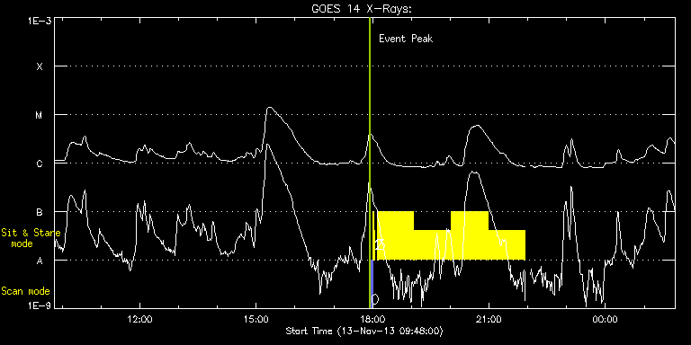 EIS Observation timeline overlay to GOES-Xray curve Code 1" 2" 40" 266" EIS Observations list for this event: STUDY ACRONYM ID DATE OBSERVED DESCRIPTION NOAA# TARGET 0 PRY_slot_contextLITE | 37358 | 2013/11/13 17:57:21 | EIS-AIA alignment | | Active Region TIMELINE ID DATE OBSERVED FITS FILE XCEN (+W/-E) YCEN (+N/-S) DUR ----------------------------------------------------------------------------------------------------------------- 37358 | 2013/11/13 17:57:21.000 | eis_l0_20131113_175721.fits.gz | -9884.69 | -9963.20 | 2m56s 1 Alignment_266 | 37359 | 2013/11/13 18:00:36 | EIS-AIA alignment | | Quiet Sun TIMELINE ID DATE OBSERVED FITS FILE XCEN (+W/-E) YCEN (+N/-S) DUR ----------------------------------------------------------------------------------------------------------------- 37359 | 2013/11/13 18:00:36.000 | eis_l0_20131113_180036.fits.gz | -10002.00 | -9963.20 | 1m22s 2 XRT_synop_AIA | 37360 | 2013/11/13 18:02:43 | EIS-AIA alignment | | Quiet Sun TIMELINE ID DATE OBSERVED FITS FILE XCEN (+W/-E) YCEN (+N/-S) DUR ----------------------------------------------------------------------------------------------------------------- 37360 | 2013/11/13 18:02:43.000 | eis_l0_20131113_180243.fits.gz | -10002.00 | -9963.20 | 10s 3 Flare266_Hunter01 | 37352 | 2013/11/13 18:07:14 | AR 11890 obs (EIS-FT) | 1890 | Flare TIMELINE ID DATE OBSERVED FITS FILE XCEN (+W/-E) YCEN (+N/-S) DUR ----------------------------------------------------------------------------------------------------------------- 37352 | 2013/11/13 18:07:14.000 | eis_l0_20131113_180714.fits.gz | -10002.00 | -9963.20 | 56m23s 37352 | 2013/11/13 19:04:29.000 | eis_l0_20131113_190429.fits.gz | -10002.00 | -9963.20 | 56m22s 37352 | 2013/11/13 20:01:44.000 | eis_l0_20131113_200144.fits.gz | -10002.00 | -9963.20 | 56m22s 37352 | 2013/11/13 20:58:58.000 | eis_l0_20131113_205858.fits.gz | -10002.00 | -9963.20 | 56m22s : Check study information : Download file : View thumbnails For this event, also check for: