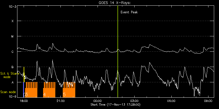 EIS Observation timeline overlay to GOES-Xray curve