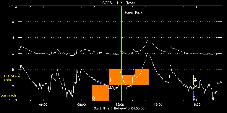 EIS Observation timeline overlay to GOES-Xray curve