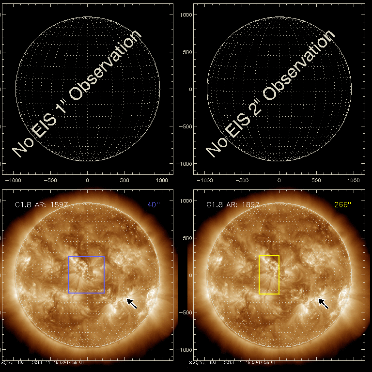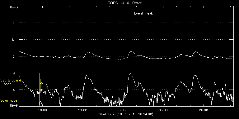 EIS Observation timeline overlay to GOES-Xray curve Code 1" 2" 40" 266" EIS Observations list for this event: STUDY ACRONYM ID DATE OBSERVED DESCRIPTION NOAA# TARGET 0 PRY_slot_contextLITE | 37423 | 2013/11/18 17:43:49 | EIS-AIA alignment | 1899 | Active Region TIMELINE ID DATE OBSERVED FITS FILE XCEN (+W/-E) YCEN (+N/-S) DUR ----------------------------------------------------------------------------------------------------------------- 37423 | 2013/11/18 17:43:49.000 | eis_l0_20131118_174349.fits.gz | -15.21 | -0.50 | 2m56s 1 Alignment_266 | 37424 | 2013/11/18 17:47:03 | EIS-AIA alignment | 1899 | Quiet Sun TIMELINE ID DATE OBSERVED FITS FILE XCEN (+W/-E) YCEN (+N/-S) DUR ----------------------------------------------------------------------------------------------------------------- 37424 | 2013/11/18 17:47:03.000 | eis_l0_20131118_174703.fits.gz | -132.57 | -0.35 | 1m22s 2 XRT_synop_AIA | 37425 | 2013/11/18 17:49:37 | EIS-AIA alignment | 1899 | Quiet Sun TIMELINE ID DATE OBSERVED FITS FILE XCEN (+W/-E) YCEN (+N/-S) DUR ----------------------------------------------------------------------------------------------------------------- 37425 | 2013/11/18 17:49:37.000 | eis_l0_20131118_174937.fits.gz | -132.49 | -0.58 | 11s : Check study information : Download file : View thumbnails For this event, also check for: