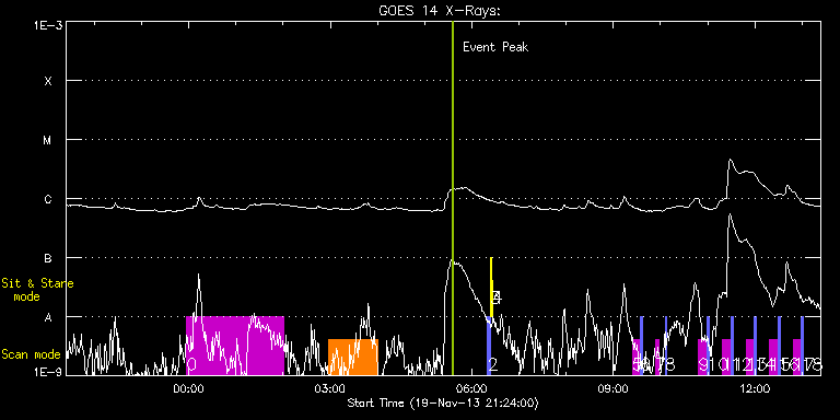 EIS Observation timeline overlay to GOES-Xray curve Code 1" 2" 40" 266" EIS Observations list for this event: STUDY ACRONYM ID DATE OBSERVED DESCRIPTION NOAA# TARGET 0 HPW021_VEL_240x512v1 | 37449 | 2013/11/19 23:57:27 | Observations of returning AR 11875 | | Active Region TIMELINE ID DATE OBSERVED FITS FILE XCEN (+W/-E) YCEN (+N/-S) DUR ----------------------------------------------------------------------------------------------------------------- 37449 | 2013/11/19 23:57:27.000 | eis_l0_20131119_235727.fits.gz | 282.76 | 56.35 | 2h3m47s 1 Atlas_60 | 37450 | 2013/11/20 02:58:27 | Observations of returning AR 11875. | 1899 | Quiet Sun TIMELINE ID DATE OBSERVED FITS FILE XCEN (+W/-E) YCEN (+N/-S) DUR ----------------------------------------------------------------------------------------------------------------- 37450 | 2013/11/20 02:58:27.000 | eis_l0_20131120_025827.fits.gz | 309.81 | 57.20 | 1h1m40s 2 PRY_slot_contextLITE | 37441 | 2013/11/20 06:20:20 | Daily pointing monitoring | | Active Region TIMELINE ID DATE OBSERVED FITS FILE XCEN (+W/-E) YCEN (+N/-S) DUR ----------------------------------------------------------------------------------------------------------------- 37441 | 2013/11/20 06:20:20.000 | eis_l0_20131120_062020.fits.gz | -15.21 | -0.58 | 2m56s 3 Alignment_266 | 37442 | 2013/11/20 06:23:35 | Daily pointing monitoring | | Quiet Sun TIMELINE ID DATE OBSERVED FITS FILE XCEN (+W/-E) YCEN (+N/-S) DUR ----------------------------------------------------------------------------------------------------------------- 37442 | 2013/11/20 06:23:35.000 | eis_l0_20131120_062335.fits.gz | -132.49 | -0.65 | 1m22s 4 XRT_synop_AIA | 37443 | 2013/11/20 06:26:09 | Daily pointing monitoring | | Quiet Sun TIMELINE ID DATE OBSERVED FITS FILE XCEN (+W/-E) YCEN (+N/-S) DUR ----------------------------------------------------------------------------------------------------------------- 37443 | 2013/11/20 06:26:09.000 | eis_l0_20131120_062609.fits.gz | -132.57 | -0.35 | 10s 5 SK_DEEP_5x512_SLIT1 | 37451 | 2013/11/20 09:24:04 | Synoptic SOT Irradiance Scans | | Quiet Sun TIMELINE ID DATE OBSERVED FITS FILE XCEN (+W/-E) YCEN (+N/-S) DUR ----------------------------------------------------------------------------------------------------------------- 37451 | 2013/11/20 09:24:04.000 | eis_l0_20131120_092404.fits.gz | -13.29 | -926.55 | 10m8s 6 PRY_slot_contextLITE | 37452 | 2013/11/20 09:34:37 | Synoptic SOT Irradiance scans | | Active Region TIMELINE ID DATE OBSERVED FITS FILE XCEN (+W/-E) YCEN (+N/-S) DUR ----------------------------------------------------------------------------------------------------------------- 37452 | 2013/11/20 09:34:37.000 | eis_l0_20131120_093437.fits.gz | -28.43 | -926.47 | 2m57s 7 SK_DEEP_5x512_SLIT1 | 37453 | 2013/11/20 09:53:49 | Synoptic SOT Irradiance Scans | | Quiet Sun TIMELINE ID DATE OBSERVED FITS FILE XCEN (+W/-E) YCEN (+N/-S) DUR ----------------------------------------------------------------------------------------------------------------- 37453 | 2013/11/20 09:53:49.000 | eis_l0_20131120_095349.fits.gz | -13.13 | -846.36 | 4m2s 8 PRY_slot_contextLITE | 37454 | 2013/11/20 10:06:10 | Synoptic SOT Irradiance Scans | | Active Region TIMELINE ID DATE OBSERVED FITS FILE XCEN (+W/-E) YCEN (+N/-S) DUR ----------------------------------------------------------------------------------------------------------------- 37454 | 2013/11/20 10:06:10.000 | eis_l0_20131120_100610.fits.gz | -28.28 | -846.52 | 1m9s 9 SK_DEEP_5x512_SLIT1 | 37455 | 2013/11/20 10:48:50 | Synoptic SOT Irradiance Scans | | Quiet Sun TIMELINE ID DATE OBSERVED FITS FILE XCEN (+W/-E) YCEN (+N/-S) DUR ----------------------------------------------------------------------------------------------------------------- 37455 | 2013/11/20 10:48:50.000 | eis_l0_20131120_104850.fits.gz | -13.13 | -746.48 | 10m7s 10 PRY_slot_contextLITE | 37456 | 2013/11/20 10:59:23 | Synoptic SOT Irradiance Scans | | Active Region TIMELINE ID DATE OBSERVED FITS FILE XCEN (+W/-E) YCEN (+N/-S) DUR ----------------------------------------------------------------------------------------------------------------- 37456 | 2013/11/20 10:59:23.000 | eis_l0_20131120_105923.fits.gz | -28.43 | -746.41 | 2m56s 11 SK_DEEP_5x512_SLIT1 | 37457 | 2013/11/20 11:18:49 | Synoptic SOT Irradiance Scans | | Quiet Sun TIMELINE ID DATE OBSERVED FITS FILE XCEN (+W/-E) YCEN (+N/-S) DUR ----------------------------------------------------------------------------------------------------------------- 37457 | 2013/11/20 11:18:49.000 | eis_l0_20131120_111849.fits.gz | -13.13 | -646.29 | 10m8s 12 PRY_slot_contextLITE | 37458 | 2013/11/20 11:29:23 | Synoptic SOT Irradiance Scans | | Active Region TIMELINE ID DATE OBSERVED FITS FILE XCEN (+W/-E) YCEN (+N/-S) DUR ----------------------------------------------------------------------------------------------------------------- 37458 | 2013/11/20 11:29:23.000 | eis_l0_20131120_112923.fits.gz | -28.36 | -646.37 | 2m56s 13 SK_DEEP_5x512_SLIT1 | 37459 | 2013/11/20 11:48:50 | Synoptic SOT Irradiance Scans | | Quiet Sun TIMELINE ID DATE OBSERVED FITS FILE XCEN (+W/-E) YCEN (+N/-S) DUR ----------------------------------------------------------------------------------------------------------------- 37459 | 2013/11/20 11:48:50.000 | eis_l0_20131120_114850.fits.gz | -13.13 | -546.26 | 10m8s 14 PRY_slot_contextLITE | 37460 | 2013/11/20 11:59:23 | Synoptic SOT Irradiance Scans | | Active Region TIMELINE ID DATE OBSERVED FITS FILE XCEN (+W/-E) YCEN (+N/-S) DUR ----------------------------------------------------------------------------------------------------------------- 37460 | 2013/11/20 11:59:23.000 | eis_l0_20131120_115923.fits.gz | -28.28 | -546.18 | 2m57s 15 SK_DEEP_5x512_SLIT1 | 37461 | 2013/11/20 12:18:50 | Synoptic SOT Irradiance Scans | | Quiet Sun TIMELINE ID DATE OBSERVED FITS FILE XCEN (+W/-E) YCEN (+N/-S) DUR ----------------------------------------------------------------------------------------------------------