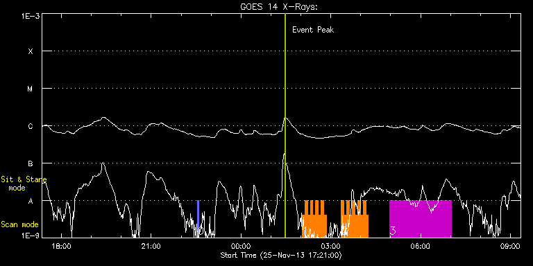 EIS Observation timeline overlay to GOES-Xray curve Code 1" 2" 40" 266" EIS Observations list for this event: STUDY ACRONYM ID DATE OBSERVED DESCRIPTION NOAA# TARGET 0 PRY_slot_context_v3 | 37561 | 2013/11/25 22:32:50 | | 1899 | Active Region TIMELINE ID DATE OBSERVED FITS FILE XCEN (+W/-E) YCEN (+N/-S) DUR ----------------------------------------------------------------------------------------------------------------- 37561 | 2013/11/25 22:32:50.000 | eis_l0_20131125_223250.fits.gz | 922.50 | 64.70 | 2m56s 1 IUU_SCAN_STEPS_002 | 37567 | 2013/11/26 02:02:32 | | 1906 | Active Region TIMELINE ID DATE OBSERVED FITS FILE XCEN (+W/-E) YCEN (+N/-S) DUR ----------------------------------------------------------------------------------------------------------------- 37567 | 2013/11/26 02:02:32.000 | eis_l0_20131126_020232.fits.gz | -604.71 | -199.80 | 5m24s 37567 | 2013/11/26 02:07:59.000 | eis_l0_20131126_020759.fits.gz | -603.86 | -199.73 | 5m23s 37567 | 2013/11/26 02:13:26.000 | eis_l0_20131126_021326.fits.gz | -603.24 | -199.80 | 5m23s 37567 | 2013/11/26 02:18:53.000 | eis_l0_20131126_021853.fits.gz | -602.55 | -199.80 | 5m23s 37567 | 2013/11/26 02:24:19.000 | eis_l0_20131126_022419.fits.gz | -601.85 | -199.88 | 5m24s 37567 | 2013/11/26 02:29:46.000 | eis_l0_20131126_022946.fits.gz | -601.16 | -199.73 | 5m23s 37567 | 2013/11/26 02:35:13.000 | eis_l0_20131126_023513.fits.gz | -600.46 | -199.80 | 5m23s 37567 | 2013/11/26 02:40:40.000 | eis_l0_20131126_024040.fits.gz | -599.69 | -199.88 | 5m23s 37567 | 2013/11/26 02:46:06.000 | eis_l0_20131126_024606.fits.gz | -599.07 | -199.88 | 5m24s 2 IUU_SCAN_STEPS_002 | 37570 | 2013/11/26 03:21:12 | | 1906 | Active Region TIMELINE ID DATE OBSERVED FITS FILE XCEN (+W/-E) YCEN (+N/-S) DUR ----------------------------------------------------------------------------------------------------------------- 37570 | 2013/11/26 03:21:12.000 | eis_l0_20131126_032112.fits.gz | -650.58 | -217.73 | 5m23s 37570 | 2013/11/26 03:26:39.000 | eis_l0_20131126_032639.fits.gz | -649.81 | -217.80 | 5m23s 37570 | 2013/11/26 03:32:06.000 | eis_l0_20131126_033206.fits.gz | -649.19 | -217.80 | 5m23s 37570 | 2013/11/26 03:37:33.000 | eis_l0_20131126_033733.fits.gz | -648.42 | -218.03 | 5m23s 37570 | 2013/11/26 03:42:59.000 | eis_l0_20131126_034259.fits.gz | -647.80 | -217.96 | 5m24s 37570 | 2013/11/26 03:48:26.000 | eis_l0_20131126_034826.fits.gz | -647.10 | -217.96 | 5m24s 37570 | 2013/11/26 03:53:53.000 | eis_l0_20131126_035353.fits.gz | -646.41 | -217.96 | 5m23s 37570 | 2013/11/26 03:59:20.000 | eis_l0_20131126_035920.fits.gz | -645.79 | -217.88 | 5m23s 37570 | 2013/11/26 04:04:46.000 | eis_l0_20131126_040446.fits.gz | -645.09 | -217.96 | 5m24s 37570 | 2013/11/26 04:10:13.000 | eis_l0_20131126_041013.fits.gz | -644.24 | -217.96 | 5m23s 3 HPW021_VEL_240x512v1 | 37560 | 2013/11/26 04:57:26 | | | Active Region TIMELINE ID DATE OBSERVED FITS FILE XCEN (+W/-E) YCEN (+N/-S) DUR ----------------------------------------------------------------------------------------------------------------- 37560 | 2013/11/26 04:57:26.000 | eis_l0_20131126_045726.fits.gz | -490.30 | -100.96 | 2h3m49s : Check study information : Download file : View thumbnails For this event, also check for: