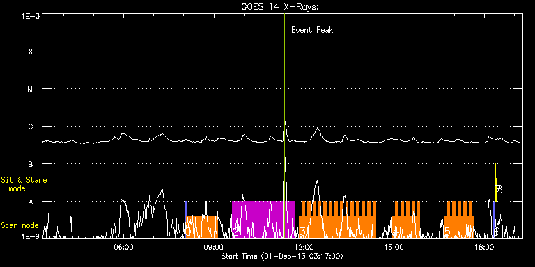 EIS Observation timeline overlay to GOES-Xray curve Code 1" 2" 40" 266" EIS Observations list for this event: STUDY ACRONYM ID DATE OBSERVED DESCRIPTION NOAA# TARGET 0 PRY_slot_context_v3 | 37655 | 2013/12/01 08:01:57 | AR 11908 Observations | 1908 | Active Region TIMELINE ID DATE OBSERVED FITS FILE XCEN (+W/-E) YCEN (+N/-S) DUR ----------------------------------------------------------------------------------------------------------------- 37655 | 2013/12/01 08:01:57.000 | eis_l0_20131201_080157.fits.gz | -16.68 | -457.96 | 2m56s 1 Atlas_60 | 37656 | 2013/12/01 08:05:18 | AR 11908 Observations | 1908 | Quiet Sun TIMELINE ID DATE OBSERVED FITS FILE XCEN (+W/-E) YCEN (+N/-S) DUR ----------------------------------------------------------------------------------------------------------------- 37656 | 2013/12/01 08:05:18.000 | eis_l0_20131201_080518.fits.gz | -1.55 | -457.88 | 1h1m39s 2 HPW021_VEL_240x512v1 | 37654 | 2013/12/01 09:36:56 | AR 11908 Observations | 1908 | Active Region TIMELINE ID DATE OBSERVED FITS FILE XCEN (+W/-E) YCEN (+N/-S) DUR ----------------------------------------------------------------------------------------------------------------- 37654 | 2013/12/01 09:36:56.000 | eis_l0_20131201_093656.fits.gz | 22.52 | -360.88 | 2h3m49s 3 IUU_SCAN_STEPS_002 | 37664 | 2013/12/01 11:50:27 | AR 11908 Dynamics Observations | | Active Region TIMELINE ID DATE OBSERVED FITS FILE XCEN (+W/-E) YCEN (+N/-S) DUR ----------------------------------------------------------------------------------------------------------------- 37664 | 2013/12/01 11:50:27.000 | eis_l0_20131201_115027.fits.gz | 27.88 | -457.73 | 5m23s 37664 | 2013/12/01 11:55:54.000 | eis_l0_20131201_115554.fits.gz | 28.73 | -457.65 | 5m23s 37664 | 2013/12/01 12:01:20.000 | eis_l0_20131201_120120.fits.gz | 29.43 | -457.65 | 5m24s 37664 | 2013/12/01 12:06:47.000 | eis_l0_20131201_120647.fits.gz | 30.12 | -457.73 | 5m23s 37664 | 2013/12/01 12:12:14.000 | eis_l0_20131201_121214.fits.gz | 30.89 | -457.65 | 5m23s 37664 | 2013/12/01 12:17:40.000 | eis_l0_20131201_121740.fits.gz | 31.59 | -457.81 | 5m24s 37664 | 2013/12/01 12:23:07.000 | eis_l0_20131201_122307.fits.gz | 32.44 | -457.73 | 5m24s 37664 | 2013/12/01 12:28:34.000 | eis_l0_20131201_122834.fits.gz | 33.14 | -457.73 | 5m23s 37664 | 2013/12/01 12:34:01.000 | eis_l0_20131201_123401.fits.gz | 33.83 | -457.73 | 5m23s 37664 | 2013/12/01 12:39:28.000 | eis_l0_20131201_123928.fits.gz | 34.60 | -457.57 | 5m23s 37664 | 2013/12/01 12:44:54.000 | eis_l0_20131201_124454.fits.gz | 35.38 | -457.73 | 5m24s 37664 | 2013/12/01 12:50:21.000 | eis_l0_20131201_125021.fits.gz | 35.99 | -457.57 | 5m24s 37664 | 2013/12/01 12:55:48.000 | eis_l0_20131201_125548.fits.gz | 36.69 | -457.50 | 5m24s 37664 | 2013/12/01 13:01:15.000 | eis_l0_20131201_130115.fits.gz | 37.54 | -457.57 | 5m23s 37664 | 2013/12/01 13:06:41.000 | eis_l0_20131201_130641.fits.gz | 38.31 | -457.65 | 5m24s 37664 | 2013/12/01 13:12:08.000 | eis_l0_20131201_131208.fits.gz | 38.93 | -457.57 | 5m24s 37664 | 2013/12/01 13:17:35.000 | eis_l0_20131201_131735.fits.gz | 39.78 | -457.57 | 5m23s 37664 | 2013/12/01 13:23:02.000 | eis_l0_20131201_132302.fits.gz | 40.47 | -457.65 | 5m23s 37664 | 2013/12/01 13:28:29.000 | eis_l0_20131201_132829.fits.gz | 41.17 | -457.57 | 5m23s 37664 | 2013/12/01 13:33:56.000 | eis_l0_20131201_133356.fits.gz | 41.86 | -457.42 | 5m23s 37664 | 2013/12/01 13:39:22.000 | eis_l0_20131201_133922.fits.gz | 42.64 | -457.57 | 5m24s 37664 | 2013/12/01 13:44:49.000 | eis_l0_20131201_134449.fits.gz | 43.33 | -457.65 | 5m23s 37664 | 2013/12/01 13:50:16.000 | eis_l0_20131201_135016.fits.gz | 44.10 | -457.57 | 5m23s 37664 | 2013/12/01 13:55:42.000 | eis_l0_20131201_135542.fits.gz | 44.88 | -457.65 | 5m24s 37664 | 2013/12/01 14:01:09.000 | eis_l0_20131201_140109.fits.gz | 45.65 | -457.57 | 5m24s 37664 | 2013/12/01 14:06:36.000 | eis_l0_20131201_140636.fits.gz | 46.42 | -457.57 | 5m23s 37664 | 2013/12/01 14:12:03.000 | eis_l0_20131201_141203.fits.gz | 47.12 | -457.50 | 5m23s 37664 | 2013/12/01 14:17:30.000 | eis_l0_20131201_141730.fits.gz | 47.81 | -457.50 | 5m23s 4 IUU_SCAN_STEPS_002 | 37665 | 2013/12/01 14:57:10 | AR 11908 Dynamics Observations | | Active Region TIMELINE ID DATE OBSERVED FITS FILE XCEN (+W/-E) YCEN (+N/-S) DUR ----------------------------------------------------------------------------------------------------------------- 37665 | 2013/12/01 14:57:10.000 | eis_l0_20131201_145710.fits.gz | 53.22 | -457.42 | 5m24s 37665 | 2013/12/01 15:02:37.000 | eis_l0_20131201_150237.fits.gz | 53.91 | -457.50 | 5m24s 37665 | 2013/12/01 15:08:04.000 | eis_l0_20131201_150804.fits.gz | 54.61 | -457.34 | 5m23s 37665 | 2013/12/01 15:13:31.000 | eis_l0_20131201_151331.fits.gz | 55.38 | -457.42 | 5m23s 37665 | 2013/12/01 15:18:58.000 | eis_l0_20131201_151858.fits.gz | 56.00 | -457.50 | 5m23s 37665 | 2013/12/01 15:24:24.000 | eis_l0_20131201_152424.fits.gz | 56.85 | -457.50 | 5m24s 37665 | 2013/12/01 15:29:51.000 | eis_l0_20131201_152951.fits.gz | 57.62 | -457.42 | 5m24s 37665 | 2013/12/01 15:35:18.000 | eis_l0_20131201_153518.fits.gz | 58.32 | -457.42 | 5m23s 37665 | 2013/12/01 15:40:45.000 | eis_l0_20131201_154045.fits.gz | 59.01 | -457.34 | 5m23s 37665 | 2013/12/01 15:46:11.000 | eis_l0_20131201_154611.fits.gz | 59.79 | -457.42 | 5m24s 5 IUU_SCAN_STEPS_002 | 37662 | 2013/12/01 16:40:13 | AR 11908 Dynamics Observations | | Active Region TIMELINE ID DATE OBSERVED FITS FILE XCEN (+W/-E) YCEN (+N/-S) DUR ----------------------------------------------------------------------------------------------------------------- 37662 | 2013/12/01 16:40:13.000 | eis_l0_20131201_164013.fits.gz | 67.05 | -457.19 | 5m23s 37662 | 2013/12/01 16:45:40.000 | eis_l0_20131201_164540.fits.gz | 67.82 | -457.27 | 5m23s 37662 | 2013/12/01 16:51:06.000 | eis_l0_20131201_165106.fits.gz | 68.59 | -457.27 | 5m23s 37662 | 2013/12/01 16:56:33.000 | eis_l0_20131201_165633.fits.gz | 69.36 | -457.27 | 5m23s 37662 | 2013/12/01 17:02:00.000 | eis_l0_20131201_170200.fits.gz 