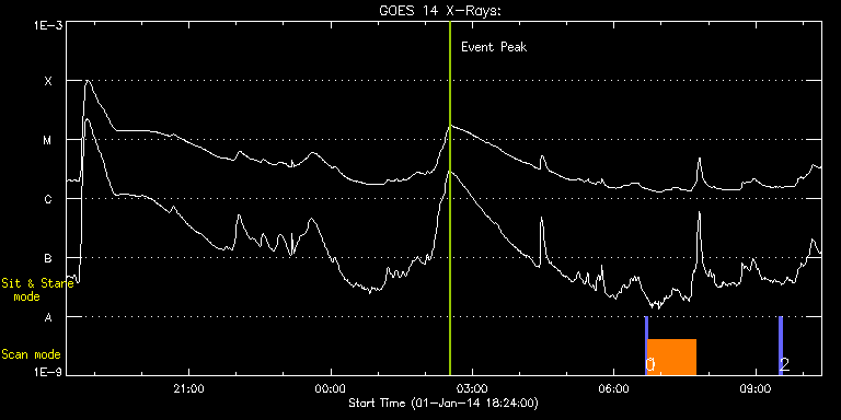 EIS Observation timeline overlay to GOES-Xray curve Code 1" 2" 40" 266" EIS Observations list for this event: STUDY ACRONYM ID DATE OBSERVED DESCRIPTION NOAA# TARGET 0 PRY_slot_contextLITE | 38019 | 2014/01/02 06:39:20 | Slot Context for Off-limb Atlas CH | | Active Region TIMELINE ID DATE OBSERVED FITS FILE XCEN (+W/-E) YCEN (+N/-S) DUR ----------------------------------------------------------------------------------------------------------------- 38019 | 2014/01/02 06:39:20.000 | eis_l0_20140102_063920.fits.gz | -790.39 | 566.65 | 2m56s 1 Atlas_60 | 38020 | 2014/01/02 06:42:41 | Off-limb Atlas CH | | Quiet Sun TIMELINE ID DATE OBSERVED FITS FILE XCEN (+W/-E) YCEN (+N/-S) DUR ----------------------------------------------------------------------------------------------------------------- 38020 | 2014/01/02 06:42:41.000 | eis_l0_20140102_064241.fits.gz | -879.74 | 665.65 | 1h1m39s 2 PRY_slot_contextLITE | 38014 | 2014/01/02 09:30:20 | Slot Context for AR 11936 | 1936 | Active Region TIMELINE ID DATE OBSERVED FITS FILE XCEN (+W/-E) YCEN (+N/-S) DUR ----------------------------------------------------------------------------------------------------------------- 38014 | 2014/01/02 09:30:20.000 | eis_l0_20140102_093020.fits.gz | 720.03 | -259.05 | 2m57s : Check study information : Download file : View thumbnails For this event, also check for: