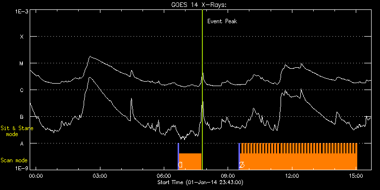 EIS Observation timeline overlay to GOES-Xray curve Code 1" 2" 40" 266" EIS Observations list for this event: STUDY ACRONYM ID DATE OBSERVED DESCRIPTION NOAA# TARGET 0 PRY_slot_contextLITE | 38019 | 2014/01/02 06:39:20 | Slot Context for Off-limb Atlas CH | | Active Region TIMELINE ID DATE OBSERVED FITS FILE XCEN (+W/-E) YCEN (+N/-S) DUR ----------------------------------------------------------------------------------------------------------------- 38019 | 2014/01/02 06:39:20.000 | eis_l0_20140102_063920.fits.gz | -790.39 | 566.65 | 2m56s 1 Atlas_60 | 38020 | 2014/01/02 06:42:41 | Off-limb Atlas CH | | Quiet Sun TIMELINE ID DATE OBSERVED FITS FILE XCEN (+W/-E) YCEN (+N/-S) DUR ----------------------------------------------------------------------------------------------------------------- 38020 | 2014/01/02 06:42:41.000 | eis_l0_20140102_064241.fits.gz | -879.74 | 665.65 | 1h1m39s 2 PRY_slot_contextLITE | 38014 | 2014/01/02 09:30:20 | Slot Context for AR 11936 | 1936 | Active Region TIMELINE ID DATE OBSERVED FITS FILE XCEN (+W/-E) YCEN (+N/-S) DUR ----------------------------------------------------------------------------------------------------------------- 38014 | 2014/01/02 09:30:20.000 | eis_l0_20140102_093020.fits.gz | 720.03 | -259.05 | 2m57s 3 HH_Flare_162x152 | 38015 | 2014/01/02 09:33:42 | Fast Scan Observations of AR 11936 | 1936 | Flare TIMELINE ID DATE OBSERVED FITS FILE XCEN (+W/-E) YCEN (+N/-S) DUR ----------------------------------------------------------------------------------------------------------------- 38015 | 2014/01/02 09:33:42.000 | eis_l0_20140102_093342.fits.gz | 734.58 | -258.97 | 4m10s 38015 | 2014/01/02 09:37:55.000 | eis_l0_20140102_093755.fits.gz | 734.97 | -258.97 | 4m11s 38015 | 2014/01/02 09:42:09.000 | eis_l0_20140102_094209.fits.gz | 735.35 | -259.12 | 4m10s 38015 | 2014/01/02 09:46:22.000 | eis_l0_20140102_094622.fits.gz | 735.82 | -259.12 | 4m10s 38015 | 2014/01/02 09:50:35.000 | eis_l0_20140102_095035.fits.gz | 736.12 | -259.12 | 4m11s 38015 | 2014/01/02 09:54:49.000 | eis_l0_20140102_095449.fits.gz | 736.51 | -259.20 | 4m10s 38015 | 2014/01/02 09:59:02.000 | eis_l0_20140102_095902.fits.gz | 736.90 | -259.12 | 4m11s 38015 | 2014/01/02 10:03:16.000 | eis_l0_20140102_100316.fits.gz | 737.28 | -259.36 | 4m10s 38015 | 2014/01/02 10:07:29.000 | eis_l0_20140102_100729.fits.gz | 737.59 | -259.28 | 4m10s 38015 | 2014/01/02 10:11:42.000 | eis_l0_20140102_101142.fits.gz | 737.98 | -259.20 | 4m11s 38015 | 2014/01/02 10:15:56.000 | eis_l0_20140102_101556.fits.gz | 738.44 | -259.28 | 4m10s 38015 | 2014/01/02 10:20:09.000 | eis_l0_20140102_102009.fits.gz | 738.83 | -259.43 | 4m11s 38015 | 2014/01/02 10:24:23.000 | eis_l0_20140102_102423.fits.gz | 739.21 | -259.43 | 4m10s 38015 | 2014/01/02 10:28:36.000 | eis_l0_20140102_102836.fits.gz | 739.52 | -259.36 | 4m11s 38015 | 2014/01/02 10:32:50.000 | eis_l0_20140102_103250.fits.gz | 739.99 | -259.43 | 4m10s 38015 | 2014/01/02 10:37:03.000 | eis_l0_20140102_103703.fits.gz | 740.37 | -259.51 | 4m10s 38015 | 2014/01/02 10:41:16.000 | eis_l0_20140102_104116.fits.gz | 740.68 | -259.51 | 4m11s 38015 | 2014/01/02 10:45:30.000 | eis_l0_20140102_104530.fits.gz | 741.15 | -259.36 | 4m10s 38015 | 2014/01/02 10:49:43.000 | eis_l0_20140102_104943.fits.gz | 741.45 | -259.51 | 4m11s 38015 | 2014/01/02 10:53:57.000 | eis_l0_20140102_105357.fits.gz | 741.84 | -259.59 | 4m10s 38015 | 2014/01/02 10:58:10.000 | eis_l0_20140102_105810.fits.gz | 742.30 | -259.51 | 4m11s 38015 | 2014/01/02 11:02:24.000 | eis_l0_20140102_110224.fits.gz | 742.54 | -259.59 | 4m10s 38015 | 2014/01/02 11:06:37.000 | eis_l0_20140102_110637.fits.gz | 743.08 | -259.59 | 4m10s 38015 | 2014/01/02 11:10:50.000 | eis_l0_20140102_111050.fits.gz | 743.39 | -259.51 | 4m11s 38015 | 2014/01/02 11:15:04.000 | eis_l0_20140102_111504.fits.gz | 743.69 | -259.59 | 4m10s 38015 | 2014/01/02 11:19:17.000 | eis_l0_20140102_111917.fits.gz | 744.08 | -259.51 | 4m11s 38015 | 2014/01/02 11:23:31.000 | eis_l0_20140102_112331.fits.gz | 744.54 | -259.67 | 4m10s 38015 | 2014/01/02 11:27:44.000 | eis_l0_20140102_112744.fits.gz | 744.93 | -259.67 | 4m11s 38015 | 2014/01/02 11:31:57.000 | eis_l0_20140102_113157.fits.gz | 745.32 | -259.82 | 4m11s 38015 | 2014/01/02 11:36:11.000 | eis_l0_20140102_113611.fits.gz | 745.70 | -259.74 | 4m11s 38015 | 2014/01/02 11:40:25.000 | eis_l0_20140102_114025.fits.gz | 746.01 | -259.90 | 4m11s 38015 | 2014/01/02 11:44:38.000 | eis_l0_20140102_114438.fits.gz | 746.40 | -259.90 | 4m11s 38015 | 2014/01/02 11:48:52.000 | eis_l0_20140102_114852.fits.gz | 746.78 | -259.82 | 4m10s 38015 | 2014/01/02 11:53:05.000 | eis_l0_20140102_115305.fits.gz | 747.17 | -259.82 | 4m11s 38015 | 2014/01/02 11:57:18.000 | eis_l0_20140102_115718.fits.gz | 747.48 | -259.90 | 4m11s 38015 | 2014/01/02 12:01:32.000 | eis_l0_20140102_120132.fits.gz | 747.87 | -259.90 | 4m11s 38015 | 2014/01/02 12:05:45.000 | eis_l0_20140102_120545.fits.gz | 748.25 | -259.98 | 4m11s 38015 | 2014/01/02 12:09:59.000 | eis_l0_20140102_120959.fits.gz | 748.64 | -259.90 | 4m10s 38015 | 2014/01/02 12:14:12.000 | eis_l0_20140102_121412.fits.gz | 749.02 | -260.21 | 4m11s 38015 | 2014/01/02 12:18:26.000 | eis_l0_20140102_121826.fits.gz | 749.26 | -260.05 | 4m10s 38015 | 2014/01/02 12:22:39.000 | eis_l0_20140102_122239.fits.gz | 749.72 | -260.05 | 4m11s 38015 | 2014/01/02 12:26:52.000 | eis_l0_20140102_122652.fits.gz | 750.11 | -260.13 | 4m11s 38015 | 2014/01/02 12:31:06.000 | eis_l0_20140102_123106.fits.gz | 750.57 | -260.13 | 4m10s 38015 | 2014/01/02 12:35:19.000 | eis_l0_20140102_123519.fits.gz | 750.88 | -260.13 | 4m11s 38015 | 2014/01/02 12:39:33.000 | eis_l0_20140102_123933.fits.gz | 751.27 | -260.05 | 4m10s 38015 | 2014/01/02 12:43:46.000 | eis_l0_20140102_124346.fits.gz | 751.65 | -260.13 | 4m11s 38015 | 2014/01/02 12:47:59.000 | eis_l0_20140102_124759.fits.gz | 752.04 | -260.21 | 4m11s 38015 | 2014/01/02 12:52:13.000 | eis_l0_20140102_125213.fits.gz | 752.35 | -260.21 | 4m11s 38015 | 2014/01/02 12:56:27.000 