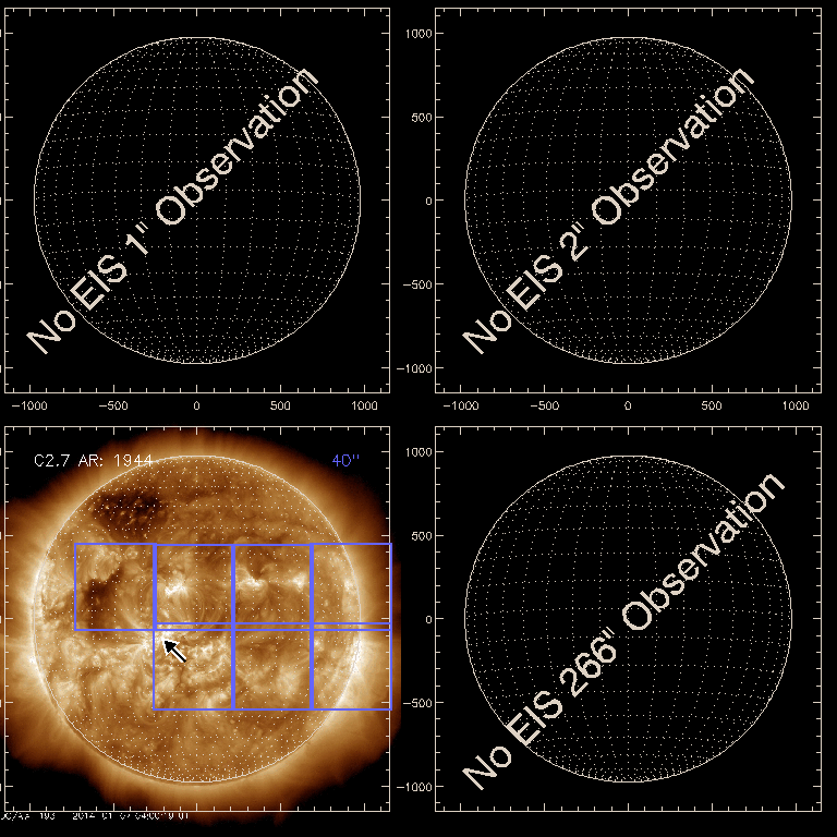 EIS Observation timeline overlay to GOES-Xray curve Code 1" 2" 40" 266" EIS Observations list for this event: STUDY ACRONYM ID DATE OBSERVED DESCRIPTION NOAA# TARGET 0 full_sun_slot_scan_2 | 38076 | 2014/01/07 11:12:20 | HOP 130: Multi-temperature Full Disk S | 1947 | Quiet Sun TIMELINE ID DATE OBSERVED FITS FILE XCEN (+W/-E) YCEN (+N/-S) DUR ----------------------------------------------------------------------------------------------------------------- 38076 | 2014/01/07 11:12:20.000 | eis_l0_20140107_111220.fits.gz | 920.87 | 185.65 | 5m27s 1 full_sun_slot_scan_2 | 38077 | 2014/01/07 11:18:19 | HOP 130: Multi-temperature Full Disk S | 1937 | Quiet Sun TIMELINE ID DATE OBSERVED FITS FILE XCEN (+W/-E) YCEN (+N/-S) DUR ----------------------------------------------------------------------------------------------------------------- 38077 | 2014/01/07 11:18:19.000 | eis_l0_20140107_111819.fits.gz | 920.80 | -286.50 | 5m27s 2 full_sun_slot_scan_2 | 38078 | 2014/01/07 11:28:13 | HOP 130: Multi-temperature Full Disk S | 1942 | Quiet Sun TIMELINE ID DATE OBSERVED FITS FILE XCEN (+W/-E) YCEN (+N/-S) DUR ----------------------------------------------------------------------------------------------------------------- 38078 | 2014/01/07 11:28:13.000 | eis_l0_20140107_112813.fits.gz | 452.68 | 185.50 | 5m28s 3 full_sun_slot_scan_2 | 38079 | 2014/01/07 11:33:46 | HOP 130: Multi-temperature Full Disk S | | Quiet Sun TIMELINE ID DATE OBSERVED FITS FILE XCEN (+W/-E) YCEN (+N/-S) DUR ----------------------------------------------------------------------------------------------------------------- 38079 | 2014/01/07 11:33:46.000 | eis_l0_20140107_113346.fits.gz | 452.68 | -286.58 | 5m26s 4 full_sun_slot_scan_2 | 38080 | 2014/01/07 11:44:13 | HOP 130: Multi-temperature Full Disk S | 1946 | Quiet Sun TIMELINE ID DATE OBSERVED FITS FILE XCEN (+W/-E) YCEN (+N/-S) DUR ----------------------------------------------------------------------------------------------------------------- 38080 | 2014/01/07 11:44:13.000 | eis_l0_20140107_114413.fits.gz | -15.29 | 185.50 | 5m28s 5 full_sun_slot_scan_2 | 38081 | 2014/01/07 11:49:46 | HOP 130: Multi-temperature Full Disk S | 1943 | Quiet Sun TIMELINE ID DATE OBSERVED FITS FILE XCEN (+W/-E) YCEN (+N/-S) DUR ----------------------------------------------------------------------------------------------------------------- 38081 | 2014/01/07 11:49:46.000 | eis_l0_20140107_114946.fits.gz | -15.29 | -286.42 | 5m26s 6 full_sun_slot_scan_2 | 38082 | 2014/01/07 12:00:13 | HOP 130: Multi-temperature Full Disk S | | Quiet Sun TIMELINE ID DATE OBSERVED FITS FILE XCEN (+W/-E) YCEN (+N/-S) DUR ----------------------------------------------------------------------------------------------------------------- 38082 | 2014/01/07 12:00:13.000 | eis_l0_20140107_120013.fits.gz | -483.26 | 185.58 | 5m28s : Check study information : Download file : View thumbnails For this event, also check for: