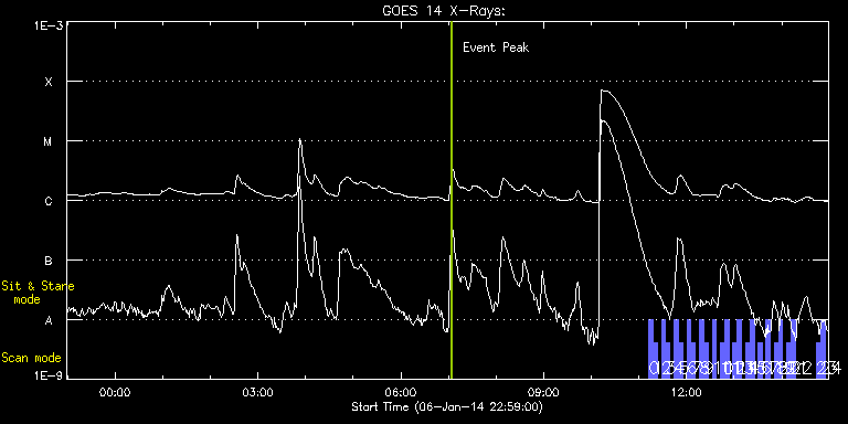 EIS Observation timeline overlay to GOES-Xray curve Code 1" 2" 40" 266" EIS Observations list for this event: STUDY ACRONYM ID DATE OBSERVED DESCRIPTION NOAA# TARGET 0 full_sun_slot_scan_2 | 38076 | 2014/01/07 11:12:20 | HOP 130: Multi-temperature Full Disk S | 1947 | Quiet Sun TIMELINE ID DATE OBSERVED FITS FILE XCEN (+W/-E) YCEN (+N/-S) DUR ----------------------------------------------------------------------------------------------------------------- 38076 | 2014/01/07 11:12:20.000 | eis_l0_20140107_111220.fits.gz | 920.87 | 185.65 | 5m27s 1 full_sun_slot_scan_2 | 38077 | 2014/01/07 11:18:19 | HOP 130: Multi-temperature Full Disk S | 1937 | Quiet Sun TIMELINE ID DATE OBSERVED FITS FILE XCEN (+W/-E) YCEN (+N/-S) DUR ----------------------------------------------------------------------------------------------------------------- 38077 | 2014/01/07 11:18:19.000 | eis_l0_20140107_111819.fits.gz | 920.80 | -286.50 | 5m27s 2 full_sun_slot_scan_2 | 38078 | 2014/01/07 11:28:13 | HOP 130: Multi-temperature Full Disk S | 1942 | Quiet Sun TIMELINE ID DATE OBSERVED FITS FILE XCEN (+W/-E) YCEN (+N/-S) DUR ----------------------------------------------------------------------------------------------------------------- 38078 | 2014/01/07 11:28:13.000 | eis_l0_20140107_112813.fits.gz | 452.68 | 185.50 | 5m28s 3 full_sun_slot_scan_2 | 38079 | 2014/01/07 11:33:46 | HOP 130: Multi-temperature Full Disk S | | Quiet Sun TIMELINE ID DATE OBSERVED FITS FILE XCEN (+W/-E) YCEN (+N/-S) DUR ----------------------------------------------------------------------------------------------------------------- 38079 | 2014/01/07 11:33:46.000 | eis_l0_20140107_113346.fits.gz | 452.68 | -286.58 | 5m26s 4 full_sun_slot_scan_2 | 38080 | 2014/01/07 11:44:13 | HOP 130: Multi-temperature Full Disk S | 1946 | Quiet Sun TIMELINE ID DATE OBSERVED FITS FILE XCEN (+W/-E) YCEN (+N/-S) DUR ----------------------------------------------------------------------------------------------------------------- 38080 | 2014/01/07 11:44:13.000 | eis_l0_20140107_114413.fits.gz | -15.29 | 185.50 | 5m28s 5 full_sun_slot_scan_2 | 38081 | 2014/01/07 11:49:46 | HOP 130: Multi-temperature Full Disk S | 1943 | Quiet Sun TIMELINE ID DATE OBSERVED FITS FILE XCEN (+W/-E) YCEN (+N/-S) DUR ----------------------------------------------------------------------------------------------------------------- 38081 | 2014/01/07 11:49:46.000 | eis_l0_20140107_114946.fits.gz | -15.29 | -286.42 | 5m26s 6 full_sun_slot_scan_2 | 38082 | 2014/01/07 12:00:13 | HOP 130: Multi-temperature Full Disk S | | Quiet Sun TIMELINE ID DATE OBSERVED FITS FILE XCEN (+W/-E) YCEN (+N/-S) DUR ----------------------------------------------------------------------------------------------------------------- 38082 | 2014/01/07 12:00:13.000 | eis_l0_20140107_120013.fits.gz | -483.26 | 185.58 | 5m28s 7 full_sun_slot_scan_2 | 38083 | 2014/01/07 12:05:46 | HOP 130: Multi-temperature Full Disk S | | Quiet Sun TIMELINE ID DATE OBSERVED FITS FILE XCEN (+W/-E) YCEN (+N/-S) DUR ----------------------------------------------------------------------------------------------------------------- 38083 | 2014/01/07 12:05:46.000 | eis_l0_20140107_120546.fits.gz | -483.18 | -286.42 | 5m27s 8 full_sun_slot_scan_2 | 38084 | 2014/01/07 12:16:13 | HOP 130: Multi-temperature Full Disk S | | Quiet Sun TIMELINE ID DATE OBSERVED FITS FILE XCEN (+W/-E) YCEN (+N/-S) DUR ----------------------------------------------------------------------------------------------------------------- 38084 | 2014/01/07 12:16:13.000 | eis_l0_20140107_121613.fits.gz | -9884.69 | -9777.20 | 5m27s 9 full_sun_slot_scan_2 | 38085 | 2014/01/07 12:21:46 | HOP 130: Multi-temperature Full Disk S | | Quiet Sun TIMELINE ID DATE OBSERVED FITS FILE XCEN (+W/-E) YCEN (+N/-S) DUR ----------------------------------------------------------------------------------------------------------------- 38085 | 2014/01/07 12:21:46.000 | eis_l0_20140107_122146.fits.gz | -9884.69 | -10249.20 | 5m26s 10 full_sun_slot_scan_2 | 38086 | 2014/01/07 12:32:14 | HOP 130: Multi-temperature Full Disk S | | Quiet Sun TIMELINE ID DATE OBSERVED FITS FILE XCEN (+W/-E) YCEN (+N/-S) DUR ----------------------------------------------------------------------------------------------------------------- 38086 | 2014/01/07 12:32:14.000 | eis_l0_20140107_123214.fits.gz | 759.35 | 655.55 | 5m27s 11 full_sun_slot_scan_2 | 38087 | 2014/01/07 12:42:13 | HOP 130: Multi-temperature Full Disk S | | Quiet Sun TIMELINE ID DATE OBSERVED FITS FILE XCEN (+W/-E) YCEN (+N/-S) DUR ----------------------------------------------------------------------------------------------------------------- 38087 | 2014/01/07 12:42:13.000 | eis_l0_20140107_124213.fits.gz | 395.74 | 1032.83 | 5m28s 12 full_sun_slot_scan_2 | 38088 | 2014/01/07 12:47:46 | HOP 130: Multi-temperature Full Disk S | | Quiet Sun TIMELINE ID DATE OBSERVED FITS FILE XCEN (+W/-E) YCEN (+N/-S) DUR ----------------------------------------------------------------------------------------------------------------- 38088 | 2014/01/07 12:47:46.000 | eis_l0_20140107_124746.fits.gz | 395.82 | 560.60 | 5m27s 13 full_sun_slot_scan_2 | 38089 | 2014/01/07 12:58:13 | HOP 130: Multi-temperature Full Disk S | | Quiet Sun TIMELINE ID DATE OBSERVED FITS FILE XCEN (+W/-E) YCEN (+N/-S) DUR ----------------------------------------------------------------------------------------------------------------- 38089 | 2014/01/07 12:58:13.000 | eis_l0_20140107_125813.fits.gz | -15.29 | 1126.69 | 5m28s 14 full_sun_slot_scan_2 | 38090 | 2014/01/07 13:03:46 | HOP 130: Multi-temperature Full Disk S | | Quiet Sun TIMELINE ID DATE OBSERVED FITS FILE XCEN (+W/-E) YCEN (+N/-S) DUR ----------------------------------------------------------------------------------------------------------------- 38090 | 2014/01/07 13:03:46.000 | eis_l0_20140107_130346.fits.gz | -15.21 | 654.45 | 5m27s 15 full_sun_slot_scan_2 | 38091 | 2014/01/07 13:14:13 | HOP 130: Multi-temperature Full Disk S | | Qui
