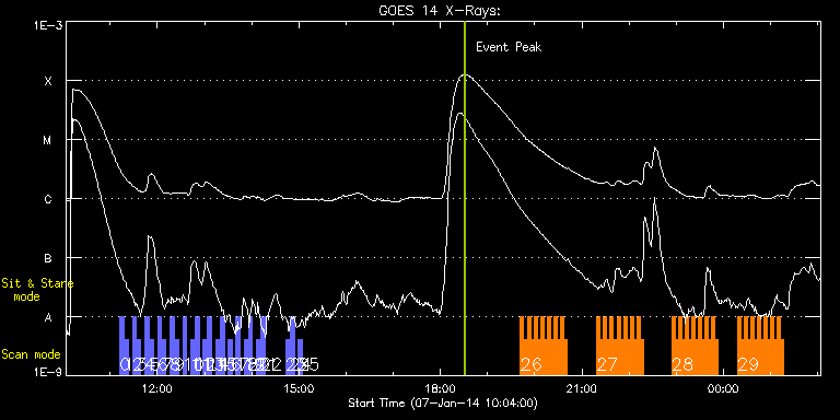 EIS Observation timeline overlay to GOES-Xray curve Code 1" 2" 40" 266" EIS Observations list for this event: STUDY ACRONYM ID DATE OBSERVED DESCRIPTION NOAA# TARGET 0 full_sun_slot_scan_2 | 38076 | 2014/01/07 11:12:20 | HOP 130: Multi-temperature Full Disk S | 1947 | Quiet Sun TIMELINE ID DATE OBSERVED FITS FILE XCEN (+W/-E) YCEN (+N/-S) DUR ----------------------------------------------------------------------------------------------------------------- 38076 | 2014/01/07 11:12:20.000 | eis_l0_20140107_111220.fits.gz | 920.87 | 185.65 | 5m27s 1 full_sun_slot_scan_2 | 38077 | 2014/01/07 11:18:19 | HOP 130: Multi-temperature Full Disk S | 1937 | Quiet Sun TIMELINE ID DATE OBSERVED FITS FILE XCEN (+W/-E) YCEN (+N/-S) DUR ----------------------------------------------------------------------------------------------------------------- 38077 | 2014/01/07 11:18:19.000 | eis_l0_20140107_111819.fits.gz | 920.80 | -286.50 | 5m27s 2 full_sun_slot_scan_2 | 38078 | 2014/01/07 11:28:13 | HOP 130: Multi-temperature Full Disk S | 1942 | Quiet Sun TIMELINE ID DATE OBSERVED FITS FILE XCEN (+W/-E) YCEN (+N/-S) DUR ----------------------------------------------------------------------------------------------------------------- 38078 | 2014/01/07 11:28:13.000 | eis_l0_20140107_112813.fits.gz | 452.68 | 185.50 | 5m28s 3 full_sun_slot_scan_2 | 38079 | 2014/01/07 11:33:46 | HOP 130: Multi-temperature Full Disk S | | Quiet Sun TIMELINE ID DATE OBSERVED FITS FILE XCEN (+W/-E) YCEN (+N/-S) DUR ----------------------------------------------------------------------------------------------------------------- 38079 | 2014/01/07 11:33:46.000 | eis_l0_20140107_113346.fits.gz | 452.68 | -286.58 | 5m26s 4 full_sun_slot_scan_2 | 38080 | 2014/01/07 11:44:13 | HOP 130: Multi-temperature Full Disk S | 1946 | Quiet Sun TIMELINE ID DATE OBSERVED FITS FILE XCEN (+W/-E) YCEN (+N/-S) DUR ----------------------------------------------------------------------------------------------------------------- 38080 | 2014/01/07 11:44:13.000 | eis_l0_20140107_114413.fits.gz | -15.29 | 185.50 | 5m28s 5 full_sun_slot_scan_2 | 38081 | 2014/01/07 11:49:46 | HOP 130: Multi-temperature Full Disk S | 1943 | Quiet Sun TIMELINE ID DATE OBSERVED FITS FILE XCEN (+W/-E) YCEN (+N/-S) DUR ----------------------------------------------------------------------------------------------------------------- 38081 | 2014/01/07 11:49:46.000 | eis_l0_20140107_114946.fits.gz | -15.29 | -286.42 | 5m26s 6 full_sun_slot_scan_2 | 38082 | 2014/01/07 12:00:13 | HOP 130: Multi-temperature Full Disk S | | Quiet Sun TIMELINE ID DATE OBSERVED FITS FILE XCEN (+W/-E) YCEN (+N/-S) DUR ----------------------------------------------------------------------------------------------------------------- 38082 | 2014/01/07 12:00:13.000 | eis_l0_20140107_120013.fits.gz | -483.26 | 185.58 | 5m28s 7 full_sun_slot_scan_2 | 38083 | 2014/01/07 12:05:46 | HOP 130: Multi-temperature Full Disk S | | Quiet Sun TIMELINE ID DATE OBSERVED FITS FILE XCEN (+W/-E) YCEN (+N/-S) DUR ----------------------------------------------------------------------------------------------------------------- 38083 | 2014/01/07 12:05:46.000 | eis_l0_20140107_120546.fits.gz | -483.18 | -286.42 | 5m27s 8 full_sun_slot_scan_2 | 38084 | 2014/01/07 12:16:13 | HOP 130: Multi-temperature Full Disk S | | Quiet Sun TIMELINE ID DATE OBSERVED FITS FILE XCEN (+W/-E) YCEN (+N/-S) DUR ----------------------------------------------------------------------------------------------------------------- 38084 | 2014/01/07 12:16:13.000 | eis_l0_20140107_121613.fits.gz | -9884.69 | -9777.20 | 5m27s 9 full_sun_slot_scan_2 | 38085 | 2014/01/07 12:21:46 | HOP 130: Multi-temperature Full Disk S | | Quiet Sun TIMELINE ID DATE OBSERVED FITS FILE XCEN (+W/-E) YCEN (+N/-S) DUR ----------------------------------------------------------------------------------------------------------------- 38085 | 2014/01/07 12:21:46.000 | eis_l0_20140107_122146.fits.gz | -9884.69 | -10249.20 | 5m26s 10 full_sun_slot_scan_2 | 38086 | 2014/01/07 12:32:14 | HOP 130: Multi-temperature Full Disk S | | Quiet Sun TIMELINE ID DATE OBSERVED FITS FILE XCEN (+W/-E) YCEN (+N/-S) DUR ----------------------------------------------------------------------------------------------------------------- 38086 | 2014/01/07 12:32:14.000 | eis_l0_20140107_123214.fits.gz | 759.35 | 655.55 | 5m27s 11 full_sun_slot_scan_2 | 38087 | 2014/01/07 12:42:13 | HOP 130: Multi-temperature Full Disk S | | Quiet Sun TIMELINE ID DATE OBSERVED FITS FILE XCEN (+W/-E) YCEN (+N/-S) DUR ----------------------------------------------------------------------------------------------------------------- 38087 | 2014/01/07 12:42:13.000 | eis_l0_20140107_124213.fits.gz | 395.74 | 1032.83 | 5m28s 12 full_sun_slot_scan_2 | 38088 | 2014/01/07 12:47:46 | HOP 130: Multi-temperature Full Disk S | | Quiet Sun TIMELINE ID DATE OBSERVED FITS FILE XCEN (+W/-E) YCEN (+N/-S) DUR ----------------------------------------------------------------------------------------------------------------- 38088 | 2014/01/07 12:47:46.000 | eis_l0_20140107_124746.fits.gz | 395.82 | 560.60 | 5m27s 13 full_sun_slot_scan_2 | 38089 | 2014/01/07 12:58:13 | HOP 130: Multi-temperature Full Disk S | | Quiet Sun TIMELINE ID DATE OBSERVED FITS FILE XCEN (+W/-E) YCEN (+N/-S) DUR ----------------------------------------------------------------------------------------------------------------- 38089 | 2014/01/07 12:58:13.000 | eis_l0_20140107_125813.fits.gz | -15.29 | 1126.69 | 5m28s 14 full_sun_slot_scan_2 | 38090 | 2014/01/07 13:03:46 | HOP 130: Multi-temperature Full Disk S | | Quiet Sun TIMELINE ID DATE OBSERVED FITS FILE XCEN (+W/-E) YCEN (+N/-S) DUR ----------------------------------------------------------------------------------------------------------------- 38090 | 2014/01/07 13:03:46.000 | eis_l0_20140107_130346.fits.gz | -15.21 | 654.45 | 5m27s 15 full_sun_slot_scan_2 | 38091 | 2014/01/07 13:14:13 | HOP 130: Multi-temperature Full Disk S | | Qui