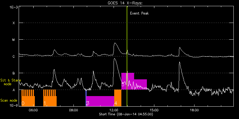 EIS Observation timeline overlay to GOES-Xray curve Code 1" 2" 40" 266" EIS Observations list for this event: STUDY ACRONYM ID DATE OBSERVED DESCRIPTION NOAA# TARGET 0 HH_Flare_162x152 | 38116 | 2014/01/08 05:07:13 | Flare Observations: AR 11944 | 1944 | Flare TIMELINE ID DATE OBSERVED FITS FILE XCEN (+W/-E) YCEN (+N/-S) DUR ----------------------------------------------------------------------------------------------------------------- 38116 | 2014/01/08 05:07:13.000 | eis_l0_20140108_050713.fits.gz | 68.24 | -93.35 | 4m10s 38116 | 2014/01/08 05:11:26.000 | eis_l0_20140108_051126.fits.gz | 68.86 | -93.43 | 4m11s 38116 | 2014/01/08 05:15:40.000 | eis_l0_20140108_051540.fits.gz | 69.48 | -93.35 | 4m10s 38116 | 2014/01/08 05:19:53.000 | eis_l0_20140108_051953.fits.gz | 70.25 | -93.51 | 4m11s 38116 | 2014/01/08 05:24:06.000 | eis_l0_20140108_052406.fits.gz | 70.79 | -93.27 | 4m11s 38116 | 2014/01/08 05:28:20.000 | eis_l0_20140108_052820.fits.gz | 71.49 | -93.51 | 4m10s 38116 | 2014/01/08 05:32:33.000 | eis_l0_20140108_053233.fits.gz | 72.18 | -93.58 | 4m11s 38116 | 2014/01/08 05:36:47.000 | eis_l0_20140108_053647.fits.gz | 72.80 | -93.51 | 4m10s 38116 | 2014/01/08 05:41:00.000 | eis_l0_20140108_054100.fits.gz | 73.49 | -93.66 | 4m10s 38116 | 2014/01/08 05:45:13.000 | eis_l0_20140108_054513.fits.gz | 74.19 | -93.58 | 4m11s 38116 | 2014/01/08 05:49:27.000 | eis_l0_20140108_054927.fits.gz | 74.81 | -93.58 | 4m10s 38116 | 2014/01/08 05:53:40.000 | eis_l0_20140108_055340.fits.gz | 75.43 | -93.51 | 4m11s 38116 | 2014/01/08 05:57:54.000 | eis_l0_20140108_055754.fits.gz | 76.04 | -93.58 | 4m10s 38116 | 2014/01/08 06:02:07.000 | eis_l0_20140108_060207.fits.gz | 76.82 | -93.51 | 4m11s 1 HH_Flare_162x152 | 38117 | 2014/01/08 06:44:43 | Flare Observations: AR 11944 | 1944 | Flare TIMELINE ID DATE OBSERVED FITS FILE XCEN (+W/-E) YCEN (+N/-S) DUR ----------------------------------------------------------------------------------------------------------------- 38117 | 2014/01/08 06:44:43.000 | eis_l0_20140108_064443.fits.gz | 83.46 | -93.43 | 4m11s 38117 | 2014/01/08 06:48:57.000 | eis_l0_20140108_064857.fits.gz | 84.15 | -93.43 | 4m10s 38117 | 2014/01/08 06:53:10.000 | eis_l0_20140108_065310.fits.gz | 84.62 | -93.35 | 4m11s 38117 | 2014/01/08 06:57:23.000 | eis_l0_20140108_065723.fits.gz | 85.39 | -93.43 | 4m11s 38117 | 2014/01/08 07:01:37.000 | eis_l0_20140108_070137.fits.gz | 86.01 | -93.35 | 4m11s 38117 | 2014/01/08 07:05:51.000 | eis_l0_20140108_070551.fits.gz | 86.70 | -93.43 | 4m10s 38117 | 2014/01/08 07:10:04.000 | eis_l0_20140108_071004.fits.gz | 87.32 | -93.51 | 4m10s 38117 | 2014/01/08 07:14:17.000 | eis_l0_20140108_071417.fits.gz | 87.94 | -93.43 | 4m11s 38117 | 2014/01/08 07:18:31.000 | eis_l0_20140108_071831.fits.gz | 88.63 | -93.43 | 4m10s 38117 | 2014/01/08 07:22:44.000 | eis_l0_20140108_072244.fits.gz | 89.25 | -93.51 | 4m11s 38117 | 2014/01/08 07:26:57.000 | eis_l0_20140108_072657.fits.gz | 89.95 | -93.51 | 4m11s 38117 | 2014/01/08 07:31:11.000 | eis_l0_20140108_073111.fits.gz | 90.57 | -93.51 | 4m10s 38117 | 2014/01/08 07:35:24.000 | eis_l0_20140108_073524.fits.gz | 91.26 | -93.58 | 4m11s 38117 | 2014/01/08 07:39:38.000 | eis_l0_20140108_073938.fits.gz | 91.96 | -93.51 | 4m10s 2 PRY_slot_contextLITE | 38106 | 2014/01/08 09:54:19 | Active Region Studies - Test for Upcom | 1944 | Active Region TIMELINE ID DATE OBSERVED FITS FILE XCEN (+W/-E) YCEN (+N/-S) DUR ----------------------------------------------------------------------------------------------------------------- 38106 | 2014/01/08 09:54:19.000 | eis_l0_20140108_095419.fits.gz | 98.57 | -93.20 | 2m57s 3 HPW021_VEL_240x512v1 | 38107 | 2014/01/08 09:57:27 | Active Region Studies - Test for Upcom | 1944 | Active Region TIMELINE ID DATE OBSERVED FITS FILE XCEN (+W/-E) YCEN (+N/-S) DUR ----------------------------------------------------------------------------------------------------------------- 38107 | 2014/01/08 09:57:27.000 | eis_l0_20140108_095727.fits.gz | 52.11 | -193.35 | 2h3m47s 4 Atlas_30 | 38108 | 2014/01/08 12:01:32 | Active Region Studies - Test for Upcom | | Quiet Sun TIMELINE ID DATE OBSERVED FITS FILE XCEN (+W/-E) YCEN (+N/-S) DUR ----------------------------------------------------------------------------------------------------------------- 38108 | 2014/01/08 12:01:32.000 | eis_l0_20140108_120132.fits.gz | 133.01 | -93.35 | 31m40s 5 HPW021_VEL_001x512v1 | 38109 | 2014/01/08 12:33:29 | Active Region Studies - Test for Upcom | | Active Region TIMELINE ID DATE OBSERVED FITS FILE XCEN (+W/-E) YCEN (+N/-S) DUR ----------------------------------------------------------------------------------------------------------------- 38109 | 2014/01/08 12:33:29.000 | eis_l0_20140108_123329.fits.gz | 70.05 | -193.43 | 56m43s 38109 | 2014/01/08 13:30:19.000 | eis_l0_20140108_133019.fits.gz | 78.78 | -193.35 | 56m43s : Check study information : Download file : View thumbnails For this event, also check for: