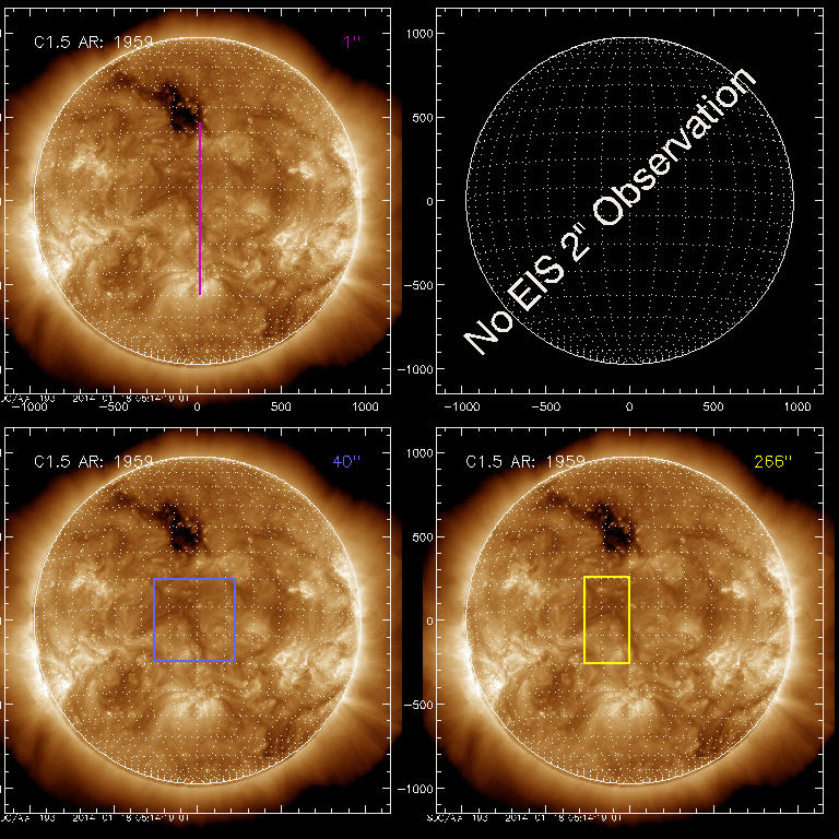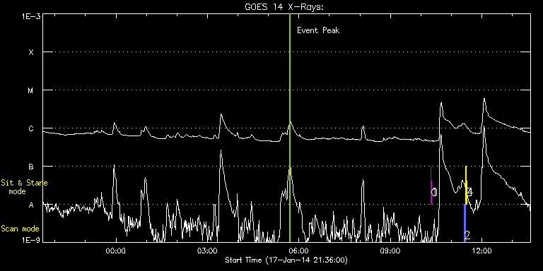 EIS Observation timeline overlay to GOES-Xray curve Code 1" 2" 40" 266" EIS Observations list for this event: STUDY ACRONYM ID DATE OBSERVED DESCRIPTION NOAA# TARGET 0 regcal078 | 38217 | 2014/01/18 10:20:12 | Dark exposures, 0s, 2 exposures, botto | 1952 | Engineering TIMELINE ID DATE OBSERVED FITS FILE XCEN (+W/-E) YCEN (+N/-S) DUR ----------------------------------------------------------------------------------------------------------------- 38217 | 2014/01/18 10:20:12.000 | eis_l0_20140118_102012.fits.gz | 14.67 | -305.50 | 2s 1 regcal079 | 38313 | 2014/01/18 10:21:05 | Dark exposures, 0s, 2 exposures, top c | | Engineering TIMELINE ID DATE OBSERVED FITS FILE XCEN (+W/-E) YCEN (+N/-S) DUR ----------------------------------------------------------------------------------------------------------------- 38313 | 2014/01/18 10:21:05.000 | eis_l0_20140118_102105.fits.gz | 14.59 | 205.58 | 2s 2 PRY_slot_contextLITE | 38237 | 2014/01/18 11:24:46 | EIS alignment | | Active Region TIMELINE ID DATE OBSERVED FITS FILE XCEN (+W/-E) YCEN (+N/-S) DUR ----------------------------------------------------------------------------------------------------------------- 38237 | 2014/01/18 11:24:46.000 | eis_l0_20140118_112446.fits.gz | -15.29 | -0.35 | 2m56s 3 Alignment_266 | 38294 | 2014/01/18 11:28:00 | EIS alignment | | Quiet Sun TIMELINE ID DATE OBSERVED FITS FILE XCEN (+W/-E) YCEN (+N/-S) DUR ----------------------------------------------------------------------------------------------------------------- 38294 | 2014/01/18 11:28:00.000 | eis_l0_20140118_112800.fits.gz | -132.57 | -0.35 | 1m23s 4 XRT_synop_AIA | 38295 | 2014/01/18 11:30:08 | EIS alignment | | Quiet Sun TIMELINE ID DATE OBSERVED FITS FILE XCEN (+W/-E) YCEN (+N/-S) DUR ----------------------------------------------------------------------------------------------------------------- 38295 | 2014/01/18 11:30:08.000 | eis_l0_20140118_113008.fits.gz | -132.49 | -0.35 | 10s : Check study information : Download file : View thumbnails For this event, also check for: