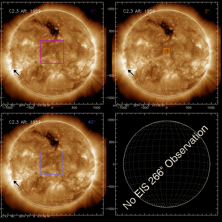 EIS Observation timeline overlay to GOES-Xray curve Code 1" 2" 40" 266" EIS Observations list for this event: STUDY ACRONYM ID DATE OBSERVED DESCRIPTION NOAA# TARGET 0 Atlas_120 | 38261 | 2014/01/18 12:04:40 | Synoptic Spectral Atlas Programme (QS, | | Quiet Sun TIMELINE ID DATE OBSERVED FITS FILE XCEN (+W/-E) YCEN (+N/-S) DUR ----------------------------------------------------------------------------------------------------------------- 38261 | 2014/01/18 12:04:40.000 | eis_l0_20140118_120440.fits.gz | -1.55 | 24.58 | 2h1m40s 1 IUU_SLOT_488x512 | 38262 | 2014/01/18 18:12:53 | Focus mode obs. - large slot image | | Quiet Sun TIMELINE ID DATE OBSERVED FITS FILE XCEN (+W/-E) YCEN (+N/-S) DUR ----------------------------------------------------------------------------------------------------------------- 38262 | 2014/01/18 18:12:53.000 | eis_l0_20140118_181253.fits.gz | -16.21 | 24.65 | 7m57s 2 JTM003 | 38308 | 2014/01/18 18:21:02 | Focus mode obs. - large FOV raster | | Quiet Sun TIMELINE ID DATE OBSERVED FITS FILE XCEN (+W/-E) YCEN (+N/-S) DUR ----------------------------------------------------------------------------------------------------------------- 38308 | 2014/01/18 18:21:02.000 | eis_l0_20140118_182102.fits.gz | -0.49 | 24.58 | 8h48m18s : Check study information : Download file : View thumbnails For this event, also check for: