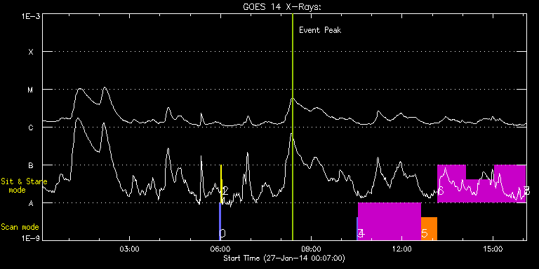 EIS Observation timeline overlay to GOES-Xray curve Code 1" 2" 40" 266" EIS Observations list for this event: STUDY ACRONYM ID DATE OBSERVED DESCRIPTION NOAA# TARGET 0 PRY_slot_contextLITE | 38380 | 2014/01/27 05:57:33 | EIS pointing and alignment | 1965 | Active Region TIMELINE ID DATE OBSERVED FITS FILE XCEN (+W/-E) YCEN (+N/-S) DUR ----------------------------------------------------------------------------------------------------------------- 38380 | 2014/01/27 05:57:33.000 | eis_l0_20140127_055733.fits.gz | -15.21 | -0.35 | 2m56s 1 Alignment_266 | 38381 | 2014/01/27 06:00:47 | EIS pointing and alignment | 1965 | Quiet Sun TIMELINE ID DATE OBSERVED FITS FILE XCEN (+W/-E) YCEN (+N/-S) DUR ----------------------------------------------------------------------------------------------------------------- 38381 | 2014/01/27 06:00:47.000 | eis_l0_20140127_060047.fits.gz | -132.64 | -0.42 | 1m22s 2 XRT_synop_AIA | 38382 | 2014/01/27 06:03:22 | EIS pointing and alignment | 1965 | Quiet Sun TIMELINE ID DATE OBSERVED FITS FILE XCEN (+W/-E) YCEN (+N/-S) DUR ----------------------------------------------------------------------------------------------------------------- 38382 | 2014/01/27 06:03:22.000 | eis_l0_20140127_060322.fits.gz | -132.57 | -0.42 | 10s 3 PRY_slot_contextLITE | 38426 | 2014/01/27 10:30:27 | Active region study | 1958 | Active Region TIMELINE ID DATE OBSERVED FITS FILE XCEN (+W/-E) YCEN (+N/-S) DUR ----------------------------------------------------------------------------------------------------------------- 38426 | 2014/01/27 10:30:27.000 | eis_l0_20140127_103027.fits.gz | 501.50 | -301.14 | 2m56s 4 HPW021_VEL_240x512v1 | 38427 | 2014/01/27 10:33:35 | Active region study | 1959 | Active Region TIMELINE ID DATE OBSERVED FITS FILE XCEN (+W/-E) YCEN (+N/-S) DUR ----------------------------------------------------------------------------------------------------------------- 38427 | 2014/01/27 10:33:35.000 | eis_l0_20140127_103335.fits.gz | 516.94 | -301.06 | 2h3m48s 5 Atlas_30 | 38428 | 2014/01/27 12:37:41 | Active region study | 1959 | Quiet Sun TIMELINE ID DATE OBSERVED FITS FILE XCEN (+W/-E) YCEN (+N/-S) DUR ----------------------------------------------------------------------------------------------------------------- 38428 | 2014/01/27 12:37:41.000 | eis_l0_20140127_123741.fits.gz | 530.53 | -336.99 | 31m40s 6 HPW021_VEL_001x512v1 | 38429 | 2014/01/27 13:09:38 | Active region study | | Active Region TIMELINE ID DATE OBSERVED FITS FILE XCEN (+W/-E) YCEN (+N/-S) DUR ----------------------------------------------------------------------------------------------------------------- 38429 | 2014/01/27 13:09:38.000 | eis_l0_20140127_130938.fits.gz | 534.49 | -301.22 | 56m43s 38429 | 2014/01/27 14:06:28.000 | eis_l0_20140127_140628.fits.gz | 540.75 | -301.76 | 56m42s 38429 | 2014/01/27 15:03:17.000 | eis_l0_20140127_150317.fits.gz | 547.08 | -302.07 | 56m44s 7 regcal070 | 38430 | 2014/01/27 16:00:07 | Flat field with overscan pixels (50*8) | | Engineering TIMELINE ID DATE OBSERVED FITS FILE XCEN (+W/-E) YCEN (+N/-S) DUR ----------------------------------------------------------------------------------------------------------------- 38430 | 2014/01/27 16:00:07.000 | eis_l0_20140127_160007.fits.gz | 567.84 | -132.54 | 3s 8 regcal074 | 38431 | 2014/01/27 16:01:00 | Dark exposures including overscan pixe | | Engineering TIMELINE ID DATE OBSERVED FITS FILE XCEN (+W/-E) YCEN (+N/-S) DUR ----------------------------------------------------------------------------------------------------------------- 38431 | 2014/01/27 16:01:00.000 | eis_l0_20140127_160100.fits.gz | 567.84 | -132.54 | 3m22s : Check study information : Download file : View thumbnails For this event, also check for: