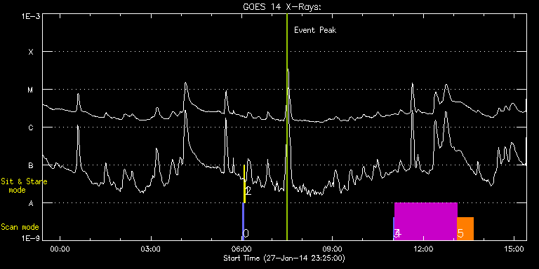 EIS Observation timeline overlay to GOES-Xray curve Code 1" 2" 40" 266" EIS Observations list for this event: STUDY ACRONYM ID DATE OBSERVED DESCRIPTION NOAA# TARGET 0 PRY_slot_contextLITE | 38329 | 2014/01/28 06:01:34 | EIS pointing and alignment | 1965 | Active Region TIMELINE ID DATE OBSERVED FITS FILE XCEN (+W/-E) YCEN (+N/-S) DUR ----------------------------------------------------------------------------------------------------------------- 38329 | 2014/01/28 06:01:34.000 | eis_l0_20140128_060134.fits.gz | -15.29 | -0.42 | 2m56s 1 Alignment_266 | 38330 | 2014/01/28 06:04:49 | EIS pointing and alignment | | Quiet Sun TIMELINE ID DATE OBSERVED FITS FILE XCEN (+W/-E) YCEN (+N/-S) DUR ----------------------------------------------------------------------------------------------------------------- 38330 | 2014/01/28 06:04:49.000 | eis_l0_20140128_060449.fits.gz | -132.57 | -0.50 | 1m22s 2 XRT_synop_AIA | 38331 | 2014/01/28 06:06:56 | EIS pointing and alignment | | Quiet Sun TIMELINE ID DATE OBSERVED FITS FILE XCEN (+W/-E) YCEN (+N/-S) DUR ----------------------------------------------------------------------------------------------------------------- 38331 | 2014/01/28 06:06:56.000 | eis_l0_20140128_060656.fits.gz | -132.57 | -0.42 | 10s 3 PRY_slot_contextLITE | 38444 | 2014/01/28 11:00:26 | Active region study | 1959 | Active Region TIMELINE ID DATE OBSERVED FITS FILE XCEN (+W/-E) YCEN (+N/-S) DUR ----------------------------------------------------------------------------------------------------------------- 38444 | 2014/01/28 11:00:26.000 | eis_l0_20140128_110026.fits.gz | 652.28 | -301.50 | 2m56s 4 HPW021_VEL_240x512v1 | 38445 | 2014/01/28 11:03:34 | Active region study | 1959 | Active Region TIMELINE ID DATE OBSERVED FITS FILE XCEN (+W/-E) YCEN (+N/-S) DUR ----------------------------------------------------------------------------------------------------------------- 38445 | 2014/01/28 11:03:34.000 | eis_l0_20140128_110334.fits.gz | 667.49 | -301.42 | 2h3m49s 5 Atlas_30 | 38446 | 2014/01/28 13:07:41 | Active region study | 1959 | Quiet Sun TIMELINE ID DATE OBSERVED FITS FILE XCEN (+W/-E) YCEN (+N/-S) DUR ----------------------------------------------------------------------------------------------------------------- 38446 | 2014/01/28 13:07:41.000 | eis_l0_20140128_130741.fits.gz | 678.38 | -349.58 | 31m39s : Check study information : Download file : View thumbnails For this event, also check for:
