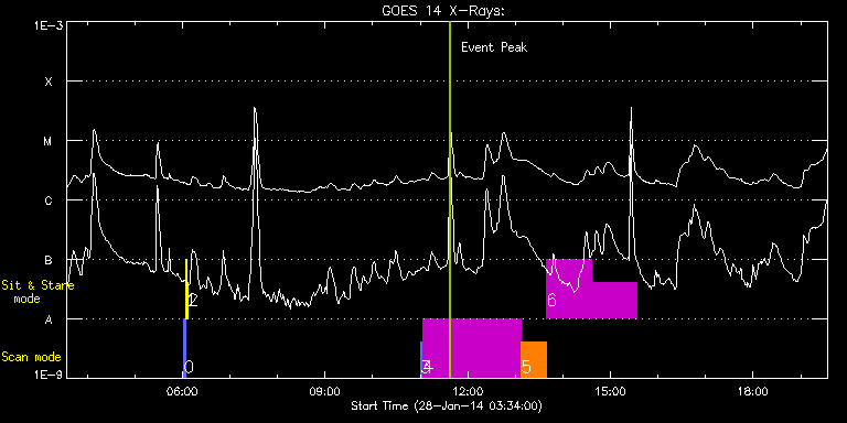 EIS Observation timeline overlay to GOES-Xray curve Code 1" 2" 40" 266" EIS Observations list for this event: STUDY ACRONYM ID DATE OBSERVED DESCRIPTION NOAA# TARGET 0 PRY_slot_contextLITE | 38329 | 2014/01/28 06:01:34 | EIS pointing and alignment | 1965 | Active Region TIMELINE ID DATE OBSERVED FITS FILE XCEN (+W/-E) YCEN (+N/-S) DUR ----------------------------------------------------------------------------------------------------------------- 38329 | 2014/01/28 06:01:34.000 | eis_l0_20140128_060134.fits.gz | -15.29 | -0.42 | 2m56s 1 Alignment_266 | 38330 | 2014/01/28 06:04:49 | EIS pointing and alignment | | Quiet Sun TIMELINE ID DATE OBSERVED FITS FILE XCEN (+W/-E) YCEN (+N/-S) DUR ----------------------------------------------------------------------------------------------------------------- 38330 | 2014/01/28 06:04:49.000 | eis_l0_20140128_060449.fits.gz | -132.57 | -0.50 | 1m22s 2 XRT_synop_AIA | 38331 | 2014/01/28 06:06:56 | EIS pointing and alignment | | Quiet Sun TIMELINE ID DATE OBSERVED FITS FILE XCEN (+W/-E) YCEN (+N/-S) DUR ----------------------------------------------------------------------------------------------------------------- 38331 | 2014/01/28 06:06:56.000 | eis_l0_20140128_060656.fits.gz | -132.57 | -0.42 | 10s 3 PRY_slot_contextLITE | 38444 | 2014/01/28 11:00:26 | Active region study | 1959 | Active Region TIMELINE ID DATE OBSERVED FITS FILE XCEN (+W/-E) YCEN (+N/-S) DUR ----------------------------------------------------------------------------------------------------------------- 38444 | 2014/01/28 11:00:26.000 | eis_l0_20140128_110026.fits.gz | 652.28 | -301.50 | 2m56s 4 HPW021_VEL_240x512v1 | 38445 | 2014/01/28 11:03:34 | Active region study | 1959 | Active Region TIMELINE ID DATE OBSERVED FITS FILE XCEN (+W/-E) YCEN (+N/-S) DUR ----------------------------------------------------------------------------------------------------------------- 38445 | 2014/01/28 11:03:34.000 | eis_l0_20140128_110334.fits.gz | 667.49 | -301.42 | 2h3m49s 5 Atlas_30 | 38446 | 2014/01/28 13:07:41 | Active region study | 1959 | Quiet Sun TIMELINE ID DATE OBSERVED FITS FILE XCEN (+W/-E) YCEN (+N/-S) DUR ----------------------------------------------------------------------------------------------------------------- 38446 | 2014/01/28 13:07:41.000 | eis_l0_20140128_130741.fits.gz | 678.38 | -349.58 | 31m39s 6 HPW021_VEL_001x512v1 | 38447 | 2014/01/28 13:39:38 | Active region study | | Active Region TIMELINE ID DATE OBSERVED FITS FILE XCEN (+W/-E) YCEN (+N/-S) DUR ----------------------------------------------------------------------------------------------------------------- 38447 | 2014/01/28 13:39:38.000 | eis_l0_20140128_133938.fits.gz | 681.72 | -300.89 | 56m43s 38447 | 2014/01/28 14:36:28.000 | eis_l0_20140128_143628.fits.gz | 686.74 | -301.59 | 56m42s : Check study information : Download file : View thumbnails For this event, also check for:
