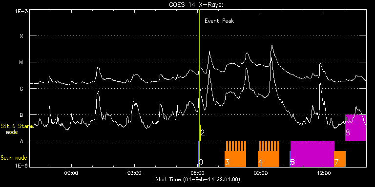 EIS Observation timeline overlay to GOES-Xray curve Code 1" 2" 40" 266" EIS Observations list for this event: STUDY ACRONYM ID DATE OBSERVED DESCRIPTION NOAA# TARGET 0 PRY_slot_contextLITE | 38484 | 2014/02/02 06:02:26 | EIS-AIA alignment | | Active Region TIMELINE ID DATE OBSERVED FITS FILE XCEN (+W/-E) YCEN (+N/-S) DUR ----------------------------------------------------------------------------------------------------------------- 38484 | 2014/02/02 06:02:26.000 | eis_l0_20140202_060226.fits.gz | -15.14 | -0.42 | 2m56s 1 Alignment_266 | 38485 | 2014/02/02 06:05:41 | EIS-AIA alignment | 1967 | Quiet Sun TIMELINE ID DATE OBSERVED FITS FILE XCEN (+W/-E) YCEN (+N/-S) DUR ----------------------------------------------------------------------------------------------------------------- 38485 | 2014/02/02 06:05:41.000 | eis_l0_20140202_060541.fits.gz | -132.41 | -0.50 | 1m22s 2 XRT_synop_AIA | 38486 | 2014/02/02 06:07:48 | EIS-AIA alignment | 1967 | Quiet Sun TIMELINE ID DATE OBSERVED FITS FILE XCEN (+W/-E) YCEN (+N/-S) DUR ----------------------------------------------------------------------------------------------------------------- 38486 | 2014/02/02 06:07:48.000 | eis_l0_20140202_060748.fits.gz | -132.49 | -0.50 | 10s 3 HH_Flare_162x152 | 38554 | 2014/02/02 07:17:49 | AR11967 obs | 1967 | Flare TIMELINE ID DATE OBSERVED FITS FILE XCEN (+W/-E) YCEN (+N/-S) DUR ----------------------------------------------------------------------------------------------------------------- 38554 | 2014/02/02 07:17:49.000 | eis_l0_20140202_071749.fits.gz | -216.11 | -141.94 | 4m11s 38554 | 2014/02/02 07:22:02.000 | eis_l0_20140202_072202.fits.gz | -215.49 | -142.02 | 4m11s 38554 | 2014/02/02 07:26:16.000 | eis_l0_20140202_072616.fits.gz | -214.95 | -142.02 | 4m10s 38554 | 2014/02/02 07:30:29.000 | eis_l0_20140202_073029.fits.gz | -214.33 | -141.94 | 4m11s 38554 | 2014/02/02 07:34:43.000 | eis_l0_20140202_073443.fits.gz | -213.63 | -141.79 | 4m10s 38554 | 2014/02/02 07:38:56.000 | eis_l0_20140202_073856.fits.gz | -212.94 | -141.94 | 4m11s 38554 | 2014/02/02 07:43:10.000 | eis_l0_20140202_074310.fits.gz | -212.48 | -141.94 | 4m10s 38554 | 2014/02/02 07:47:23.000 | eis_l0_20140202_074723.fits.gz | -211.78 | -142.02 | 4m10s 38554 | 2014/02/02 07:51:36.000 | eis_l0_20140202_075136.fits.gz | -211.16 | -141.94 | 4m11s 38554 | 2014/02/02 07:55:50.000 | eis_l0_20140202_075550.fits.gz | -210.54 | -141.94 | 4m10s 38554 | 2014/02/02 08:00:03.000 | eis_l0_20140202_080003.fits.gz | -209.93 | -141.94 | 4m11s 38554 | 2014/02/02 08:04:17.000 | eis_l0_20140202_080417.fits.gz | -209.31 | -141.86 | 4m10s 38554 | 2014/02/02 08:08:30.000 | eis_l0_20140202_080830.fits.gz | -208.69 | -141.94 | 4m11s 38554 | 2014/02/02 08:12:43.000 | eis_l0_20140202_081243.fits.gz | -208.00 | -141.86 | 4m11s 4 HH_Flare_162x152 | 38561 | 2014/02/02 08:52:13 | AR11967 obs | 1967 | Flare TIMELINE ID DATE OBSERVED FITS FILE XCEN (+W/-E) YCEN (+N/-S) DUR ----------------------------------------------------------------------------------------------------------------- 38561 | 2014/02/02 08:52:13.000 | eis_l0_20140202_085213.fits.gz | -202.12 | -141.63 | 4m10s 38561 | 2014/02/02 08:56:26.000 | eis_l0_20140202_085626.fits.gz | -201.59 | -141.55 | 4m11s 38561 | 2014/02/02 09:00:40.000 | eis_l0_20140202_090040.fits.gz | -200.81 | -141.55 | 4m10s 38561 | 2014/02/02 09:04:53.000 | eis_l0_20140202_090453.fits.gz | -200.27 | -141.63 | 4m11s 38561 | 2014/02/02 09:09:07.000 | eis_l0_20140202_090907.fits.gz | -199.58 | -141.48 | 4m10s 38561 | 2014/02/02 09:13:20.000 | eis_l0_20140202_091320.fits.gz | -199.04 | -141.55 | 4m11s 38561 | 2014/02/02 09:17:34.000 | eis_l0_20140202_091734.fits.gz | -198.34 | -141.48 | 4m10s 38561 | 2014/02/02 09:21:47.000 | eis_l0_20140202_092147.fits.gz | -197.72 | -141.55 | 4m10s 38561 | 2014/02/02 09:26:00.000 | eis_l0_20140202_092600.fits.gz | -197.10 | -141.55 | 4m11s 38561 | 2014/02/02 09:30:14.000 | eis_l0_20140202_093014.fits.gz | -196.49 | -141.63 | 4m10s 38561 | 2014/02/02 09:34:27.000 | eis_l0_20140202_093427.fits.gz | -195.87 | -141.55 | 4m11s 38561 | 2014/02/02 09:38:41.000 | eis_l0_20140202_093841.fits.gz | -195.25 | -141.55 | 4m10s 38561 | 2014/02/02 09:42:54.000 | eis_l0_20140202_094254.fits.gz | -194.71 | -141.48 | 4m11s 38561 | 2014/02/02 09:47:07.000 | eis_l0_20140202_094707.fits.gz | -194.01 | -141.48 | 4m11s 5 PRY_slot_contextLITE | 38464 | 2014/02/02 10:22:20 | AR 11967 obs (Focused mode obs) | 1967 | Active Region TIMELINE ID DATE OBSERVED FITS FILE XCEN (+W/-E) YCEN (+N/-S) DUR ----------------------------------------------------------------------------------------------------------------- 38464 | 2014/02/02 10:22:20.000 | eis_l0_20140202_102220.fits.gz | -203.08 | -141.24 | 2m56s 6 HPW021_VEL_240x512v1 | 38465 | 2014/02/02 10:25:27 | AR 11967 obs (Focused mode obs) | 1967 | Active Region TIMELINE ID DATE OBSERVED FITS FILE XCEN (+W/-E) YCEN (+N/-S) DUR ----------------------------------------------------------------------------------------------------------------- 38465 | 2014/02/02 10:25:27.000 | eis_l0_20140202_102527.fits.gz | -187.56 | -141.24 | 2h3m48s 7 Atlas_30 | 38466 | 2014/02/02 12:29:34 | AR 11967 obs (Focused mode obs) | | Quiet Sun TIMELINE ID DATE OBSERVED FITS FILE XCEN (+W/-E) YCEN (+N/-S) DUR ----------------------------------------------------------------------------------------------------------------- 38466 | 2014/02/02 12:29:34.000 | eis_l0_20140202_122934.fits.gz | -169.26 | -140.86 | 31m38s 8 HPW021_VEL_001x512v1 | 38467 | 2014/02/02 13:01:30 | AR 11967 obs (Focused mode obs) | | Active Region TIMELINE ID DATE OBSERVED FITS FILE XCEN (+W/-E) YCEN (+N/-S) DUR ----------------------------------------------------------------------------------------------------------------- 38467 | 2014/02/02 13:01:30.000 | eis_l0_20140202_130130.fits.gz | -164.06 | -140.63 | 56m42s : Check study information : Download file : View thumbnails For this event, also check for: