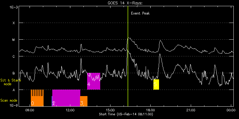EIS Observation timeline overlay to GOES-Xray curve Code 1" 2" 40" 266" EIS Observations list for this event: STUDY ACRONYM ID DATE OBSERVED DESCRIPTION NOAA# TARGET 0 HH_Flare_162x152 | 38568 | 2014/02/05 09:05:24 | AR11967 obs | 1967 | Flare TIMELINE ID DATE OBSERVED FITS FILE XCEN (+W/-E) YCEN (+N/-S) DUR ----------------------------------------------------------------------------------------------------------------- 38568 | 2014/02/05 09:05:24.000 | eis_l0_20140205_090524.fits.gz | 442.27 | -127.73 | 4m10s 38568 | 2014/02/05 09:09:37.000 | eis_l0_20140205_090937.fits.gz | 442.82 | -127.88 | 4m11s 38568 | 2014/02/05 09:13:50.000 | eis_l0_20140205_091350.fits.gz | 443.43 | -127.88 | 4m11s 38568 | 2014/02/05 09:18:04.000 | eis_l0_20140205_091804.fits.gz | 444.05 | -127.96 | 4m10s 38568 | 2014/02/05 09:22:17.000 | eis_l0_20140205_092217.fits.gz | 444.51 | -127.88 | 4m11s 38568 | 2014/02/05 09:26:31.000 | eis_l0_20140205_092631.fits.gz | 445.13 | -127.88 | 4m11s 38568 | 2014/02/05 09:30:44.000 | eis_l0_20140205_093044.fits.gz | 445.67 | -128.04 | 4m11s 38568 | 2014/02/05 09:34:57.000 | eis_l0_20140205_093457.fits.gz | 446.29 | -128.04 | 4m11s 38568 | 2014/02/05 09:39:11.000 | eis_l0_20140205_093911.fits.gz | 446.76 | -128.11 | 4m11s 38568 | 2014/02/05 09:43:25.000 | eis_l0_20140205_094325.fits.gz | 447.37 | -128.19 | 4m10s 38568 | 2014/02/05 09:47:38.000 | eis_l0_20140205_094738.fits.gz | 447.99 | -128.27 | 4m10s 38568 | 2014/02/05 09:51:51.000 | eis_l0_20140205_095151.fits.gz | 448.45 | -128.11 | 4m11s 38568 | 2014/02/05 09:56:05.000 | eis_l0_20140205_095605.fits.gz | 448.92 | -128.19 | 4m10s 1 PRY_slot_contextLITE | 38476 | 2014/02/05 10:38:19 | AR 11967 obs (Focused mode obs) | 1967 | Active Region TIMELINE ID DATE OBSERVED FITS FILE XCEN (+W/-E) YCEN (+N/-S) DUR ----------------------------------------------------------------------------------------------------------------- 38476 | 2014/02/05 10:38:19.000 | eis_l0_20140205_103819.fits.gz | 440.55 | -128.58 | 2m56s 2 HPW021_VEL_240x512v1 | 38477 | 2014/02/05 10:41:27 | AR 11967 obs (Focused mode obs) | 1967 | Active Region TIMELINE ID DATE OBSERVED FITS FILE XCEN (+W/-E) YCEN (+N/-S) DUR ----------------------------------------------------------------------------------------------------------------- 38477 | 2014/02/05 10:41:27.000 | eis_l0_20140205_104127.fits.gz | 455.91 | -128.58 | 2h3m48s 3 Atlas_30 | 38478 | 2014/02/05 12:45:34 | AR 11967 obs (Focused mode obs) | | Quiet Sun TIMELINE ID DATE OBSERVED FITS FILE XCEN (+W/-E) YCEN (+N/-S) DUR ----------------------------------------------------------------------------------------------------------------- 38478 | 2014/02/05 12:45:34.000 | eis_l0_20140205_124534.fits.gz | 472.20 | -129.43 | 31m39s 4 HPW021_VEL_001x512v1 | 38479 | 2014/02/05 13:17:31 | AR 11967 obs (Focused mode obs) | | Active Region TIMELINE ID DATE OBSERVED FITS FILE XCEN (+W/-E) YCEN (+N/-S) DUR ----------------------------------------------------------------------------------------------------------------- 38479 | 2014/02/05 13:17:31.000 | eis_l0_20140205_131731.fits.gz | 476.86 | -129.74 | 56m42s 5 Flare266_Hunter01 | 38567 | 2014/02/05 18:13:20 | EIS-FT obs (AR11967) | 1967 | Flare TIMELINE ID DATE OBSERVED FITS FILE XCEN (+W/-E) YCEN (+N/-S) DUR ----------------------------------------------------------------------------------------------------------------- 38567 | 2014/02/05 18:13:20.000 | eis_l0_20140205_181320.fits.gz | 382.83 | -132.13 | 23m56s : Check study information : Download file : View thumbnails For this event, also check for: