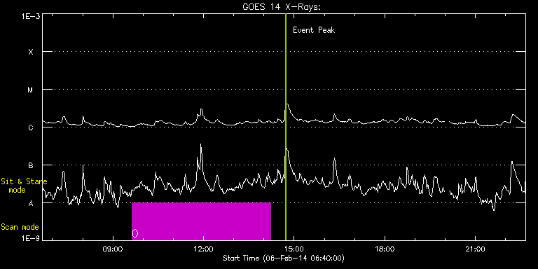 EIS Observation timeline overlay to GOES-Xray curve Code 1" 2" 40" 266" EIS Observations list for this event: STUDY ACRONYM ID DATE OBSERVED DESCRIPTION NOAA# TARGET 0 SK_CH_DIAG_320x384 | 38506 | 2014/02/06 09:37:25 | HOP81 polar monitoring campain (N-pole | | Coronal Hole TIMELINE ID DATE OBSERVED FITS FILE XCEN (+W/-E) YCEN (+N/-S) DUR ----------------------------------------------------------------------------------------------------------------- 38506 | 2014/02/06 09:37:25.000 | eis_l0_20140206_093725.fits.gz | -14.96 | 879.58 | 4h35m37s : Check study information : Download file : View thumbnails For this event, also check for: