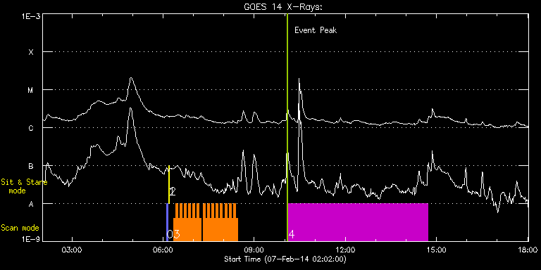 EIS Observation timeline overlay to GOES-Xray curve