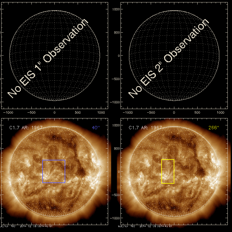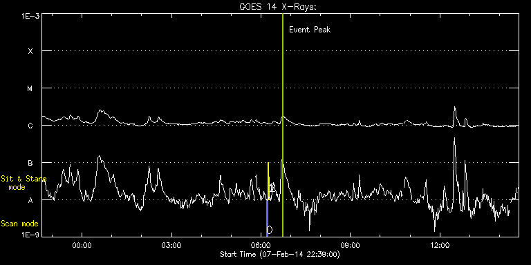EIS Observation timeline overlay to GOES-Xray curve Code 1" 2" 40" 266" EIS Observations list for this event: STUDY ACRONYM ID DATE OBSERVED DESCRIPTION NOAA# TARGET 0 PRY_slot_contextLITE | 38502 | 2014/02/08 06:10:56 | EIS-AIA alignment | 1971 | Active Region TIMELINE ID DATE OBSERVED FITS FILE XCEN (+W/-E) YCEN (+N/-S) DUR ----------------------------------------------------------------------------------------------------------------- 38502 | 2014/02/08 06:10:56.000 | eis_l0_20140208_061056.fits.gz | -15.29 | -0.42 | 2m56s 1 Alignment_266 | 38503 | 2014/02/08 06:14:11 | EIS-AIA alignment | 1971 | Quiet Sun TIMELINE ID DATE OBSERVED FITS FILE XCEN (+W/-E) YCEN (+N/-S) DUR ----------------------------------------------------------------------------------------------------------------- 38503 | 2014/02/08 06:14:11.000 | eis_l0_20140208_061411.fits.gz | -132.57 | -0.50 | 1m21s 2 XRT_synop_AIA | 38504 | 2014/02/08 06:16:45 | EIS-AIA alignment | 1971 | Quiet Sun TIMELINE ID DATE OBSERVED FITS FILE XCEN (+W/-E) YCEN (+N/-S) DUR ----------------------------------------------------------------------------------------------------------------- 38504 | 2014/02/08 06:16:45.000 | eis_l0_20140208_061645.fits.gz | -132.57 | -0.50 | 10s : Check study information : Download file : View thumbnails For this event, also check for: