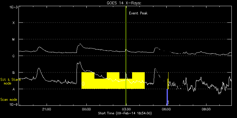 EIS Observation timeline overlay to GOES-Xray curve Code 1" 2" 40" 266" EIS Observations list for this event: STUDY ACRONYM ID DATE OBSERVED DESCRIPTION NOAA# TARGET 0 FLARE266_TEST1 | 38592 | 2014/02/09 23:38:13 | Flare Hunting | 1967 | Active Region TIMELINE ID DATE OBSERVED FITS FILE XCEN (+W/-E) YCEN (+N/-S) DUR ----------------------------------------------------------------------------------------------------------------- 38592 | 2014/02/09 23:38:13.000 | eis_l0_20140209_233813.fits.gz | 792.94 | -196.32 | 56m 38592 | 2014/02/10 00:35:05.000 | eis_l0_20140210_003505.fits.gz | 793.02 | -196.24 | 56m 38592 | 2014/02/10 01:31:57.000 | eis_l0_20140210_013157.fits.gz | 792.94 | -196.17 | 56m 38592 | 2014/02/10 02:28:48.000 | eis_l0_20140210_022848.fits.gz | 793.02 | -196.32 | 56m1s 38592 | 2014/02/10 03:25:41.000 | eis_l0_20140210_032541.fits.gz | 792.94 | -196.32 | 56m 1 PRY_slot_contextLITE | 38578 | 2014/02/10 06:02:26 | Change of EIS pointing and alignment w | 1973 | Active Region TIMELINE ID DATE OBSERVED FITS FILE XCEN (+W/-E) YCEN (+N/-S) DUR ----------------------------------------------------------------------------------------------------------------- 38578 | 2014/02/10 06:02:26.000 | eis_l0_20140210_060226.fits.gz | -15.29 | -0.35 | 2m56s 2 Alignment_266 | 38579 | 2014/02/10 06:05:41 | Change of EIS pointing and alignment w | 1973 | Quiet Sun TIMELINE ID DATE OBSERVED FITS FILE XCEN (+W/-E) YCEN (+N/-S) DUR ----------------------------------------------------------------------------------------------------------------- 38579 | 2014/02/10 06:05:41.000 | eis_l0_20140210_060541.fits.gz | -132.49 | -0.50 | 1m22s 3 XRT_synop_AIA | 38580 | 2014/02/10 06:08:15 | Change of EIS pointing and alignment w | 1973 | Quiet Sun TIMELINE ID DATE OBSERVED FITS FILE XCEN (+W/-E) YCEN (+N/-S) DUR ----------------------------------------------------------------------------------------------------------------- 38580 | 2014/02/10 06:08:15.000 | eis_l0_20140210_060815.fits.gz | -132.49 | -0.50 | 10s : Check study information : Download file : View thumbnails For this event, also check for: