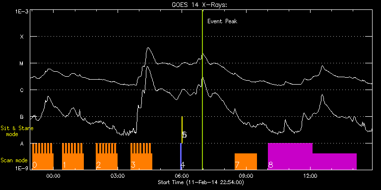 EIS Observation timeline overlay to GOES-Xray curve Code 1" 2" 40" 266" EIS Observations list for this event: STUDY ACRONYM ID DATE OBSERVED DESCRIPTION NOAA# TARGET 0 HH_Flare_162x152 | 38648 | 2014/02/11 23:00:44 | Flare observations. | | Flare TIMELINE ID DATE OBSERVED FITS FILE XCEN (+W/-E) YCEN (+N/-S) DUR ----------------------------------------------------------------------------------------------------------------- 38648 | 2014/02/11 23:00:44.000 | eis_l0_20140211_230044.fits.gz | -661.50 | -168.61 | 4m10s 38648 | 2014/02/11 23:04:57.000 | eis_l0_20140211_230457.fits.gz | -661.11 | -168.45 | 4m11s 38648 | 2014/02/11 23:09:10.000 | eis_l0_20140211_230910.fits.gz | -660.65 | -168.45 | 4m11s 38648 | 2014/02/11 23:13:24.000 | eis_l0_20140211_231324.fits.gz | -660.26 | -168.45 | 4m11s 38648 | 2014/02/11 23:17:38.000 | eis_l0_20140211_231738.fits.gz | -659.72 | -168.30 | 4m11s 38648 | 2014/02/11 23:21:51.000 | eis_l0_20140211_232151.fits.gz | -659.34 | -168.22 | 4m11s 38648 | 2014/02/11 23:26:05.000 | eis_l0_20140211_232605.fits.gz | -658.87 | -168.22 | 4m10s 38648 | 2014/02/11 23:30:18.000 | eis_l0_20140211_233018.fits.gz | -658.41 | -168.14 | 4m11s 38648 | 2014/02/11 23:34:32.000 | eis_l0_20140211_233432.fits.gz | -657.95 | -168.14 | 4m10s 38648 | 2014/02/11 23:38:45.000 | eis_l0_20140211_233845.fits.gz | -657.56 | -168.07 | 4m11s 38648 | 2014/02/11 23:42:58.000 | eis_l0_20140211_234258.fits.gz | -657.10 | -168.07 | 4m11s 38648 | 2014/02/11 23:47:12.000 | eis_l0_20140211_234712.fits.gz | -656.55 | -167.99 | 4m10s 38648 | 2014/02/11 23:51:25.000 | eis_l0_20140211_235125.fits.gz | -656.17 | -168.07 | 4m11s 38648 | 2014/02/11 23:55:39.000 | eis_l0_20140211_235539.fits.gz | -655.78 | -167.76 | 4m10s 1 HH_Flare_162x152 | 38649 | 2014/02/12 00:24:44 | Flare observations. | 1976 | Flare TIMELINE ID DATE OBSERVED FITS FILE XCEN (+W/-E) YCEN (+N/-S) DUR ----------------------------------------------------------------------------------------------------------------- 38649 | 2014/02/12 00:24:44.000 | eis_l0_20140212_002444.fits.gz | -652.69 | -167.45 | 4m10s 38649 | 2014/02/12 00:28:57.000 | eis_l0_20140212_002857.fits.gz | -652.23 | -167.45 | 4m10s 38649 | 2014/02/12 00:33:10.000 | eis_l0_20140212_003310.fits.gz | -651.77 | -167.22 | 4m11s 38649 | 2014/02/12 00:37:24.000 | eis_l0_20140212_003724.fits.gz | -651.30 | -167.22 | 4m10s 38649 | 2014/02/12 00:41:37.000 | eis_l0_20140212_004137.fits.gz | -650.84 | -167.22 | 4m10s 38649 | 2014/02/12 00:45:50.000 | eis_l0_20140212_004550.fits.gz | -650.38 | -167.14 | 4m11s 38649 | 2014/02/12 00:50:04.000 | eis_l0_20140212_005004.fits.gz | -649.99 | -167.22 | 4m10s 38649 | 2014/02/12 00:54:17.000 | eis_l0_20140212_005417.fits.gz | -649.45 | -166.98 | 4m11s 38649 | 2014/02/12 00:58:30.000 | eis_l0_20140212_005830.fits.gz | -648.98 | -167.14 | 4m11s 38649 | 2014/02/12 01:02:44.000 | eis_l0_20140212_010244.fits.gz | -648.52 | -167.14 | 4m11s 38649 | 2014/02/12 01:06:58.000 | eis_l0_20140212_010658.fits.gz | -648.21 | -166.83 | 4m10s 38649 | 2014/02/12 01:11:11.000 | eis_l0_20140212_011111.fits.gz | -647.67 | -166.83 | 4m10s 38649 | 2014/02/12 01:15:24.000 | eis_l0_20140212_011524.fits.gz | -647.21 | -166.83 | 4m11s 38649 | 2014/02/12 01:19:38.000 | eis_l0_20140212_011938.fits.gz | -646.67 | -166.91 | 4m10s 2 HH_Flare_162x152 | 38650 | 2014/02/12 01:59:43 | Flare observations. | 1976 | Flare TIMELINE ID DATE OBSERVED FITS FILE XCEN (+W/-E) YCEN (+N/-S) DUR ----------------------------------------------------------------------------------------------------------------- 38650 | 2014/02/12 01:59:43.000 | eis_l0_20140212_015943.fits.gz | -642.50 | -166.21 | 4m11s 38650 | 2014/02/12 02:03:57.000 | eis_l0_20140212_020357.fits.gz | -641.96 | -166.13 | 4m11s 38650 | 2014/02/12 02:08:11.000 | eis_l0_20140212_020811.fits.gz | -641.49 | -166.06 | 4m10s 38650 | 2014/02/12 02:12:24.000 | eis_l0_20140212_021224.fits.gz | -641.03 | -165.98 | 4m11s 38650 | 2014/02/12 02:16:38.000 | eis_l0_20140212_021638.fits.gz | -640.57 | -166.06 | 4m10s 38650 | 2014/02/12 02:20:51.000 | eis_l0_20140212_022051.fits.gz | -640.10 | -165.98 | 4m11s 38650 | 2014/02/12 02:25:04.000 | eis_l0_20140212_022504.fits.gz | -639.72 | -165.98 | 4m11s 38650 | 2014/02/12 02:29:18.000 | eis_l0_20140212_022918.fits.gz | -639.33 | -165.90 | 4m10s 38650 | 2014/02/12 02:33:31.000 | eis_l0_20140212_023331.fits.gz | -638.71 | -165.98 | 4m11s 38650 | 2014/02/12 02:37:44.000 | eis_l0_20140212_023744.fits.gz | -638.33 | -165.82 | 4m11s 38650 | 2014/02/12 02:41:58.000 | eis_l0_20140212_024158.fits.gz | -637.86 | -165.75 | 4m11s 38650 | 2014/02/12 02:46:11.000 | eis_l0_20140212_024611.fits.gz | -637.40 | -165.67 | 4m11s 38650 | 2014/02/12 02:50:25.000 | eis_l0_20140212_025025.fits.gz | -636.86 | -165.75 | 4m10s 38650 | 2014/02/12 02:54:38.000 | eis_l0_20140212_025438.fits.gz | -636.39 | -165.67 | 4m11s 3 HH_Flare_162x152 | 38651 | 2014/02/12 03:36:44 | Flare observations. | 1976 | Flare TIMELINE ID DATE OBSERVED FITS FILE XCEN (+W/-E) YCEN (+N/-S) DUR ----------------------------------------------------------------------------------------------------------------- 38651 | 2014/02/12 03:36:44.000 | eis_l0_20140212_033644.fits.gz | -631.84 | -165.05 | 4m10s 38651 | 2014/02/12 03:40:57.000 | eis_l0_20140212_034057.fits.gz | -631.45 | -164.98 | 4m11s 38651 | 2014/02/12 03:45:10.000 | eis_l0_20140212_034510.fits.gz | -630.91 | -164.98 | 4m11s 38651 | 2014/02/12 03:49:24.000 | eis_l0_20140212_034924.fits.gz | -630.45 | -164.74 | 4m11s 38651 | 2014/02/12 03:53:38.000 | eis_l0_20140212_035338.fits.gz | -629.98 | -164.90 | 4m10s 38651 | 2014/02/12 03:57:51.000 | eis_l0_20140212_035751.fits.gz | -629.52 | -164.74 | 4m10s 38651 | 2014/02/12 04:02:04.000 | eis_l0_20140212_040204.fits.gz | -629.05 | -164.90 | 4m11s 38651 | 2014/02/12 04:06:18.000 | eis_l0_20140212_040618.fits.gz | -628.59 | -164.67 | 4m10s 38651 | 2014/02/12 04:10:31.000 | eis_l0_20140212_041031.fits.gz | -628.13 | -164.74 | 4m11s 38651 | 2014/02/12 04:14:45.000 