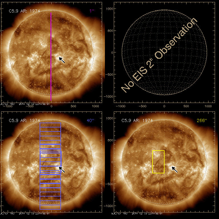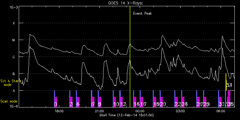 EIS Observation timeline overlay to GOES-Xray curve Code 1" 2" 40" 266" EIS Observations list for this event: STUDY ACRONYM ID DATE OBSERVED DESCRIPTION NOAA# TARGET 0 PRY_slot_contextLITE | 38599 | 2014/02/12 17:37:33 | Synoptic SOT Irradiance Scans | | Active Region TIMELINE ID DATE OBSERVED FITS FILE XCEN (+W/-E) YCEN (+N/-S) DUR ----------------------------------------------------------------------------------------------------------------- 38599 | 2014/02/12 17:37:33.000 | eis_l0_20140212_173733.fits.gz | -9880.70 | -9941.20 | 2m57s 1 SK_DEEP_5x512_SLIT1 | 38600 | 2014/02/12 17:40:41 | Synoptic SOT Irradiance Scans | | Quiet Sun TIMELINE ID DATE OBSERVED FITS FILE XCEN (+W/-E) YCEN (+N/-S) DUR ----------------------------------------------------------------------------------------------------------------- 38600 | 2014/02/12 17:40:41.000 | eis_l0_20140212_174041.fits.gz | -9865.72 | -9941.20 | 10m8s 2 PRY_slot_contextLITE | 38601 | 2014/02/12 18:46:03 | Synoptic SOT Irradiance Scans | | Active Region TIMELINE ID DATE OBSERVED FITS FILE XCEN (+W/-E) YCEN (+N/-S) DUR ----------------------------------------------------------------------------------------------------------------- 38601 | 2014/02/12 18:46:03.000 | eis_l0_20140212_184603.fits.gz | -26.36 | -843.52 | 2m57s 3 SK_DEEP_5x512_SLIT1 | 38602 | 2014/02/12 18:49:11 | Synoptic SOT Irradiance Scans | | Quiet Sun TIMELINE ID DATE OBSERVED FITS FILE XCEN (+W/-E) YCEN (+N/-S) DUR ----------------------------------------------------------------------------------------------------------------- 38602 | 2014/02/12 18:49:11.000 | eis_l0_20140212_184911.fits.gz | -11.38 | -843.52 | 10m8s 4 PRY_slot_contextLITE | 38603 | 2014/02/12 19:16:04 | Synoptic SOT Irradiance Scans | | Active Region TIMELINE ID DATE OBSERVED FITS FILE XCEN (+W/-E) YCEN (+N/-S) DUR ----------------------------------------------------------------------------------------------------------------- 38603 | 2014/02/12 19:16:04.000 | eis_l0_20140212_191604.fits.gz | -26.28 | -743.41 | 2m56s 5 SK_DEEP_5x512_SLIT1 | 38604 | 2014/02/12 19:19:12 | Synoptic SOT Irradiance Scans | | Quiet Sun TIMELINE ID DATE OBSERVED FITS FILE XCEN (+W/-E) YCEN (+N/-S) DUR ----------------------------------------------------------------------------------------------------------------- 38604 | 2014/02/12 19:19:12.000 | eis_l0_20140212_191912.fits.gz | -11.46 | -743.41 | 10m7s 6 PRY_slot_contextLITE | 38605 | 2014/02/12 20:23:03 | Synoptic SOT Irradiance Scans | | Active Region TIMELINE ID DATE OBSERVED FITS FILE XCEN (+W/-E) YCEN (+N/-S) DUR ----------------------------------------------------------------------------------------------------------------- 38605 | 2014/02/12 20:23:03.000 | eis_l0_20140212_202303.fits.gz | -26.36 | -643.29 | 2m56s 7 SK_DEEP_5x512_SLIT1 | 38606 | 2014/02/12 20:26:11 | Synoptic SOT Irradiance Scans | | Quiet Sun TIMELINE ID DATE OBSERVED FITS FILE XCEN (+W/-E) YCEN (+N/-S) DUR ----------------------------------------------------------------------------------------------------------------- 38606 | 2014/02/12 20:26:11.000 | eis_l0_20140212_202611.fits.gz | -11.31 | -643.29 | 10m8s 8 PRY_slot_contextLITE | 38607 | 2014/02/12 20:53:03 | Synoptic SOT Irradiance Scans | | Active Region TIMELINE ID DATE OBSERVED FITS FILE XCEN (+W/-E) YCEN (+N/-S) DUR ----------------------------------------------------------------------------------------------------------------- 38607 | 2014/02/12 20:53:03.000 | eis_l0_20140212_205303.fits.gz | -26.36 | -543.26 | 2m57s 9 SK_DEEP_5x512_SLIT1 | 38608 | 2014/02/12 20:56:11 | Synoptic SOT Irradiance Scans | | Quiet Sun TIMELINE ID DATE OBSERVED FITS FILE XCEN (+W/-E) YCEN (+N/-S) DUR ----------------------------------------------------------------------------------------------------------------- 38608 | 2014/02/12 20:56:11.000 | eis_l0_20140212_205611.fits.gz | -11.38 | -543.26 | 10m8s 10 PRY_slot_contextLITE | 38609 | 2014/02/12 21:59:33 | Synoptic SOT Irradiance Scans | | Active Region TIMELINE ID DATE OBSERVED FITS FILE XCEN (+W/-E) YCEN (+N/-S) DUR ----------------------------------------------------------------------------------------------------------------- 38609 | 2014/02/12 21:59:33.000 | eis_l0_20140212_215933.fits.gz | -26.44 | -443.45 | 2m57s 11 SK_DEEP_5x512_SLIT1 | 38610 | 2014/02/12 22:02:41 | Synoptic SOT Irradiance Scans | | Quiet Sun TIMELINE ID DATE OBSERVED FITS FILE XCEN (+W/-E) YCEN (+N/-S) DUR ----------------------------------------------------------------------------------------------------------------- 38610 | 2014/02/12 22:02:41.000 | eis_l0_20140212_220241.fits.gz | -11.46 | -443.53 | 10m8s 12 PRY_slot_contextLITE | 38611 | 2014/02/12 22:29:33 | Synoptic SOT Irradiance Scans | | Active Region TIMELINE ID DATE OBSERVED FITS FILE XCEN (+W/-E) YCEN (+N/-S) DUR ----------------------------------------------------------------------------------------------------------------- 38611 | 2014/02/12 22:29:33.000 | eis_l0_20140212_222933.fits.gz | -26.36 | -343.34 | 2m57s 13 SK_DEEP_5x512_SLIT1 | 38612 | 2014/02/12 22:32:41 | Synoptic SOT Irradiance Scans | | Quiet Sun TIMELINE ID DATE OBSERVED FITS FILE XCEN (+W/-E) YCEN (+N/-S) DUR ----------------------------------------------------------------------------------------------------------------- 38612 | 2014/02/12 22:32:41.000 | eis_l0_20140212_223241.fits.gz | -11.31 | -343.42 | 10m8s 14 PRY_slot_contextLITE | 38613 | 2014/02/12 23:29:33 | Synoptic SOT Irradiance Scans | 1974 | Active Region TIMELINE ID DATE OBSERVED FITS FILE XCEN (+W/-E) YCEN (+N/-S) DUR ----------------------------------------------------------------------------------------------------------------- 38613 | 2014/02/12 23:29:33.000 | eis_l0_20140212_232933.fits.gz | -26.44 | -243.23 | 2m56s 15 SK_DEEP_5x512_SLIT1 | 38614 | 2014/02/12 23:32:41 | Synoptic SOT Irradiance Scans | | Quiet Sun TIMELINE ID DATE OBSERVED FITS FILE XCEN (+W/-E) YCEN (+N/-S) DUR ---------------------------------------------------------------