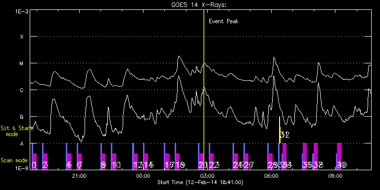 EIS Observation timeline overlay to GOES-Xray curve Code 1" 2" 40" 266" EIS Observations list for this event: STUDY ACRONYM ID DATE OBSERVED DESCRIPTION NOAA# TARGET 0 PRY_slot_contextLITE | 38601 | 2014/02/12 18:46:03 | Synoptic SOT Irradiance Scans | | Active Region TIMELINE ID DATE OBSERVED FITS FILE XCEN (+W/-E) YCEN (+N/-S) DUR ----------------------------------------------------------------------------------------------------------------- 38601 | 2014/02/12 18:46:03.000 | eis_l0_20140212_184603.fits.gz | -26.36 | -843.52 | 2m57s 1 SK_DEEP_5x512_SLIT1 | 38602 | 2014/02/12 18:49:11 | Synoptic SOT Irradiance Scans | | Quiet Sun TIMELINE ID DATE OBSERVED FITS FILE XCEN (+W/-E) YCEN (+N/-S) DUR ----------------------------------------------------------------------------------------------------------------- 38602 | 2014/02/12 18:49:11.000 | eis_l0_20140212_184911.fits.gz | -11.38 | -843.52 | 10m8s 2 PRY_slot_contextLITE | 38603 | 2014/02/12 19:16:04 | Synoptic SOT Irradiance Scans | | Active Region TIMELINE ID DATE OBSERVED FITS FILE XCEN (+W/-E) YCEN (+N/-S) DUR ----------------------------------------------------------------------------------------------------------------- 38603 | 2014/02/12 19:16:04.000 | eis_l0_20140212_191604.fits.gz | -26.28 | -743.41 | 2m56s 3 SK_DEEP_5x512_SLIT1 | 38604 | 2014/02/12 19:19:12 | Synoptic SOT Irradiance Scans | | Quiet Sun TIMELINE ID DATE OBSERVED FITS FILE XCEN (+W/-E) YCEN (+N/-S) DUR ----------------------------------------------------------------------------------------------------------------- 38604 | 2014/02/12 19:19:12.000 | eis_l0_20140212_191912.fits.gz | -11.46 | -743.41 | 10m7s 4 PRY_slot_contextLITE | 38605 | 2014/02/12 20:23:03 | Synoptic SOT Irradiance Scans | | Active Region TIMELINE ID DATE OBSERVED FITS FILE XCEN (+W/-E) YCEN (+N/-S) DUR ----------------------------------------------------------------------------------------------------------------- 38605 | 2014/02/12 20:23:03.000 | eis_l0_20140212_202303.fits.gz | -26.36 | -643.29 | 2m56s 5 SK_DEEP_5x512_SLIT1 | 38606 | 2014/02/12 20:26:11 | Synoptic SOT Irradiance Scans | | Quiet Sun TIMELINE ID DATE OBSERVED FITS FILE XCEN (+W/-E) YCEN (+N/-S) DUR ----------------------------------------------------------------------------------------------------------------- 38606 | 2014/02/12 20:26:11.000 | eis_l0_20140212_202611.fits.gz | -11.31 | -643.29 | 10m8s 6 PRY_slot_contextLITE | 38607 | 2014/02/12 20:53:03 | Synoptic SOT Irradiance Scans | | Active Region TIMELINE ID DATE OBSERVED FITS FILE XCEN (+W/-E) YCEN (+N/-S) DUR ----------------------------------------------------------------------------------------------------------------- 38607 | 2014/02/12 20:53:03.000 | eis_l0_20140212_205303.fits.gz | -26.36 | -543.26 | 2m57s 7 SK_DEEP_5x512_SLIT1 | 38608 | 2014/02/12 20:56:11 | Synoptic SOT Irradiance Scans | | Quiet Sun TIMELINE ID DATE OBSERVED FITS FILE XCEN (+W/-E) YCEN (+N/-S) DUR ----------------------------------------------------------------------------------------------------------------- 38608 | 2014/02/12 20:56:11.000 | eis_l0_20140212_205611.fits.gz | -11.38 | -543.26 | 10m8s 8 PRY_slot_contextLITE | 38609 | 2014/02/12 21:59:33 | Synoptic SOT Irradiance Scans | | Active Region TIMELINE ID DATE OBSERVED FITS FILE XCEN (+W/-E) YCEN (+N/-S) DUR ----------------------------------------------------------------------------------------------------------------- 38609 | 2014/02/12 21:59:33.000 | eis_l0_20140212_215933.fits.gz | -26.44 | -443.45 | 2m57s 9 SK_DEEP_5x512_SLIT1 | 38610 | 2014/02/12 22:02:41 | Synoptic SOT Irradiance Scans | | Quiet Sun TIMELINE ID DATE OBSERVED FITS FILE XCEN (+W/-E) YCEN (+N/-S) DUR ----------------------------------------------------------------------------------------------------------------- 38610 | 2014/02/12 22:02:41.000 | eis_l0_20140212_220241.fits.gz | -11.46 | -443.53 | 10m8s 10 PRY_slot_contextLITE | 38611 | 2014/02/12 22:29:33 | Synoptic SOT Irradiance Scans | | Active Region TIMELINE ID DATE OBSERVED FITS FILE XCEN (+W/-E) YCEN (+N/-S) DUR ----------------------------------------------------------------------------------------------------------------- 38611 | 2014/02/12 22:29:33.000 | eis_l0_20140212_222933.fits.gz | -26.36 | -343.34 | 2m57s 11 SK_DEEP_5x512_SLIT1 | 38612 | 2014/02/12 22:32:41 | Synoptic SOT Irradiance Scans | | Quiet Sun TIMELINE ID DATE OBSERVED FITS FILE XCEN (+W/-E) YCEN (+N/-S) DUR ----------------------------------------------------------------------------------------------------------------- 38612 | 2014/02/12 22:32:41.000 | eis_l0_20140212_223241.fits.gz | -11.31 | -343.42 | 10m8s 12 PRY_slot_contextLITE | 38613 | 2014/02/12 23:29:33 | Synoptic SOT Irradiance Scans | 1974 | Active Region TIMELINE ID DATE OBSERVED FITS FILE XCEN (+W/-E) YCEN (+N/-S) DUR ----------------------------------------------------------------------------------------------------------------- 38613 | 2014/02/12 23:29:33.000 | eis_l0_20140212_232933.fits.gz | -26.44 | -243.23 | 2m56s 13 SK_DEEP_5x512_SLIT1 | 38614 | 2014/02/12 23:32:41 | Synoptic SOT Irradiance Scans | | Quiet Sun TIMELINE ID DATE OBSERVED FITS FILE XCEN (+W/-E) YCEN (+N/-S) DUR ----------------------------------------------------------------------------------------------------------------- 38614 | 2014/02/12 23:32:41.000 | eis_l0_20140212_233241.fits.gz | -11.46 | -243.38 | 10m8s 14 PRY_slot_contextLITE | 38615 | 2014/02/12 23:59:33 | Synoptic SOT Irradiance Scans | 1974 | Active Region TIMELINE ID DATE OBSERVED FITS FILE XCEN (+W/-E) YCEN (+N/-S) DUR ----------------------------------------------------------------------------------------------------------------- 38615 | 2014/02/12 23:59:33.000 | eis_l0_20140212_235933.fits.gz | -26.36 | -143.27 | 2m56s 15 SK_DEEP_5x512_SLIT1 | 38616 | 2014/02/13 00:02:41 | Synoptic SOT Irradiance Scans | | Quiet Sun TIMELINE ID DATE OBSERVED FITS FILE XCEN (+W/-E) YCEN (+N/-S) DUR ----------------------------------------------------------------