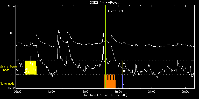 EIS Observation timeline overlay to GOES-Xray curve