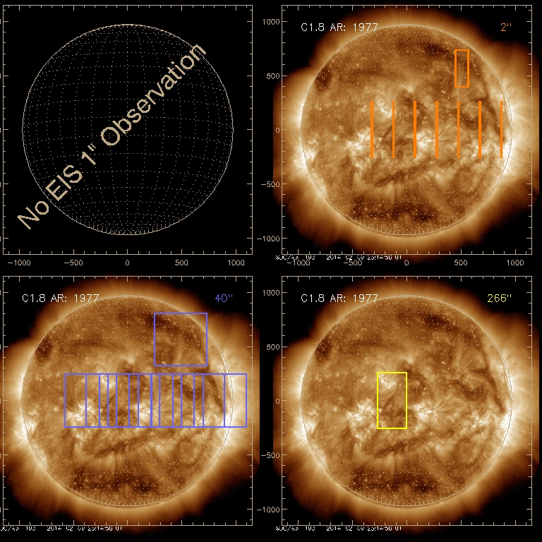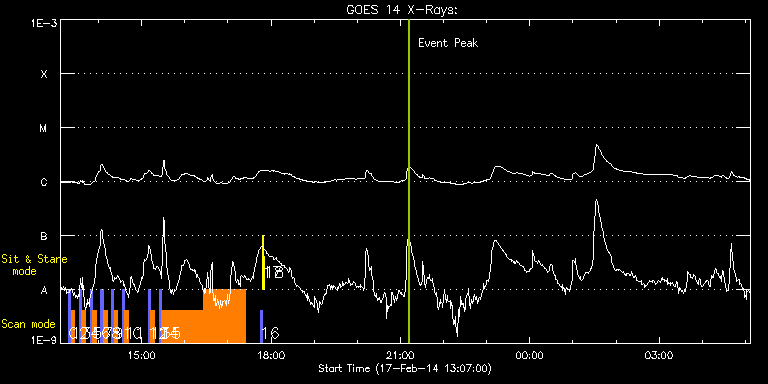 EIS Observation timeline overlay to GOES-Xray curve Code 1" 2" 40" 266" EIS Observations list for this event: STUDY ACRONYM ID DATE OBSERVED DESCRIPTION NOAA# TARGET 0 PRY_slot_contextLITE | 38722 | 2014/02/17 13:18:19 | SOT irradiance scan | | Active Region TIMELINE ID DATE OBSERVED FITS FILE XCEN (+W/-E) YCEN (+N/-S) DUR ----------------------------------------------------------------------------------------------------------------- 38722 | 2014/02/17 13:18:19.000 | eis_l0_20140217_131819.fits.gz | -338.11 | -0.51 | 2m57s 1 SK_DEEP_10x512_SLIT2 | 38723 | 2014/02/17 13:21:41 | SOT irradiance scan | | Quiet Sun TIMELINE ID DATE OBSERVED FITS FILE XCEN (+W/-E) YCEN (+N/-S) DUR ----------------------------------------------------------------------------------------------------------------- 38723 | 2014/02/17 13:21:41.000 | eis_l0_20140217_132141.fits.gz | -318.45 | -0.51 | 5m8s 2 PRY_slot_contextLITE | 38724 | 2014/02/17 13:33:19 | SOT irradiance scan | 1977 | Active Region TIMELINE ID DATE OBSERVED FITS FILE XCEN (+W/-E) YCEN (+N/-S) DUR ----------------------------------------------------------------------------------------------------------------- 38724 | 2014/02/17 13:33:19.000 | eis_l0_20140217_133319.fits.gz | -139.04 | -0.58 | 2m57s 3 SK_DEEP_10x512_SLIT2 | 38725 | 2014/02/17 13:36:41 | SOT irradiance scan | | Quiet Sun TIMELINE ID DATE OBSERVED FITS FILE XCEN (+W/-E) YCEN (+N/-S) DUR ----------------------------------------------------------------------------------------------------------------- 38725 | 2014/02/17 13:36:41.000 | eis_l0_20140217_133641.fits.gz | -119.39 | -0.51 | 5m8s 4 PRY_slot_contextLITE | 38726 | 2014/02/17 13:48:19 | SOT irradiance scan | 1977 | Active Region TIMELINE ID DATE OBSERVED FITS FILE XCEN (+W/-E) YCEN (+N/-S) DUR ----------------------------------------------------------------------------------------------------------------- 38726 | 2014/02/17 13:48:19.000 | eis_l0_20140217_134819.fits.gz | 59.64 | -0.58 | 2m56s 5 SK_DEEP_10x512_SLIT2 | 38727 | 2014/02/17 13:51:41 | SOT irradiance scan | | Quiet Sun TIMELINE ID DATE OBSERVED FITS FILE XCEN (+W/-E) YCEN (+N/-S) DUR ----------------------------------------------------------------------------------------------------------------- 38727 | 2014/02/17 13:51:41.000 | eis_l0_20140217_135141.fits.gz | 79.37 | -0.51 | 5m7s 6 PRY_slot_contextLITE | 38728 | 2014/02/17 14:03:19 | SOT irradiance scan | 1976 | Active Region TIMELINE ID DATE OBSERVED FITS FILE XCEN (+W/-E) YCEN (+N/-S) DUR ----------------------------------------------------------------------------------------------------------------- 38728 | 2014/02/17 14:03:19.000 | eis_l0_20140217_140319.fits.gz | 258.71 | -0.43 | 2m57s 7 SK_DEEP_10x512_SLIT2 | 38729 | 2014/02/17 14:06:41 | SOT irradiance scan | | Quiet Sun TIMELINE ID DATE OBSERVED FITS FILE XCEN (+W/-E) YCEN (+N/-S) DUR ----------------------------------------------------------------------------------------------------------------- 38729 | 2014/02/17 14:06:41.000 | eis_l0_20140217_140641.fits.gz | 278.44 | -0.58 | 5m8s 8 PRY_slot_contextLITE | 38730 | 2014/02/17 14:18:19 | SOT irradiance scan | 1976 | Active Region TIMELINE ID DATE OBSERVED FITS FILE XCEN (+W/-E) YCEN (+N/-S) DUR ----------------------------------------------------------------------------------------------------------------- 38730 | 2014/02/17 14:18:19.000 | eis_l0_20140217_141819.fits.gz | 457.85 | -0.51 | 2m57s 9 SK_DEEP_10x512_SLIT2 | 38731 | 2014/02/17 14:21:41 | SOT irradiance scan | | Quiet Sun TIMELINE ID DATE OBSERVED FITS FILE XCEN (+W/-E) YCEN (+N/-S) DUR ----------------------------------------------------------------------------------------------------------------- 38731 | 2014/02/17 14:21:41.000 | eis_l0_20140217_142141.fits.gz | 477.51 | -0.51 | 5m8s 10 PRY_slot_contextLITE | 38732 | 2014/02/17 14:33:19 | SOT irradiance scan | 1974 | Active Region TIMELINE ID DATE OBSERVED FITS FILE XCEN (+W/-E) YCEN (+N/-S) DUR ----------------------------------------------------------------------------------------------------------------- 38732 | 2014/02/17 14:33:19.000 | eis_l0_20140217_143319.fits.gz | 657.69 | -0.51 | 2m57s 11 SK_DEEP_10x512_SLIT2 | 38733 | 2014/02/17 14:36:41 | SOT irradiance scan | | Quiet Sun TIMELINE ID DATE OBSERVED FITS FILE XCEN (+W/-E) YCEN (+N/-S) DUR ----------------------------------------------------------------------------------------------------------------- 38733 | 2014/02/17 14:36:41.000 | eis_l0_20140217_143641.fits.gz | 677.27 | -0.51 | 5m7s 12 PRY_slot_contextLITE | 38734 | 2014/02/17 15:09:19 | SOT irradiance scan | 1973 | Active Region TIMELINE ID DATE OBSERVED FITS FILE XCEN (+W/-E) YCEN (+N/-S) DUR ----------------------------------------------------------------------------------------------------------------- 38734 | 2014/02/17 15:09:19.000 | eis_l0_20140217_150919.fits.gz | 856.68 | -0.51 | 2m56s 13 SK_DEEP_10x512_SLIT2 | 38735 | 2014/02/17 15:12:40 | SOT irradiance scan | | Quiet Sun TIMELINE ID DATE OBSERVED FITS FILE XCEN (+W/-E) YCEN (+N/-S) DUR ----------------------------------------------------------------------------------------------------------------- 38735 | 2014/02/17 15:12:40.000 | eis_l0_20140217_151240.fits.gz | 876.41 | -0.43 | 5m8s 14 PRY_slot_contextLITE | 38682 | 2014/02/17 15:24:19 | Slot context for coronal hole jet obse | | Active Region TIMELINE ID DATE OBSERVED FITS FILE XCEN (+W/-E) YCEN (+N/-S) DUR ----------------------------------------------------------------------------------------------------------------- 38682 | 2014/02/17 15:24:19.000 | eis_l0_20140217_152419.fits.gz | 492.93 | 561.94 | 2m57s 15 ISSI_jet_1 | 38683 | 2014/02/17 15:27:41 | On disk coronal hole jet observations | | Quiet Sun TIMELINE ID DATE OBSERVED FITS FILE XCEN (+W/-E) YCEN (+N/-S) DUR ----------------------------------------------------------------------------------------------------------------- 38683 | 2014/02/17 15:27:41.000 | eis_l0_20140217_152741.fits.gz | 507.48 | 561.86 | 58m3