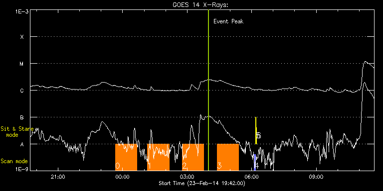 EIS Observation timeline overlay to GOES-Xray curve Code 1" 2" 40" 266" EIS Observations list for this event: STUDY ACRONYM ID DATE OBSERVED DESCRIPTION NOAA# TARGET 0 Fast_moss_scan | 38833 | 2014/02/23 23:39:40 | IHOP 247 | | Active Region TIMELINE ID DATE OBSERVED FITS FILE XCEN (+W/-E) YCEN (+N/-S) DUR ----------------------------------------------------------------------------------------------------------------- 38833 | 2014/02/23 23:39:40.000 | eis_l0_20140223_233940.fits.gz | 136.30 | -36.88 | 19s 38833 | 2014/02/23 23:40:02.000 | eis_l0_20140223_234002.fits.gz | 136.37 | -37.04 | 18s 38833 | 2014/02/23 23:40:23.000 | eis_l0_20140223_234023.fits.gz | 136.53 | -37.12 | 18s 38833 | 2014/02/23 23:40:44.000 | eis_l0_20140223_234044.fits.gz | 136.53 | -37.12 | 18s 38833 | 2014/02/23 23:41:05.000 | eis_l0_20140223_234105.fits.gz | 136.60 | -37.04 | 19s 38833 | 2014/02/23 23:41:27.000 | eis_l0_20140223_234127.fits.gz | 136.60 | -37.12 | 18s 38833 | 2014/02/23 23:41:48.000 | eis_l0_20140223_234148.fits.gz | 136.60 | -37.04 | 19s 38833 | 2014/02/23 23:42:09.000 | eis_l0_20140223_234209.fits.gz | 136.76 | -36.88 | 19s 38833 | 2014/02/23 23:42:31.000 | eis_l0_20140223_234231.fits.gz | 136.76 | -37.04 | 18s 38833 | 2014/02/23 23:42:52.000 | eis_l0_20140223_234252.fits.gz | 136.84 | -37.12 | 19s 38833 | 2014/02/23 23:43:14.000 | eis_l0_20140223_234314.fits.gz | 136.76 | -37.04 | 18s 38833 | 2014/02/23 23:43:35.000 | eis_l0_20140223_234335.fits.gz | 136.91 | -37.12 | 18s 38833 | 2014/02/23 23:43:56.000 | eis_l0_20140223_234356.fits.gz | 136.99 | -37.12 | 19s 38833 | 2014/02/23 23:44:18.000 | eis_l0_20140223_234418.fits.gz | 136.99 | -37.04 | 18s 38833 | 2014/02/23 23:44:39.000 | eis_l0_20140223_234439.fits.gz | 137.07 | -37.12 | 18s 38833 | 2014/02/23 23:45:00.000 | eis_l0_20140223_234500.fits.gz | 137.22 | -37.12 | 19s 38833 | 2014/02/23 23:45:22.000 | eis_l0_20140223_234522.fits.gz | 137.22 | -37.04 | 18s 38833 | 2014/02/23 23:45:43.000 | eis_l0_20140223_234543.fits.gz | 137.22 | -36.96 | 18s 38833 | 2014/02/23 23:46:04.000 | eis_l0_20140223_234604.fits.gz | 137.30 | -37.12 | 19s 38833 | 2014/02/23 23:46:26.000 | eis_l0_20140223_234626.fits.gz | 137.30 | -37.12 | 18s 38833 | 2014/02/23 23:46:47.000 | eis_l0_20140223_234647.fits.gz | 137.38 | -37.12 | 18s 38833 | 2014/02/23 23:47:08.000 | eis_l0_20140223_234708.fits.gz | 137.46 | -37.12 | 19s 38833 | 2014/02/23 23:47:29.000 | eis_l0_20140223_234729.fits.gz | 137.61 | -37.27 | 19s 38833 | 2014/02/23 23:47:51.000 | eis_l0_20140223_234751.fits.gz | 137.61 | -37.04 | 18s 38833 | 2014/02/23 23:48:12.000 | eis_l0_20140223_234812.fits.gz | 137.61 | -37.12 | 18s 38833 | 2014/02/23 23:48:33.000 | eis_l0_20140223_234833.fits.gz | 137.69 | -36.88 | 18s 38833 | 2014/02/23 23:48:54.000 | eis_l0_20140223_234854.fits.gz | 137.76 | -36.96 | 19s 38833 | 2014/02/23 23:49:16.000 | eis_l0_20140223_234916.fits.gz | 137.76 | -37.12 | 18s 38833 | 2014/02/23 23:49:37.000 | eis_l0_20140223_234937.fits.gz | 137.92 | -37.12 | 19s 38833 | 2014/02/23 23:49:59.000 | eis_l0_20140223_234959.fits.gz | 138.00 | -37.12 | 18s 38833 | 2014/02/23 23:50:20.000 | eis_l0_20140223_235020.fits.gz | 138.00 | -37.12 | 18s 38833 | 2014/02/23 23:50:41.000 | eis_l0_20140223_235041.fits.gz | 138.00 | -37.19 | 18s 38833 | 2014/02/23 23:51:02.000 | eis_l0_20140223_235102.fits.gz | 138.07 | -37.19 | 19s 38833 | 2014/02/23 23:51:24.000 | eis_l0_20140223_235124.fits.gz | 138.15 | -37.12 | 18s 38833 | 2014/02/23 23:51:45.000 | eis_l0_20140223_235145.fits.gz | 138.15 | -37.19 | 18s 38833 | 2014/02/23 23:52:06.000 | eis_l0_20140223_235206.fits.gz | 138.23 | -37.19 | 18s 38833 | 2014/02/23 23:52:27.000 | eis_l0_20140223_235227.fits.gz | 138.30 | -37.19 | 19s 38833 | 2014/02/23 23:52:49.000 | eis_l0_20140223_235249.fits.gz | 138.38 | -37.27 | 18s 38833 | 2014/02/23 23:53:10.000 | eis_l0_20140223_235310.fits.gz | 138.46 | -37.19 | 18s 38833 | 2014/02/23 23:53:31.000 | eis_l0_20140223_235331.fits.gz | 138.38 | -37.12 | 19s 38833 | 2014/02/23 23:53:53.000 | eis_l0_20140223_235353.fits.gz | 138.54 | -37.19 | 18s 38833 | 2014/02/23 23:54:14.000 | eis_l0_20140223_235414.fits.gz | 138.61 | -37.19 | 18s 38833 | 2014/02/23 23:54:35.000 | eis_l0_20140223_235435.fits.gz | 138.54 | -37.04 | 19s 38833 | 2014/02/23 23:54:56.000 | eis_l0_20140223_235456.fits.gz | 138.61 | -37.19 | 19s 38833 | 2014/02/23 23:55:18.000 | eis_l0_20140223_235518.fits.gz | 138.69 | -37.27 | 18s 38833 | 2014/02/23 23:55:39.000 | eis_l0_20140223_235539.fits.gz | 138.77 | -37.27 | 19s 38833 | 2014/02/23 23:56:00.000 | eis_l0_20140223_235600.fits.gz | 138.85 | -37.12 | 19s 38833 | 2014/02/23 23:56:22.000 | eis_l0_20140223_235622.fits.gz | 138.85 | -37.27 | 18s 38833 | 2014/02/23 23:56:43.000 | eis_l0_20140223_235643.fits.gz | 138.92 | -37.12 | 18s 38833 | 2014/02/23 23:57:04.000 | eis_l0_20140223_235704.fits.gz | 139.00 | -37.19 | 19s 38833 | 2014/02/23 23:57:26.000 | eis_l0_20140223_235726.fits.gz | 139.15 | -37.35 | 18s 38833 | 2014/02/23 23:57:47.000 | eis_l0_20140223_235747.fits.gz | 139.08 | -37.42 | 18s 38833 | 2014/02/23 23:58:08.000 | eis_l0_20140223_235808.fits.gz | 139.15 | -37.35 | 19s 38833 | 2014/02/23 23:58:29.000 | eis_l0_20140223_235829.fits.gz | 139.23 | -37.27 | 19s 38833 | 2014/02/23 23:58:51.000 | eis_l0_20140223_235851.fits.gz | 139.39 | -37.19 | 18s 38833 | 2014/02/23 23:59:12.000 | eis_l0_20140223_235912.fits.gz | 139.23 | -37.12 | 18s 38833 | 2014/02/23 23:59:33.000 | eis_l0_20140223_235933.fits.gz | 139.31 | -37.12 | 19s 38833 | 2014/02/23 23:59:55.000 | eis_l0_20140223_235955.fits.gz | 139.39 | -37.27 | 18s 38833 | 2014/02/24 00:00:16.000 | eis_l0_20140224_000016.fits.gz | 139.46 | -37.27 | 18s 38833 | 2014/02/24 00:00:37.000 | eis_l0_20140224_000037.fits.gz | 139.54 | -37.27 | 19s 38833 | 2014/02/24 00:00:59.000 | eis_l0_20140224_000059.fits.gz | 139.62 | -37.27 | 18s 38833 | 2014/02/24 00:01:20.000 | eis_l0_20140224_000120.fits.gz | 139.70 | -37.19 | 18s 38833 | 2014/02/24 00:01:41.000 | eis_l0_20140224_000141.fit