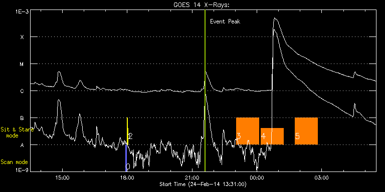 EIS Observation timeline overlay to GOES-Xray curve Code 1" 2" 40" 266" EIS Observations list for this event: STUDY ACRONYM ID DATE OBSERVED DESCRIPTION NOAA# TARGET 0 PRY_slot_contextLITE | 38815 | 2014/02/24 17:55:49 | Synoptic observations | 1982 | Active Region TIMELINE ID DATE OBSERVED FITS FILE XCEN (+W/-E) YCEN (+N/-S) DUR ----------------------------------------------------------------------------------------------------------------- 38815 | 2014/02/24 17:55:49.000 | eis_l0_20140224_175549.fits.gz | -15.21 | -0.58 | 2m56s 1 Alignment_266 | 38816 | 2014/02/24 17:59:25 | Synoptic observations | | Quiet Sun TIMELINE ID DATE OBSERVED FITS FILE XCEN (+W/-E) YCEN (+N/-S) DUR ----------------------------------------------------------------------------------------------------------------- 38816 | 2014/02/24 17:59:25.000 | eis_l0_20140224_175925.fits.gz | -132.41 | -0.58 | 1m23s 2 XRT_synop_AIA | 38817 | 2014/02/24 18:02:14 | Synoptic observations | | Quiet Sun TIMELINE ID DATE OBSERVED FITS FILE XCEN (+W/-E) YCEN (+N/-S) DUR ----------------------------------------------------------------------------------------------------------------- 38817 | 2014/02/24 18:02:14.000 | eis_l0_20140224_180214.fits.gz | -132.49 | -0.42 | 11s 3 vhh_slowar_sas_1h6m | 38837 | 2014/02/24 23:02:19 | IHOP 249 | | Active Region TIMELINE ID DATE OBSERVED FITS FILE XCEN (+W/-E) YCEN (+N/-S) DUR ----------------------------------------------------------------------------------------------------------------- 38837 | 2014/02/24 23:02:19.000 | eis_l0_20140224_230219.fits.gz | -9869.95 | -9963.20 | 1h2m48s 4 vhh_slowar_sas_1h6m | 38838 | 2014/02/25 00:11:09 | IHOP 249 | | Active Region TIMELINE ID DATE OBSERVED FITS FILE XCEN (+W/-E) YCEN (+N/-S) DUR ----------------------------------------------------------------------------------------------------------------- 38838 | 2014/02/25 00:11:09.000 | eis_l0_20140225_001109.fits.gz | -9869.95 | -9963.20 | 1h2m49s 5 vhh_slowar_sas_1h6m | 38839 | 2014/02/25 01:45:39 | IHOP 249 | | Active Region TIMELINE ID DATE OBSERVED FITS FILE XCEN (+W/-E) YCEN (+N/-S) DUR ----------------------------------------------------------------------------------------------------------------- 38839 | 2014/02/25 01:45:39.000 | eis_l0_20140225_014539.fits.gz | -9869.95 | -9963.20 | 1h2m49s : Check study information : Download file : View thumbnails For this event, also check for: