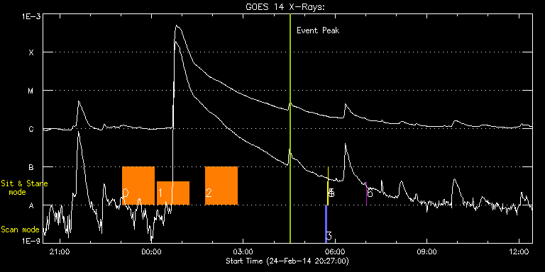 EIS Observation timeline overlay to GOES-Xray curve Code 1" 2" 40" 266" EIS Observations list for this event: STUDY ACRONYM ID DATE OBSERVED DESCRIPTION NOAA# TARGET 0 vhh_slowar_sas_1h6m | 38837 | 2014/02/24 23:02:19 | IHOP 249 | | Active Region TIMELINE ID DATE OBSERVED FITS FILE XCEN (+W/-E) YCEN (+N/-S) DUR ----------------------------------------------------------------------------------------------------------------- 38837 | 2014/02/24 23:02:19.000 | eis_l0_20140224_230219.fits.gz | -9869.95 | -9963.20 | 1h2m48s 1 vhh_slowar_sas_1h6m | 38838 | 2014/02/25 00:11:09 | IHOP 249 | | Active Region TIMELINE ID DATE OBSERVED FITS FILE XCEN (+W/-E) YCEN (+N/-S) DUR ----------------------------------------------------------------------------------------------------------------- 38838 | 2014/02/25 00:11:09.000 | eis_l0_20140225_001109.fits.gz | -9869.95 | -9963.20 | 1h2m49s 2 vhh_slowar_sas_1h6m | 38839 | 2014/02/25 01:45:39 | IHOP 249 | | Active Region TIMELINE ID DATE OBSERVED FITS FILE XCEN (+W/-E) YCEN (+N/-S) DUR ----------------------------------------------------------------------------------------------------------------- 38839 | 2014/02/25 01:45:39.000 | eis_l0_20140225_014539.fits.gz | -9869.95 | -9963.20 | 1h2m49s 3 PRY_slot_contextLITE | 38818 | 2014/02/25 05:40:48 | Synoptic observations | | Active Region TIMELINE ID DATE OBSERVED FITS FILE XCEN (+W/-E) YCEN (+N/-S) DUR ----------------------------------------------------------------------------------------------------------------- 38818 | 2014/02/25 05:40:48.000 | eis_l0_20140225_054048.fits.gz | -15.29 | -0.42 | 2m57s 4 Alignment_266 | 38819 | 2014/02/25 05:44:26 | Synoptic observations | | Quiet Sun TIMELINE ID DATE OBSERVED FITS FILE XCEN (+W/-E) YCEN (+N/-S) DUR ----------------------------------------------------------------------------------------------------------------- 38819 | 2014/02/25 05:44:26.000 | eis_l0_20140225_054426.fits.gz | -132.57 | -0.58 | 1m22s 5 XRT_synop_AIA | 38820 | 2014/02/25 05:46:48 | Synoptic observations | | Quiet Sun TIMELINE ID DATE OBSERVED FITS FILE XCEN (+W/-E) YCEN (+N/-S) DUR ----------------------------------------------------------------------------------------------------------------- 38820 | 2014/02/25 05:46:48.000 | eis_l0_20140225_054648.fits.gz | -132.57 | -0.58 | 10s 6 regcal077 | 38824 | 2014/02/25 07:01:40 | Flatfield, 2 exposures, led 80ms, full | | Engineering TIMELINE ID DATE OBSERVED FITS FILE XCEN (+W/-E) YCEN (+N/-S) DUR ----------------------------------------------------------------------------------------------------------------- 38824 | 2014/02/25 07:01:40.000 | eis_l0_20140225_070140.fits.gz | 429.41 | -97.16 | 4s : Check study information : Download file : View thumbnails For this event, also check for: