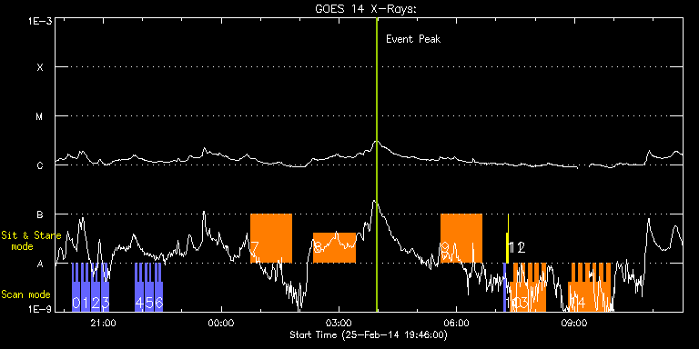 EIS Observation timeline overlay to GOES-Xray curve Code 1" 2" 40" 266" EIS Observations list for this event: STUDY ACRONYM ID DATE OBSERVED DESCRIPTION NOAA# TARGET 0 Alignment_modify_v2 | 38864 | 2014/02/25 20:11:45 | Hinode instrument alignment - east lim | | Quiet Sun TIMELINE ID DATE OBSERVED FITS FILE XCEN (+W/-E) YCEN (+N/-S) DUR ----------------------------------------------------------------------------------------------------------------- 38864 | 2014/02/25 20:11:45.000 | eis_l0_20140225_201145.fits.gz | -9893.92 | -9963.20 | 2m34s 38864 | 2014/02/25 20:14:53.000 | eis_l0_20140225_201453.fits.gz | -9893.92 | -9963.20 | 2m34s 38864 | 2014/02/25 20:18:01.000 | eis_l0_20140225_201801.fits.gz | -9893.92 | -9963.20 | 2m34s 38864 | 2014/02/25 20:21:08.000 | eis_l0_20140225_202108.fits.gz | -9893.92 | -9963.20 | 2m34s 1 Alignment_modify_v2 | 38865 | 2014/02/25 20:26:45 | Hinode instrument alignment - east lim | | Quiet Sun TIMELINE ID DATE OBSERVED FITS FILE XCEN (+W/-E) YCEN (+N/-S) DUR ----------------------------------------------------------------------------------------------------------------- 38865 | 2014/02/25 20:26:45.000 | eis_l0_20140225_202645.fits.gz | -9893.92 | -9963.20 | 2m34s 38865 | 2014/02/25 20:29:53.000 | eis_l0_20140225_202953.fits.gz | -9893.92 | -9963.20 | 2m34s 38865 | 2014/02/25 20:33:00.000 | eis_l0_20140225_203300.fits.gz | -9893.92 | -9963.20 | 2m34s 38865 | 2014/02/25 20:36:08.000 | eis_l0_20140225_203608.fits.gz | -9893.92 | -9963.20 | 2m34s 2 Alignment_modify_v2 | 38866 | 2014/02/25 20:41:45 | Hinode instrument alignment - east lim | | Quiet Sun TIMELINE ID DATE OBSERVED FITS FILE XCEN (+W/-E) YCEN (+N/-S) DUR ----------------------------------------------------------------------------------------------------------------- 38866 | 2014/02/25 20:41:45.000 | eis_l0_20140225_204145.fits.gz | -9893.92 | -9963.20 | 2m34s 38866 | 2014/02/25 20:44:53.000 | eis_l0_20140225_204453.fits.gz | -9893.92 | -9963.20 | 2m34s 38866 | 2014/02/25 20:48:01.000 | eis_l0_20140225_204801.fits.gz | -9893.92 | -9963.20 | 2m33s 38866 | 2014/02/25 20:51:08.000 | eis_l0_20140225_205108.fits.gz | -9893.92 | -9963.20 | 2m34s 3 Alignment_modify_v2 | 38867 | 2014/02/25 20:56:45 | Hinode instrument alignment - east lim | | Quiet Sun TIMELINE ID DATE OBSERVED FITS FILE XCEN (+W/-E) YCEN (+N/-S) DUR ----------------------------------------------------------------------------------------------------------------- 38867 | 2014/02/25 20:56:45.000 | eis_l0_20140225_205645.fits.gz | -9893.92 | -9963.20 | 2m34s 38867 | 2014/02/25 20:59:53.000 | eis_l0_20140225_205953.fits.gz | -9893.92 | -9963.20 | 2m34s 38867 | 2014/02/25 21:03:00.000 | eis_l0_20140225_210300.fits.gz | -9893.92 | -9963.20 | 2m34s 38867 | 2014/02/25 21:06:08.000 | eis_l0_20140225_210608.fits.gz | -9893.92 | -9963.20 | 2m34s 4 Alignment_modify_v2 | 38868 | 2014/02/25 21:48:45 | Hinode instrument alignment - east lim | | Quiet Sun TIMELINE ID DATE OBSERVED FITS FILE XCEN (+W/-E) YCEN (+N/-S) DUR ----------------------------------------------------------------------------------------------------------------- 38868 | 2014/02/25 21:48:45.000 | eis_l0_20140225_214845.fits.gz | -9893.92 | -9963.20 | 2m35s 38868 | 2014/02/25 21:51:53.000 | eis_l0_20140225_215153.fits.gz | -9893.92 | -9963.20 | 2m34s 38868 | 2014/02/25 21:55:01.000 | eis_l0_20140225_215501.fits.gz | -9893.92 | -9963.20 | 2m34s 38868 | 2014/02/25 21:58:08.000 | eis_l0_20140225_215808.fits.gz | -9893.92 | -9963.20 | 2m34s 5 Alignment_modify_v2 | 38869 | 2014/02/25 22:03:46 | Hinode instrument alignment - east lim | | Quiet Sun TIMELINE ID DATE OBSERVED FITS FILE XCEN (+W/-E) YCEN (+N/-S) DUR ----------------------------------------------------------------------------------------------------------------- 38869 | 2014/02/25 22:03:46.000 | eis_l0_20140225_220346.fits.gz | -9893.92 | -9963.20 | 2m33s 38869 | 2014/02/25 22:06:53.000 | eis_l0_20140225_220653.fits.gz | -9893.92 | -9963.20 | 2m34s 38869 | 2014/02/25 22:10:01.000 | eis_l0_20140225_221001.fits.gz | -9893.92 | -9963.20 | 2m33s 38869 | 2014/02/25 22:13:08.000 | eis_l0_20140225_221308.fits.gz | -9893.92 | -9963.20 | 2m34s 6 Alignment_modify_v2 | 38870 | 2014/02/25 22:18:45 | Hinode instrument alignment - east lim | | Quiet Sun TIMELINE ID DATE OBSERVED FITS FILE XCEN (+W/-E) YCEN (+N/-S) DUR ----------------------------------------------------------------------------------------------------------------- 38870 | 2014/02/25 22:18:45.000 | eis_l0_20140225_221845.fits.gz | -9893.92 | -9963.20 | 2m34s 38870 | 2014/02/25 22:21:53.000 | eis_l0_20140225_222153.fits.gz | -9893.92 | -9963.20 | 2m34s 38870 | 2014/02/25 22:25:00.000 | eis_l0_20140225_222500.fits.gz | -9893.92 | -9963.20 | 2m34s 38870 | 2014/02/25 22:28:08.000 | eis_l0_20140225_222808.fits.gz | -9893.92 | -9963.20 | 2m34s 7 vhh_slowar_sas_1h6m | 38874 | 2014/02/26 00:45:34 | IHOP 249 | | Active Region TIMELINE ID DATE OBSERVED FITS FILE XCEN (+W/-E) YCEN (+N/-S) DUR ----------------------------------------------------------------------------------------------------------------- 38874 | 2014/02/26 00:45:34.000 | eis_l0_20140226_004534.fits.gz | -9859.72 | -9945.20 | 1h2m49s 8 vhh_slowar_sas_1h6m | 38875 | 2014/02/26 02:21:40 | IHOP 249 | | Active Region TIMELINE ID DATE OBSERVED FITS FILE XCEN (+W/-E) YCEN (+N/-S) DUR ----------------------------------------------------------------------------------------------------------------- 38875 | 2014/02/26 02:21:40.000 | eis_l0_20140226_022140.fits.gz | -9859.72 | -9945.20 | 1h2m49s 9 vhh_slowar_sas_1h6m | 38877 | 2014/02/26 05:36:13 | IHOP 249 | | Active Region TIMELINE ID DATE OBSERVED FITS FILE XCEN (+W/-E) YCEN (+N/-S) DUR ----------------------------------------------------------------------------------------------------------------- 38877 | 2014/02/26 05:36:13.000 | eis_l0_20140226_053613.fits.gz | -9859.72 | -9945.20 | 1h2m49s 10 PRY_slot_contextLITE | 38849 | 2014/02/26 07:12:20 | Synoptic observations | | Active Re