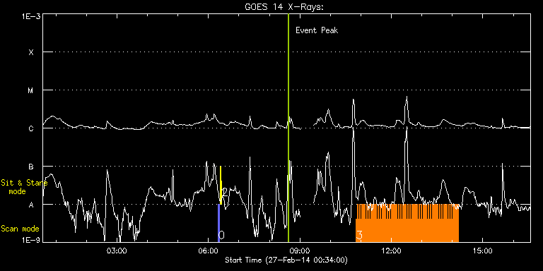 EIS Observation timeline overlay to GOES-Xray curve