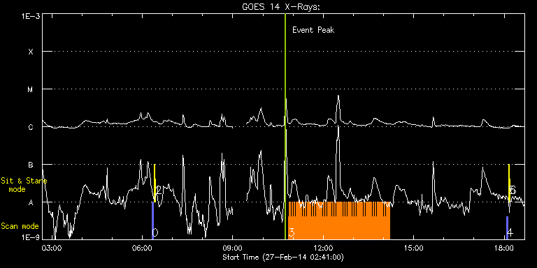 EIS Observation timeline overlay to GOES-Xray curve Code 1" 2" 40" 266" EIS Observations list for this event: STUDY ACRONYM ID DATE OBSERVED DESCRIPTION NOAA# TARGET 0 PRY_slot_contextLITE | 38855 | 2014/02/27 06:19:19 | Synoptic observations | 1987 | Active Region TIMELINE ID DATE OBSERVED FITS FILE XCEN (+W/-E) YCEN (+N/-S) DUR ----------------------------------------------------------------------------------------------------------------- 38855 | 2014/02/27 06:19:19.000 | eis_l0_20140227_061919.fits.gz | -15.14 | -0.35 | 2m56s 1 Alignment_266 | 38856 | 2014/02/27 06:22:57 | Synoptic observations | 1987 | Quiet Sun TIMELINE ID DATE OBSERVED FITS FILE XCEN (+W/-E) YCEN (+N/-S) DUR ----------------------------------------------------------------------------------------------------------------- 38856 | 2014/02/27 06:22:57.000 | eis_l0_20140227_062257.fits.gz | -132.57 | -0.35 | 1m22s 2 XRT_synop_AIA | 38857 | 2014/02/27 06:25:46 | Synoptic observations | 1987 | Quiet Sun TIMELINE ID DATE OBSERVED FITS FILE XCEN (+W/-E) YCEN (+N/-S) DUR ----------------------------------------------------------------------------------------------------------------- 38857 | 2014/02/27 06:25:46.000 | eis_l0_20140227_062546.fits.gz | -132.49 | -0.35 | 10s 3 Cam_flare_diag | 38904 | 2014/02/27 10:50:20 | HOP 245 | | Flare TIMELINE ID DATE OBSERVED FITS FILE XCEN (+W/-E) YCEN (+N/-S) DUR ----------------------------------------------------------------------------------------------------------------- 38904 | 2014/02/27 10:50:20.000 | eis_l0_20140227_105020.fits.gz | -678.59 | -164.65 | 2m12s 38904 | 2014/02/27 10:52:34.000 | eis_l0_20140227_105234.fits.gz | -678.29 | -164.50 | 2m12s 38904 | 2014/02/27 10:54:49.000 | eis_l0_20140227_105449.fits.gz | -678.05 | -164.42 | 2m11s 38904 | 2014/02/27 10:57:03.000 | eis_l0_20140227_105703.fits.gz | -677.90 | -164.50 | 2m12s 38904 | 2014/02/27 10:59:17.000 | eis_l0_20140227_105917.fits.gz | -677.59 | -164.42 | 2m12s 38904 | 2014/02/27 11:01:32.000 | eis_l0_20140227_110132.fits.gz | -677.44 | -164.42 | 2m12s 38904 | 2014/02/27 11:03:46.000 | eis_l0_20140227_110346.fits.gz | -677.20 | -164.42 | 2m13s 38904 | 2014/02/27 11:06:01.000 | eis_l0_20140227_110601.fits.gz | -676.90 | -164.26 | 2m12s 38904 | 2014/02/27 11:08:16.000 | eis_l0_20140227_110816.fits.gz | -676.66 | -164.34 | 2m12s 38904 | 2014/02/27 11:10:31.000 | eis_l0_20140227_111031.fits.gz | -676.43 | -164.34 | 2m12s 38904 | 2014/02/27 11:12:46.000 | eis_l0_20140227_111246.fits.gz | -676.28 | -164.19 | 2m11s 38904 | 2014/02/27 11:15:00.000 | eis_l0_20140227_111500.fits.gz | -675.89 | -164.19 | 2m12s 38904 | 2014/02/27 11:17:14.000 | eis_l0_20140227_111714.fits.gz | -675.74 | -164.26 | 2m12s 38904 | 2014/02/27 11:19:29.000 | eis_l0_20140227_111929.fits.gz | -675.51 | -164.19 | 2m12s 38904 | 2014/02/27 11:21:43.000 | eis_l0_20140227_112143.fits.gz | -675.27 | -164.11 | 2m12s 38904 | 2014/02/27 11:23:58.000 | eis_l0_20140227_112358.fits.gz | -675.04 | -164.11 | 2m12s 38904 | 2014/02/27 11:26:12.000 | eis_l0_20140227_112612.fits.gz | -674.81 | -164.11 | 2m12s 38904 | 2014/02/27 11:28:27.000 | eis_l0_20140227_112827.fits.gz | -674.58 | -164.03 | 2m12s 38904 | 2014/02/27 11:30:42.000 | eis_l0_20140227_113042.fits.gz | -674.27 | -164.11 | 2m12s 38904 | 2014/02/27 11:32:56.000 | eis_l0_20140227_113256.fits.gz | -674.11 | -164.03 | 2m12s 38904 | 2014/02/27 11:35:10.000 | eis_l0_20140227_113510.fits.gz | -673.88 | -163.96 | 2m12s 38904 | 2014/02/27 11:37:25.000 | eis_l0_20140227_113725.fits.gz | -673.57 | -163.88 | 2m11s 38904 | 2014/02/27 11:39:39.000 | eis_l0_20140227_113939.fits.gz | -673.42 | -163.88 | 2m12s 38904 | 2014/02/27 11:41:54.000 | eis_l0_20140227_114154.fits.gz | -673.19 | -163.88 | 2m12s 38904 | 2014/02/27 11:44:08.000 | eis_l0_20140227_114408.fits.gz | -672.96 | -163.88 | 2m12s 38904 | 2014/02/27 11:46:23.000 | eis_l0_20140227_114623.fits.gz | -672.65 | -163.72 | 2m12s 38904 | 2014/02/27 11:48:37.000 | eis_l0_20140227_114837.fits.gz | -672.41 | -163.72 | 2m12s 38904 | 2014/02/27 11:50:52.000 | eis_l0_20140227_115052.fits.gz | -672.26 | -163.72 | 2m12s 38904 | 2014/02/27 11:53:07.000 | eis_l0_20140227_115307.fits.gz | -672.03 | -163.72 | 2m11s 38904 | 2014/02/27 11:55:21.000 | eis_l0_20140227_115521.fits.gz | -671.64 | -163.72 | 2m12s 38904 | 2014/02/27 11:57:36.000 | eis_l0_20140227_115736.fits.gz | -671.49 | -163.72 | 2m11s 38904 | 2014/02/27 11:59:50.000 | eis_l0_20140227_115950.fits.gz | -671.18 | -163.57 | 2m12s 38904 | 2014/02/27 12:02:05.000 | eis_l0_20140227_120205.fits.gz | -671.02 | -163.57 | 2m11s 38904 | 2014/02/27 12:04:19.000 | eis_l0_20140227_120419.fits.gz | -670.79 | -163.57 | 2m12s 38904 | 2014/02/27 12:06:33.000 | eis_l0_20140227_120633.fits.gz | -670.56 | -163.57 | 2m12s 38904 | 2014/02/27 12:08:48.000 | eis_l0_20140227_120848.fits.gz | -670.25 | -163.34 | 2m12s 38904 | 2014/02/27 12:11:03.000 | eis_l0_20140227_121103.fits.gz | -670.10 | -163.41 | 2m11s 38904 | 2014/02/27 12:13:17.000 | eis_l0_20140227_121317.fits.gz | -669.87 | -163.41 | 2m12s 38904 | 2014/02/27 12:15:32.000 | eis_l0_20140227_121532.fits.gz | -669.56 | -163.49 | 2m12s 38904 | 2014/02/27 12:17:47.000 | eis_l0_20140227_121747.fits.gz | -669.40 | -163.41 | 2m11s 38904 | 2014/02/27 12:20:01.000 | eis_l0_20140227_122001.fits.gz | -669.17 | -163.41 | 2m12s 38904 | 2014/02/27 12:22:16.000 | eis_l0_20140227_122216.fits.gz | -668.94 | -163.26 | 2m11s 38904 | 2014/02/27 12:24:30.000 | eis_l0_20140227_122430.fits.gz | -668.63 | -163.18 | 2m12s 38904 | 2014/02/27 12:26:45.000 | eis_l0_20140227_122645.fits.gz | -668.47 | -163.26 | 2m11s 38904 | 2014/02/27 12:28:59.000 | eis_l0_20140227_122859.fits.gz | -668.17 | -163.11 | 2m12s 38904 | 2014/02/27 12:31:14.000 | eis_l0_20140227_123114.fits.gz | -668.01 | -163.18 | 2m11s 38904 | 2014/02/27 12:33:28.000 | eis_l0_20140227_123328.fits.gz | -667.78 | -163.11 | 2m12s 38904 | 2014/02/27 12:35:43.000 | eis_l0_20140227_123543.fits.gz | -667.47 | -163.18 | 2m12s 38904 | 2014/02/27 12:37:58.000 | e