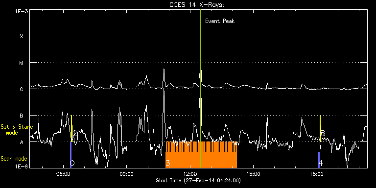 EIS Observation timeline overlay to GOES-Xray curve Code 1" 2" 40" 266" EIS Observations list for this event: STUDY ACRONYM ID DATE OBSERVED DESCRIPTION NOAA# TARGET 0 PRY_slot_contextLITE | 38855 | 2014/02/27 06:19:19 | Synoptic observations | 1987 | Active Region TIMELINE ID DATE OBSERVED FITS FILE XCEN (+W/-E) YCEN (+N/-S) DUR ----------------------------------------------------------------------------------------------------------------- 38855 | 2014/02/27 06:19:19.000 | eis_l0_20140227_061919.fits.gz | -15.14 | -0.35 | 2m56s 1 Alignment_266 | 38856 | 2014/02/27 06:22:57 | Synoptic observations | 1987 | Quiet Sun TIMELINE ID DATE OBSERVED FITS FILE XCEN (+W/-E) YCEN (+N/-S) DUR ----------------------------------------------------------------------------------------------------------------- 38856 | 2014/02/27 06:22:57.000 | eis_l0_20140227_062257.fits.gz | -132.57 | -0.35 | 1m22s 2 XRT_synop_AIA | 38857 | 2014/02/27 06:25:46 | Synoptic observations | 1987 | Quiet Sun TIMELINE ID DATE OBSERVED FITS FILE XCEN (+W/-E) YCEN (+N/-S) DUR ----------------------------------------------------------------------------------------------------------------- 38857 | 2014/02/27 06:25:46.000 | eis_l0_20140227_062546.fits.gz | -132.49 | -0.35 | 10s 3 Cam_flare_diag | 38904 | 2014/02/27 10:50:20 | HOP 245 | | Flare TIMELINE ID DATE OBSERVED FITS FILE XCEN (+W/-E) YCEN (+N/-S) DUR ----------------------------------------------------------------------------------------------------------------- 38904 | 2014/02/27 10:50:20.000 | eis_l0_20140227_105020.fits.gz | -678.59 | -164.65 | 2m12s 38904 | 2014/02/27 10:52:34.000 | eis_l0_20140227_105234.fits.gz | -678.29 | -164.50 | 2m12s 38904 | 2014/02/27 10:54:49.000 | eis_l0_20140227_105449.fits.gz | -678.05 | -164.42 | 2m11s 38904 | 2014/02/27 10:57:03.000 | eis_l0_20140227_105703.fits.gz | -677.90 | -164.50 | 2m12s 38904 | 2014/02/27 10:59:17.000 | eis_l0_20140227_105917.fits.gz | -677.59 | -164.42 | 2m12s 38904 | 2014/02/27 11:01:32.000 | eis_l0_20140227_110132.fits.gz | -677.44 | -164.42 | 2m12s 38904 | 2014/02/27 11:03:46.000 | eis_l0_20140227_110346.fits.gz | -677.20 | -164.42 | 2m13s 38904 | 2014/02/27 11:06:01.000 | eis_l0_20140227_110601.fits.gz | -676.90 | -164.26 | 2m12s 38904 | 2014/02/27 11:08:16.000 | eis_l0_20140227_110816.fits.gz | -676.66 | -164.34 | 2m12s 38904 | 2014/02/27 11:10:31.000 | eis_l0_20140227_111031.fits.gz | -676.43 | -164.34 | 2m12s 38904 | 2014/02/27 11:12:46.000 | eis_l0_20140227_111246.fits.gz | -676.28 | -164.19 | 2m11s 38904 | 2014/02/27 11:15:00.000 | eis_l0_20140227_111500.fits.gz | -675.89 | -164.19 | 2m12s 38904 | 2014/02/27 11:17:14.000 | eis_l0_20140227_111714.fits.gz | -675.74 | -164.26 | 2m12s 38904 | 2014/02/27 11:19:29.000 | eis_l0_20140227_111929.fits.gz | -675.51 | -164.19 | 2m12s 38904 | 2014/02/27 11:21:43.000 | eis_l0_20140227_112143.fits.gz | -675.27 | -164.11 | 2m12s 38904 | 2014/02/27 11:23:58.000 | eis_l0_20140227_112358.fits.gz | -675.04 | -164.11 | 2m12s 38904 | 2014/02/27 11:26:12.000 | eis_l0_20140227_112612.fits.gz | -674.81 | -164.11 | 2m12s 38904 | 2014/02/27 11:28:27.000 | eis_l0_20140227_112827.fits.gz | -674.58 | -164.03 | 2m12s 38904 | 2014/02/27 11:30:42.000 | eis_l0_20140227_113042.fits.gz | -674.27 | -164.11 | 2m12s 38904 | 2014/02/27 11:32:56.000 | eis_l0_20140227_113256.fits.gz | -674.11 | -164.03 | 2m12s 38904 | 2014/02/27 11:35:10.000 | eis_l0_20140227_113510.fits.gz | -673.88 | -163.96 | 2m12s 38904 | 2014/02/27 11:37:25.000 | eis_l0_20140227_113725.fits.gz | -673.57 | -163.88 | 2m11s 38904 | 2014/02/27 11:39:39.000 | eis_l0_20140227_113939.fits.gz | -673.42 | -163.88 | 2m12s 38904 | 2014/02/27 11:41:54.000 | eis_l0_20140227_114154.fits.gz | -673.19 | -163.88 | 2m12s 38904 | 2014/02/27 11:44:08.000 | eis_l0_20140227_114408.fits.gz | -672.96 | -163.88 | 2m12s 38904 | 2014/02/27 11:46:23.000 | eis_l0_20140227_114623.fits.gz | -672.65 | -163.72 | 2m12s 38904 | 2014/02/27 11:48:37.000 | eis_l0_20140227_114837.fits.gz | -672.41 | -163.72 | 2m12s 38904 | 2014/02/27 11:50:52.000 | eis_l0_20140227_115052.fits.gz | -672.26 | -163.72 | 2m12s 38904 | 2014/02/27 11:53:07.000 | eis_l0_20140227_115307.fits.gz | -672.03 | -163.72 | 2m11s 38904 | 2014/02/27 11:55:21.000 | eis_l0_20140227_115521.fits.gz | -671.64 | -163.72 | 2m12s 38904 | 2014/02/27 11:57:36.000 | eis_l0_20140227_115736.fits.gz | -671.49 | -163.72 | 2m11s 38904 | 2014/02/27 11:59:50.000 | eis_l0_20140227_115950.fits.gz | -671.18 | -163.57 | 2m12s 38904 | 2014/02/27 12:02:05.000 | eis_l0_20140227_120205.fits.gz | -671.02 | -163.57 | 2m11s 38904 | 2014/02/27 12:04:19.000 | eis_l0_20140227_120419.fits.gz | -670.79 | -163.57 | 2m12s 38904 | 2014/02/27 12:06:33.000 | eis_l0_20140227_120633.fits.gz | -670.56 | -163.57 | 2m12s 38904 | 2014/02/27 12:08:48.000 | eis_l0_20140227_120848.fits.gz | -670.25 | -163.34 | 2m12s 38904 | 2014/02/27 12:11:03.000 | eis_l0_20140227_121103.fits.gz | -670.10 | -163.41 | 2m11s 38904 | 2014/02/27 12:13:17.000 | eis_l0_20140227_121317.fits.gz | -669.87 | -163.41 | 2m12s 38904 | 2014/02/27 12:15:32.000 | eis_l0_20140227_121532.fits.gz | -669.56 | -163.49 | 2m12s 38904 | 2014/02/27 12:17:47.000 | eis_l0_20140227_121747.fits.gz | -669.40 | -163.41 | 2m11s 38904 | 2014/02/27 12:20:01.000 | eis_l0_20140227_122001.fits.gz | -669.17 | -163.41 | 2m12s 38904 | 2014/02/27 12:22:16.000 | eis_l0_20140227_122216.fits.gz | -668.94 | -163.26 | 2m11s 38904 | 2014/02/27 12:24:30.000 | eis_l0_20140227_122430.fits.gz | -668.63 | -163.18 | 2m12s 38904 | 2014/02/27 12:26:45.000 | eis_l0_20140227_122645.fits.gz | -668.47 | -163.26 | 2m11s 38904 | 2014/02/27 12:28:59.000 | eis_l0_20140227_122859.fits.gz | -668.17 | -163.11 | 2m12s 38904 | 2014/02/27 12:31:14.000 | eis_l0_20140227_123114.fits.gz | -668.01 | -163.18 | 2m11s 38904 | 2014/02/27 12:33:28.000 | eis_l0_20140227_123328.fits.gz | -667.78 | -163.11 | 2m12s 38904 | 2014/02/27 12:35:43.000 | eis_l0_20140227_123543.fits.gz | -667.47 | -163.18 | 2m12s 38904 | 2014/02/27 12:37:58.000 | e