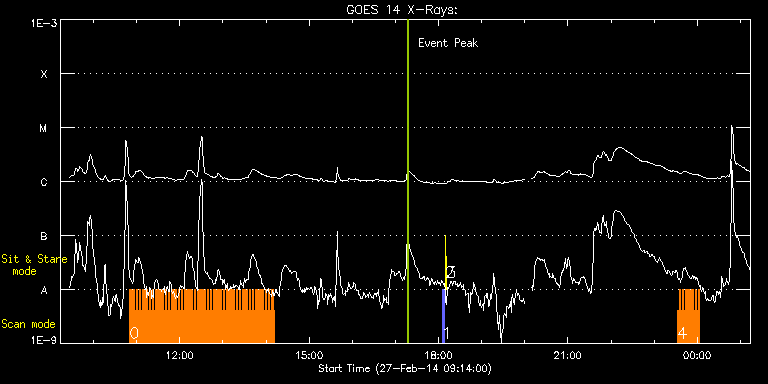 EIS Observation timeline overlay to GOES-Xray curve Code 1" 2" 40" 266" EIS Observations list for this event: STUDY ACRONYM ID DATE OBSERVED DESCRIPTION NOAA# TARGET 0 Cam_flare_diag | 38904 | 2014/02/27 10:50:20 | HOP 245 | | Flare TIMELINE ID DATE OBSERVED FITS FILE XCEN (+W/-E) YCEN (+N/-S) DUR ----------------------------------------------------------------------------------------------------------------- 38904 | 2014/02/27 10:50:20.000 | eis_l0_20140227_105020.fits.gz | -678.59 | -164.65 | 2m12s 38904 | 2014/02/27 10:52:34.000 | eis_l0_20140227_105234.fits.gz | -678.29 | -164.50 | 2m12s 38904 | 2014/02/27 10:54:49.000 | eis_l0_20140227_105449.fits.gz | -678.05 | -164.42 | 2m11s 38904 | 2014/02/27 10:57:03.000 | eis_l0_20140227_105703.fits.gz | -677.90 | -164.50 | 2m12s 38904 | 2014/02/27 10:59:17.000 | eis_l0_20140227_105917.fits.gz | -677.59 | -164.42 | 2m12s 38904 | 2014/02/27 11:01:32.000 | eis_l0_20140227_110132.fits.gz | -677.44 | -164.42 | 2m12s 38904 | 2014/02/27 11:03:46.000 | eis_l0_20140227_110346.fits.gz | -677.20 | -164.42 | 2m13s 38904 | 2014/02/27 11:06:01.000 | eis_l0_20140227_110601.fits.gz | -676.90 | -164.26 | 2m12s 38904 | 2014/02/27 11:08:16.000 | eis_l0_20140227_110816.fits.gz | -676.66 | -164.34 | 2m12s 38904 | 2014/02/27 11:10:31.000 | eis_l0_20140227_111031.fits.gz | -676.43 | -164.34 | 2m12s 38904 | 2014/02/27 11:12:46.000 | eis_l0_20140227_111246.fits.gz | -676.28 | -164.19 | 2m11s 38904 | 2014/02/27 11:15:00.000 | eis_l0_20140227_111500.fits.gz | -675.89 | -164.19 | 2m12s 38904 | 2014/02/27 11:17:14.000 | eis_l0_20140227_111714.fits.gz | -675.74 | -164.26 | 2m12s 38904 | 2014/02/27 11:19:29.000 | eis_l0_20140227_111929.fits.gz | -675.51 | -164.19 | 2m12s 38904 | 2014/02/27 11:21:43.000 | eis_l0_20140227_112143.fits.gz | -675.27 | -164.11 | 2m12s 38904 | 2014/02/27 11:23:58.000 | eis_l0_20140227_112358.fits.gz | -675.04 | -164.11 | 2m12s 38904 | 2014/02/27 11:26:12.000 | eis_l0_20140227_112612.fits.gz | -674.81 | -164.11 | 2m12s 38904 | 2014/02/27 11:28:27.000 | eis_l0_20140227_112827.fits.gz | -674.58 | -164.03 | 2m12s 38904 | 2014/02/27 11:30:42.000 | eis_l0_20140227_113042.fits.gz | -674.27 | -164.11 | 2m12s 38904 | 2014/02/27 11:32:56.000 | eis_l0_20140227_113256.fits.gz | -674.11 | -164.03 | 2m12s 38904 | 2014/02/27 11:35:10.000 | eis_l0_20140227_113510.fits.gz | -673.88 | -163.96 | 2m12s 38904 | 2014/02/27 11:37:25.000 | eis_l0_20140227_113725.fits.gz | -673.57 | -163.88 | 2m11s 38904 | 2014/02/27 11:39:39.000 | eis_l0_20140227_113939.fits.gz | -673.42 | -163.88 | 2m12s 38904 | 2014/02/27 11:41:54.000 | eis_l0_20140227_114154.fits.gz | -673.19 | -163.88 | 2m12s 38904 | 2014/02/27 11:44:08.000 | eis_l0_20140227_114408.fits.gz | -672.96 | -163.88 | 2m12s 38904 | 2014/02/27 11:46:23.000 | eis_l0_20140227_114623.fits.gz | -672.65 | -163.72 | 2m12s 38904 | 2014/02/27 11:48:37.000 | eis_l0_20140227_114837.fits.gz | -672.41 | -163.72 | 2m12s 38904 | 2014/02/27 11:50:52.000 | eis_l0_20140227_115052.fits.gz | -672.26 | -163.72 | 2m12s 38904 | 2014/02/27 11:53:07.000 | eis_l0_20140227_115307.fits.gz | -672.03 | -163.72 | 2m11s 38904 | 2014/02/27 11:55:21.000 | eis_l0_20140227_115521.fits.gz | -671.64 | -163.72 | 2m12s 38904 | 2014/02/27 11:57:36.000 | eis_l0_20140227_115736.fits.gz | -671.49 | -163.72 | 2m11s 38904 | 2014/02/27 11:59:50.000 | eis_l0_20140227_115950.fits.gz | -671.18 | -163.57 | 2m12s 38904 | 2014/02/27 12:02:05.000 | eis_l0_20140227_120205.fits.gz | -671.02 | -163.57 | 2m11s 38904 | 2014/02/27 12:04:19.000 | eis_l0_20140227_120419.fits.gz | -670.79 | -163.57 | 2m12s 38904 | 2014/02/27 12:06:33.000 | eis_l0_20140227_120633.fits.gz | -670.56 | -163.57 | 2m12s 38904 | 2014/02/27 12:08:48.000 | eis_l0_20140227_120848.fits.gz | -670.25 | -163.34 | 2m12s 38904 | 2014/02/27 12:11:03.000 | eis_l0_20140227_121103.fits.gz | -670.10 | -163.41 | 2m11s 38904 | 2014/02/27 12:13:17.000 | eis_l0_20140227_121317.fits.gz | -669.87 | -163.41 | 2m12s 38904 | 2014/02/27 12:15:32.000 | eis_l0_20140227_121532.fits.gz | -669.56 | -163.49 | 2m12s 38904 | 2014/02/27 12:17:47.000 | eis_l0_20140227_121747.fits.gz | -669.40 | -163.41 | 2m11s 38904 | 2014/02/27 12:20:01.000 | eis_l0_20140227_122001.fits.gz | -669.17 | -163.41 | 2m12s 38904 | 2014/02/27 12:22:16.000 | eis_l0_20140227_122216.fits.gz | -668.94 | -163.26 | 2m11s 38904 | 2014/02/27 12:24:30.000 | eis_l0_20140227_122430.fits.gz | -668.63 | -163.18 | 2m12s 38904 | 2014/02/27 12:26:45.000 | eis_l0_20140227_122645.fits.gz | -668.47 | -163.26 | 2m11s 38904 | 2014/02/27 12:28:59.000 | eis_l0_20140227_122859.fits.gz | -668.17 | -163.11 | 2m12s 38904 | 2014/02/27 12:31:14.000 | eis_l0_20140227_123114.fits.gz | -668.01 | -163.18 | 2m11s 38904 | 2014/02/27 12:33:28.000 | eis_l0_20140227_123328.fits.gz | -667.78 | -163.11 | 2m12s 38904 | 2014/02/27 12:35:43.000 | eis_l0_20140227_123543.fits.gz | -667.47 | -163.18 | 2m12s 38904 | 2014/02/27 12:37:58.000 | eis_l0_20140227_123758.fits.gz | -667.24 | -163.03 | 2m12s 38904 | 2014/02/27 12:40:13.000 | eis_l0_20140227_124013.fits.gz | -667.01 | -163.03 | 2m11s 38904 | 2014/02/27 12:42:27.000 | eis_l0_20140227_124227.fits.gz | -666.78 | -163.03 | 2m12s 38904 | 2014/02/27 12:44:42.000 | eis_l0_20140227_124442.fits.gz | -666.62 | -162.87 | 2m11s 38904 | 2014/02/27 12:46:56.000 | eis_l0_20140227_124656.fits.gz | -666.39 | -162.95 | 2m12s 38904 | 2014/02/27 12:49:10.000 | eis_l0_20140227_124910.fits.gz | -666.08 | -162.87 | 2m12s 38904 | 2014/02/27 12:51:25.000 | eis_l0_20140227_125125.fits.gz | -665.77 | -162.72 | 2m12s 38904 | 2014/02/27 12:53:40.000 | eis_l0_20140227_125340.fits.gz | -665.62 | -162.80 | 2m11s 38904 | 2014/02/27 12:55:54.000 | eis_l0_20140227_125554.fits.gz | -665.39 | -162.80 | 2m12s 38904 | 2014/02/27 12:58:09.000 | eis_l0_20140227_125809.fits.gz | -665.08 | -162.72 | 2m12s 38904 | 2014/02/27 13:00:24.000 | eis_l0_20140227_130024.fits.gz | -664.92 | -162.87 | 2m11s 38904 | 2014/02/27 13:02:38.000 | eis_l0_20140227_130238.fits.gz | -664.61 | -162.80 | 2m12s 38904 |