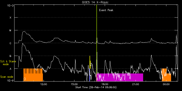 EIS Observation timeline overlay to GOES-Xray curve Code 1" 2" 40" 266" EIS Observations list for this event: STUDY ACRONYM ID DATE OBSERVED DESCRIPTION NOAA# TARGET 0 Cam_flare_diag | 38911 | 2014/02/28 10:02:19 | HOP 245 | | Flare TIMELINE ID DATE OBSERVED FITS FILE XCEN (+W/-E) YCEN (+N/-S) DUR ----------------------------------------------------------------------------------------------------------------- 38911 | 2014/02/28 10:02:19.000 | eis_l0_20140228_100219.fits.gz | -518.38 | -147.50 | 2m12s 38911 | 2014/02/28 10:04:34.000 | eis_l0_20140228_100434.fits.gz | -518.15 | -147.58 | 2m12s 38911 | 2014/02/28 10:06:49.000 | eis_l0_20140228_100649.fits.gz | -517.84 | -147.50 | 2m12s 38911 | 2014/02/28 10:09:03.000 | eis_l0_20140228_100903.fits.gz | -517.46 | -147.50 | 2m12s 38911 | 2014/02/28 10:11:18.000 | eis_l0_20140228_101118.fits.gz | -517.30 | -147.43 | 2m12s 38911 | 2014/02/28 10:13:33.000 | eis_l0_20140228_101333.fits.gz | -516.99 | -147.43 | 2m11s 38911 | 2014/02/28 10:15:47.000 | eis_l0_20140228_101547.fits.gz | -516.68 | -147.35 | 2m12s 38911 | 2014/02/28 10:18:02.000 | eis_l0_20140228_101802.fits.gz | -516.38 | -147.27 | 2m11s 38911 | 2014/02/28 10:20:16.000 | eis_l0_20140228_102016.fits.gz | -516.07 | -147.43 | 2m12s 38911 | 2014/02/28 10:22:31.000 | eis_l0_20140228_102231.fits.gz | -515.91 | -147.43 | 2m11s 38911 | 2014/02/28 10:24:45.000 | eis_l0_20140228_102445.fits.gz | -515.53 | -147.27 | 2m12s 38911 | 2014/02/28 10:27:00.000 | eis_l0_20140228_102700.fits.gz | -515.22 | -147.27 | 2m12s 38911 | 2014/02/28 10:29:14.000 | eis_l0_20140228_102914.fits.gz | -514.98 | -147.35 | 2m12s 38911 | 2014/02/28 10:31:29.000 | eis_l0_20140228_103129.fits.gz | -514.67 | -147.35 | 2m12s 38911 | 2014/02/28 10:33:44.000 | eis_l0_20140228_103344.fits.gz | -514.37 | -147.19 | 2m11s 38911 | 2014/02/28 10:35:58.000 | eis_l0_20140228_103558.fits.gz | -514.13 | -147.35 | 2m12s 38911 | 2014/02/28 10:38:13.000 | eis_l0_20140228_103813.fits.gz | -513.83 | -147.19 | 2m11s 38911 | 2014/02/28 10:40:27.000 | eis_l0_20140228_104027.fits.gz | -513.59 | -147.27 | 2m12s 38911 | 2014/02/28 10:42:41.000 | eis_l0_20140228_104241.fits.gz | -513.28 | -147.27 | 2m12s 38911 | 2014/02/28 10:44:56.000 | eis_l0_20140228_104456.fits.gz | -513.05 | -147.19 | 2m12s 38911 | 2014/02/28 10:47:11.000 | eis_l0_20140228_104711.fits.gz | -512.74 | -147.04 | 2m11s 38911 | 2014/02/28 10:49:25.000 | eis_l0_20140228_104925.fits.gz | -512.43 | -147.19 | 2m12s 38911 | 2014/02/28 10:51:40.000 | eis_l0_20140228_105140.fits.gz | -512.13 | -147.04 | 2m11s 38911 | 2014/02/28 10:53:54.000 | eis_l0_20140228_105354.fits.gz | -511.89 | -147.12 | 2m12s 38911 | 2014/02/28 10:56:09.000 | eis_l0_20140228_105609.fits.gz | -511.58 | -147.12 | 2m12s 38911 | 2014/02/28 10:58:24.000 | eis_l0_20140228_105824.fits.gz | -511.28 | -146.96 | 2m11s 38911 | 2014/02/28 11:00:38.000 | eis_l0_20140228_110038.fits.gz | -511.05 | -147.04 | 2m12s 38911 | 2014/02/28 11:02:53.000 | eis_l0_20140228_110253.fits.gz | -510.81 | -147.04 | 2m11s 38911 | 2014/02/28 11:05:07.000 | eis_l0_20140228_110507.fits.gz | -510.43 | -147.04 | 2m12s 38911 | 2014/02/28 11:07:21.000 | eis_l0_20140228_110721.fits.gz | -510.12 | -146.96 | 2m12s 38911 | 2014/02/28 11:09:36.000 | eis_l0_20140228_110936.fits.gz | -509.96 | -146.88 | 1m58s 38911 | 2014/02/28 11:11:57.000 | eis_l0_20140228_111157.fits.gz | -509.58 | -146.88 | 2m5s 38911 | 2014/02/28 11:14:05.000 | eis_l0_20140228_111405.fits.gz | -509.35 | -146.96 | 2m12s 38911 | 2014/02/28 11:16:20.000 | eis_l0_20140228_111620.fits.gz | -509.04 | -146.88 | 2m12s 38911 | 2014/02/28 11:18:35.000 | eis_l0_20140228_111835.fits.gz | -508.80 | -146.88 | 2m12s 38911 | 2014/02/28 11:20:50.000 | eis_l0_20140228_112050.fits.gz | -508.42 | -146.81 | 2m11s 38911 | 2014/02/28 11:23:04.000 | eis_l0_20140228_112304.fits.gz | -508.19 | -146.81 | 2m12s 38911 | 2014/02/28 11:25:19.000 | eis_l0_20140228_112519.fits.gz | -507.88 | -146.73 | 2m11s 38911 | 2014/02/28 11:27:33.000 | eis_l0_20140228_112733.fits.gz | -507.57 | -146.81 | 2m12s 38911 | 2014/02/28 11:29:47.000 | eis_l0_20140228_112947.fits.gz | -507.34 | -146.65 | 2m12s 38911 | 2014/02/28 11:32:02.000 | eis_l0_20140228_113202.fits.gz | -507.03 | -146.73 | 2m12s 38911 | 2014/02/28 11:34:17.000 | eis_l0_20140228_113417.fits.gz | -506.80 | -146.57 | 2m11s 38911 | 2014/02/28 11:36:31.000 | eis_l0_20140228_113631.fits.gz | -506.41 | -146.65 | 2m12s 38911 | 2014/02/28 11:38:46.000 | eis_l0_20140228_113846.fits.gz | -506.18 | -146.65 | 2m12s 38911 | 2014/02/28 11:41:01.000 | eis_l0_20140228_114101.fits.gz | -505.95 | -146.57 | 2m11s 38911 | 2014/02/28 11:43:15.000 | eis_l0_20140228_114315.fits.gz | -505.64 | -146.42 | 2m12s 38911 | 2014/02/28 11:45:30.000 | eis_l0_20140228_114530.fits.gz | -505.40 | -146.50 | 2m12s 38911 | 2014/02/28 11:47:45.000 | eis_l0_20140228_114745.fits.gz | -505.10 | -146.50 | 2m11s 38911 | 2014/02/28 11:49:59.000 | eis_l0_20140228_114959.fits.gz | -504.86 | -146.42 | 2m12s 38911 | 2014/02/28 11:52:14.000 | eis_l0_20140228_115214.fits.gz | -504.48 | -146.42 | 2m11s 1 PRY_slot_contextLITE | 38898 | 2014/02/28 16:27:19 | Synoptic observations | 1987 | Active Region TIMELINE ID DATE OBSERVED FITS FILE XCEN (+W/-E) YCEN (+N/-S) DUR ----------------------------------------------------------------------------------------------------------------- 38898 | 2014/02/28 16:27:19.000 | eis_l0_20140228_162719.fits.gz | -15.21 | -0.42 | 2m57s 2 Alignment_266 | 38899 | 2014/02/28 16:30:57 | Synoptic observations | 1992 | Quiet Sun TIMELINE ID DATE OBSERVED FITS FILE XCEN (+W/-E) YCEN (+N/-S) DUR ----------------------------------------------------------------------------------------------------------------- 38899 | 2014/02/28 16:30:57.000 | eis_l0_20140228_163057.fits.gz | -132.49 | -0.42 | 1m22s 3 XRT_synop_AIA | 38900 | 2014/02/28 16:33:46 | Synoptic observations | 1992 | Quiet Sun TIMELINE ID DATE OBSERVED FITS FILE XCEN (+W/-E) YCEN (+N/-S) DUR -----------------------------------------------------