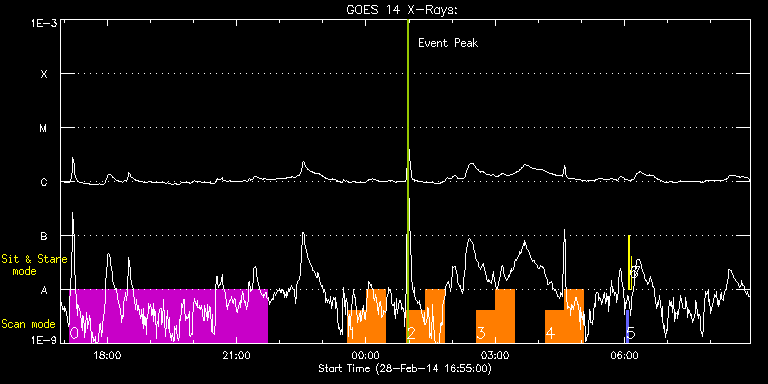 EIS Observation timeline overlay to GOES-Xray curve Code 1" 2" 40" 266" EIS Observations list for this event: STUDY ACRONYM ID DATE OBSERVED DESCRIPTION NOAA# TARGET 0 SK_CH_DIAG_320x384 | 38912 | 2014/02/28 17:08:03 | HOP 206 | | Coronal Hole TIMELINE ID DATE OBSERVED FITS FILE XCEN (+W/-E) YCEN (+N/-S) DUR ----------------------------------------------------------------------------------------------------------------- 38912 | 2014/02/28 17:08:03.000 | eis_l0_20140228_170803.fits.gz | 0.27 | -920.37 | 4h35m37s 1 PRY_footpoints_lite | 38917 | 2014/02/28 23:34:26 | HOP 246 | | Active Region TIMELINE ID DATE OBSERVED FITS FILE XCEN (+W/-E) YCEN (+N/-S) DUR ----------------------------------------------------------------------------------------------------------------- 38917 | 2014/02/28 23:34:26.000 | eis_l0_20140228_233426.fits.gz | -412.38 | -139.78 | 26m23s 38917 | 2014/03/01 00:00:52.000 | eis_l0_20140301_000052.fits.gz | -408.60 | -139.78 | 26m22s 2 PRY_footpoints_lite | 38914 | 2014/03/01 00:56:43 | HOP 246 | 1990 | Active Region TIMELINE ID DATE OBSERVED FITS FILE XCEN (+W/-E) YCEN (+N/-S) DUR ----------------------------------------------------------------------------------------------------------------- 38914 | 2014/03/01 00:56:43.000 | eis_l0_20140301_005643.fits.gz | -401.03 | -139.08 | 26m21s 38914 | 2014/03/01 01:23:07.000 | eis_l0_20140301_012307.fits.gz | -397.39 | -139.08 | 26m23s 3 PRY_footpoints_lite | 38915 | 2014/03/01 02:33:10 | HOP 246 | 1990 | Active Region TIMELINE ID DATE OBSERVED FITS FILE XCEN (+W/-E) YCEN (+N/-S) DUR ----------------------------------------------------------------------------------------------------------------- 38915 | 2014/03/01 02:33:10.000 | eis_l0_20140301_023310.fits.gz | -387.89 | -138.39 | 26m22s 38915 | 2014/03/01 02:59:35.000 | eis_l0_20140301_025935.fits.gz | -384.26 | -138.23 | 26m23s 4 PRY_footpoints_lite | 38916 | 2014/03/01 04:10:09 | HOP 246 | 1990 | Active Region TIMELINE ID DATE OBSERVED FITS FILE XCEN (+W/-E) YCEN (+N/-S) DUR ----------------------------------------------------------------------------------------------------------------- 38916 | 2014/03/01 04:10:09.000 | eis_l0_20140301_041009.fits.gz | -374.61 | -137.69 | 26m22s 38916 | 2014/03/01 04:36:35.000 | eis_l0_20140301_043635.fits.gz | -370.90 | -137.46 | 26m22s 5 PRY_slot_contextLITE | 38901 | 2014/03/01 06:02:19 | Synoptic observations | 1992 | Active Region TIMELINE ID DATE OBSERVED FITS FILE XCEN (+W/-E) YCEN (+N/-S) DUR ----------------------------------------------------------------------------------------------------------------- 38901 | 2014/03/01 06:02:19.000 | eis_l0_20140301_060219.fits.gz | -15.21 | -0.42 | 2m57s 6 Alignment_266 | 38902 | 2014/03/01 06:05:57 | Synoptic observations | 1989 | Quiet Sun TIMELINE ID DATE OBSERVED FITS FILE XCEN (+W/-E) YCEN (+N/-S) DUR ----------------------------------------------------------------------------------------------------------------- 38902 | 2014/03/01 06:05:57.000 | eis_l0_20140301_060557.fits.gz | -132.49 | -0.42 | 1m22s 7 XRT_synop_AIA | 38903 | 2014/03/01 06:08:46 | Synoptic observations | 1989 | Quiet Sun TIMELINE ID DATE OBSERVED FITS FILE XCEN (+W/-E) YCEN (+N/-S) DUR ----------------------------------------------------------------------------------------------------------------- 38903 | 2014/03/01 06:08:46.000 | eis_l0_20140301_060846.fits.gz | -132.49 | -0.50 | 10s : Check study information : Download file : View thumbnails For this event, also check for: