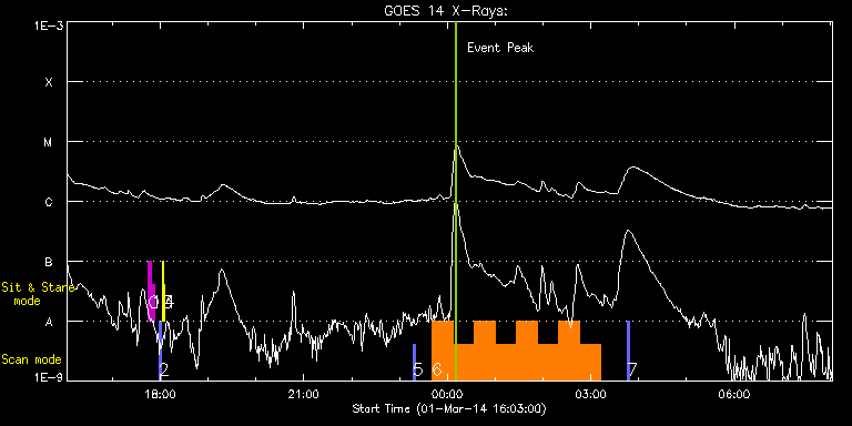 EIS Observation timeline overlay to GOES-Xray curve Code 1" 2" 40" 266" EIS Observations list for this event: STUDY ACRONYM ID DATE OBSERVED DESCRIPTION NOAA# TARGET 0 regcal071 | 38923 | 2014/03/01 17:45:12 | Dark exposures, CCD bottom rows (100s | | Engineering TIMELINE ID DATE OBSERVED FITS FILE XCEN (+W/-E) YCEN (+N/-S) DUR ----------------------------------------------------------------------------------------------------------------- 38923 | 2014/03/01 17:45:12.000 | eis_l0_20140301_174512.fits.gz | -449.44 | -623.30 | 3m22s 1 regcal072 | 38924 | 2014/03/01 17:49:01 | Dark exposures, top CCD rows (100s exp | | Engineering TIMELINE ID DATE OBSERVED FITS FILE XCEN (+W/-E) YCEN (+N/-S) DUR ----------------------------------------------------------------------------------------------------------------- 38924 | 2014/03/01 17:49:01.000 | eis_l0_20140301_174901.fits.gz | -449.05 | -112.30 | 3m21s 2 PRY_slot_contextLITE | 38925 | 2014/03/01 17:58:14 | EIS pointing alignment | 1992 | Active Region TIMELINE ID DATE OBSERVED FITS FILE XCEN (+W/-E) YCEN (+N/-S) DUR ----------------------------------------------------------------------------------------------------------------- 38925 | 2014/03/01 17:58:14.000 | eis_l0_20140301_175814.fits.gz | -15.21 | -0.35 | 2m56s 3 Alignment_266 | 38926 | 2014/03/01 18:02:07 | EIS pointing alignment | 1989 | Quiet Sun TIMELINE ID DATE OBSERVED FITS FILE XCEN (+W/-E) YCEN (+N/-S) DUR ----------------------------------------------------------------------------------------------------------------- 38926 | 2014/03/01 18:02:07.000 | eis_l0_20140301_180207.fits.gz | -132.57 | -0.35 | 1m22s 4 XRT_synop_AIA | 38927 | 2014/03/01 18:05:05 | EIS pointing alignment | 1989 | Quiet Sun TIMELINE ID DATE OBSERVED FITS FILE XCEN (+W/-E) YCEN (+N/-S) DUR ----------------------------------------------------------------------------------------------------------------- 38927 | 2014/03/01 18:05:05.000 | eis_l0_20140301_180505.fits.gz | -132.49 | -0.50 | 10s 5 PRY_slot_context_v3 | 38928 | 2014/03/01 23:16:33 | IHOP 246: Hot plasma in AR | 1990 | Active Region TIMELINE ID DATE OBSERVED FITS FILE XCEN (+W/-E) YCEN (+N/-S) DUR ----------------------------------------------------------------------------------------------------------------- 38928 | 2014/03/01 23:16:33.000 | eis_l0_20140301_231633.fits.gz | -226.49 | -170.89 | 2m56s 6 PRY_footpoints_lite | 38929 | 2014/03/01 23:40:34 | IHOP 246: Hot plasma in AR | | Active Region TIMELINE ID DATE OBSERVED FITS FILE XCEN (+W/-E) YCEN (+N/-S) DUR ----------------------------------------------------------------------------------------------------------------- 38929 | 2014/03/01 23:40:34.000 | eis_l0_20140301_234034.fits.gz | -190.13 | -96.58 | 26m22s 38929 | 2014/03/02 00:06:59.000 | eis_l0_20140302_000659.fits.gz | -186.03 | -96.58 | 26m23s 38929 | 2014/03/02 00:33:25.000 | eis_l0_20140302_003325.fits.gz | -182.25 | -96.35 | 26m22s 38929 | 2014/03/02 00:59:50.000 | eis_l0_20140302_005950.fits.gz | -178.31 | -96.28 | 26m23s 38929 | 2014/03/02 01:26:16.000 | eis_l0_20140302_012616.fits.gz | -174.45 | -96.12 | 26m22s 38929 | 2014/03/02 01:52:42.000 | eis_l0_20140302_015242.fits.gz | -170.51 | -95.97 | 26m22s 38929 | 2014/03/02 02:19:07.000 | eis_l0_20140302_021907.fits.gz | -166.64 | -96.12 | 26m22s 38929 | 2014/03/02 02:45:33.000 | eis_l0_20140302_024533.fits.gz | -162.70 | -95.97 | 26m22s 7 PRY_slot_context_v3 | 38930 | 2014/03/02 03:45:08 | IHOP 246: Hot plasma in AR | 1990 | Active Region TIMELINE ID DATE OBSERVED FITS FILE XCEN (+W/-E) YCEN (+N/-S) DUR ----------------------------------------------------------------------------------------------------------------- 38930 | 2014/03/02 03:45:08.000 | eis_l0_20140302_034508.fits.gz | -186.86 | -169.58 | 2m57s : Check study information : Download file : View thumbnails For this event, also check for: