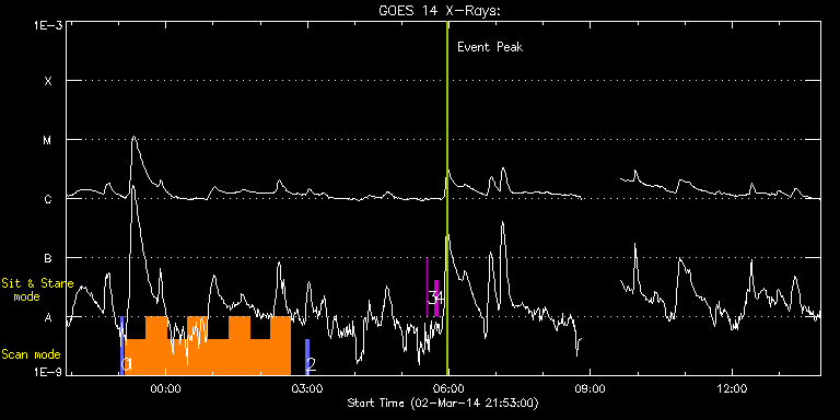 EIS Observation timeline overlay to GOES-Xray curve Code 1" 2" 40" 266" EIS Observations list for this event: STUDY ACRONYM ID DATE OBSERVED DESCRIPTION NOAA# TARGET 0 PRY_slot_context_v3 | 38937 | 2014/03/02 23:02:56 | IHOP 246: Hot plasma in AR | 1990 | Active Region TIMELINE ID DATE OBSERVED FITS FILE XCEN (+W/-E) YCEN (+N/-S) DUR ----------------------------------------------------------------------------------------------------------------- 38937 | 2014/03/02 23:02:56.000 | eis_l0_20140302_230256.fits.gz | -13.59 | -167.65 | 2m56s 1 PRY_footpoints_lite | 38938 | 2014/03/02 23:07:33 | IHOP 246: Hot plasma in AR | | Active Region TIMELINE ID DATE OBSERVED FITS FILE XCEN (+W/-E) YCEN (+N/-S) DUR ----------------------------------------------------------------------------------------------------------------- 38938 | 2014/03/02 23:07:33.000 | eis_l0_20140302_230733.fits.gz | 23.23 | -93.42 | 26m23s 38938 | 2014/03/02 23:33:59.000 | eis_l0_20140302_233359.fits.gz | 27.17 | -93.50 | 26m22s 38938 | 2014/03/03 00:00:24.000 | eis_l0_20140303_000024.fits.gz | 31.19 | -93.42 | 26m23s 38938 | 2014/03/03 00:26:50.000 | eis_l0_20140303_002650.fits.gz | 35.05 | -93.42 | 25m51s 38938 | 2014/03/03 00:53:15.000 | eis_l0_20140303_005315.fits.gz | 39.07 | -93.42 | 26m23s 38938 | 2014/03/03 01:19:41.000 | eis_l0_20140303_011941.fits.gz | 43.01 | -93.57 | 26m22s 38938 | 2014/03/03 01:46:06.000 | eis_l0_20140303_014606.fits.gz | 47.02 | -93.57 | 25m51s 38938 | 2014/03/03 02:12:32.000 | eis_l0_20140303_021232.fits.gz | 50.96 | -93.50 | 26m22s 2 PRY_slot_context_v3 | 38939 | 2014/03/03 02:58:20 | IHOP 246: Hot plasma in AR | 1990 | Active Region TIMELINE ID DATE OBSERVED FITS FILE XCEN (+W/-E) YCEN (+N/-S) DUR ----------------------------------------------------------------------------------------------------------------- 38939 | 2014/03/03 02:58:20.000 | eis_l0_20140303_025820.fits.gz | 21.63 | -167.49 | 2m57s 3 regcal070 | 38940 | 2014/03/03 05:32:27 | Flat field with overscan pixels (50*8) | | Engineering TIMELINE ID DATE OBSERVED FITS FILE XCEN (+W/-E) YCEN (+N/-S) DUR ----------------------------------------------------------------------------------------------------------------- 38940 | 2014/03/03 05:32:27.000 | eis_l0_20140303_053227.fits.gz | -177.84 | -98.16 | 3s 4 regcal074 | 38941 | 2014/03/03 05:42:24 | Dark exposures including overscan pixe | | Engineering TIMELINE ID DATE OBSERVED FITS FILE XCEN (+W/-E) YCEN (+N/-S) DUR ----------------------------------------------------------------------------------------------------------------- 38941 | 2014/03/03 05:42:24.000 | eis_l0_20140303_054224.fits.gz | -176.52 | -98.01 | 3m22s : Check study information : Download file : View thumbnails For this event, also check for: