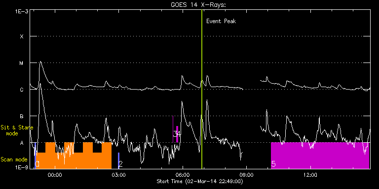 EIS Observation timeline overlay to GOES-Xray curve Code 1" 2" 40" 266" EIS Observations list for this event: STUDY ACRONYM ID DATE OBSERVED DESCRIPTION NOAA# TARGET 0 PRY_slot_context_v3 | 38937 | 2014/03/02 23:02:56 | IHOP 246: Hot plasma in AR | 1990 | Active Region TIMELINE ID DATE OBSERVED FITS FILE XCEN (+W/-E) YCEN (+N/-S) DUR ----------------------------------------------------------------------------------------------------------------- 38937 | 2014/03/02 23:02:56.000 | eis_l0_20140302_230256.fits.gz | -13.59 | -167.65 | 2m56s 1 PRY_footpoints_lite | 38938 | 2014/03/02 23:07:33 | IHOP 246: Hot plasma in AR | | Active Region TIMELINE ID DATE OBSERVED FITS FILE XCEN (+W/-E) YCEN (+N/-S) DUR ----------------------------------------------------------------------------------------------------------------- 38938 | 2014/03/02 23:07:33.000 | eis_l0_20140302_230733.fits.gz | 23.23 | -93.42 | 26m23s 38938 | 2014/03/02 23:33:59.000 | eis_l0_20140302_233359.fits.gz | 27.17 | -93.50 | 26m22s 38938 | 2014/03/03 00:00:24.000 | eis_l0_20140303_000024.fits.gz | 31.19 | -93.42 | 26m23s 38938 | 2014/03/03 00:26:50.000 | eis_l0_20140303_002650.fits.gz | 35.05 | -93.42 | 25m51s 38938 | 2014/03/03 00:53:15.000 | eis_l0_20140303_005315.fits.gz | 39.07 | -93.42 | 26m23s 38938 | 2014/03/03 01:19:41.000 | eis_l0_20140303_011941.fits.gz | 43.01 | -93.57 | 26m22s 38938 | 2014/03/03 01:46:06.000 | eis_l0_20140303_014606.fits.gz | 47.02 | -93.57 | 25m51s 38938 | 2014/03/03 02:12:32.000 | eis_l0_20140303_021232.fits.gz | 50.96 | -93.50 | 26m22s 2 PRY_slot_context_v3 | 38939 | 2014/03/03 02:58:20 | IHOP 246: Hot plasma in AR | 1990 | Active Region TIMELINE ID DATE OBSERVED FITS FILE XCEN (+W/-E) YCEN (+N/-S) DUR ----------------------------------------------------------------------------------------------------------------- 38939 | 2014/03/03 02:58:20.000 | eis_l0_20140303_025820.fits.gz | 21.63 | -167.49 | 2m57s 3 regcal070 | 38940 | 2014/03/03 05:32:27 | Flat field with overscan pixels (50*8) | | Engineering TIMELINE ID DATE OBSERVED FITS FILE XCEN (+W/-E) YCEN (+N/-S) DUR ----------------------------------------------------------------------------------------------------------------- 38940 | 2014/03/03 05:32:27.000 | eis_l0_20140303_053227.fits.gz | -177.84 | -98.16 | 3s 4 regcal074 | 38941 | 2014/03/03 05:42:24 | Dark exposures including overscan pixe | | Engineering TIMELINE ID DATE OBSERVED FITS FILE XCEN (+W/-E) YCEN (+N/-S) DUR ----------------------------------------------------------------------------------------------------------------- 38941 | 2014/03/03 05:42:24.000 | eis_l0_20140303_054224.fits.gz | -176.52 | -98.01 | 3m22s 5 SK_CH_DIAG_320x384 | 38942 | 2014/03/03 10:09:49 | HOP 206: Polar panorama map | | Coronal Hole TIMELINE ID DATE OBSERVED FITS FILE XCEN (+W/-E) YCEN (+N/-S) DUR ----------------------------------------------------------------------------------------------------------------- 38942 | 2014/03/03 10:09:49.000 | eis_l0_20140303_100949.fits.gz | -4.39 | -923.37 | 4h35m36s : Check study information : Download file : View thumbnails For this event, also check for: