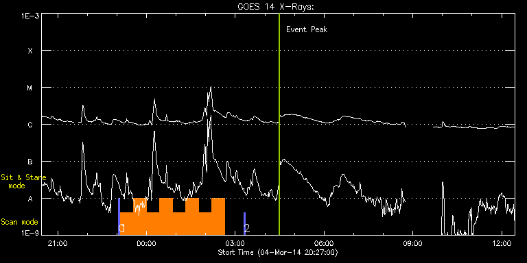 EIS Observation timeline overlay to GOES-Xray curve Code 1" 2" 40" 266" EIS Observations list for this event: STUDY ACRONYM ID DATE OBSERVED DESCRIPTION NOAA# TARGET 0 PRY_slot_context_v3 | 38958 | 2014/03/04 23:03:18 | IHOP 246: Hot plasma in AR | 1990 | Active Region TIMELINE ID DATE OBSERVED FITS FILE XCEN (+W/-E) YCEN (+N/-S) DUR ----------------------------------------------------------------------------------------------------------------- 38958 | 2014/03/04 23:03:18.000 | eis_l0_20140304_230318.fits.gz | 428.03 | -128.81 | 2m56s 1 PRY_footpoints_lite | 38959 | 2014/03/04 23:07:34 | IHOP 246: Hot plasma in AR | | Active Region TIMELINE ID DATE OBSERVED FITS FILE XCEN (+W/-E) YCEN (+N/-S) DUR ----------------------------------------------------------------------------------------------------------------- 38959 | 2014/03/04 23:07:34.000 | eis_l0_20140304_230734.fits.gz | 489.49 | -111.89 | 26m22s 38959 | 2014/03/04 23:33:59.000 | eis_l0_20140304_233359.fits.gz | 493.04 | -112.12 | 26m23s 38959 | 2014/03/05 00:00:25.000 | eis_l0_20140305_000025.fits.gz | 496.52 | -112.43 | 26m22s 38959 | 2014/03/05 00:26:50.000 | eis_l0_20140305_002650.fits.gz | 500.00 | -112.50 | 26m23s 38959 | 2014/03/05 00:53:16.000 | eis_l0_20140305_005316.fits.gz | 503.47 | -112.89 | 26m22s 38959 | 2014/03/05 01:19:41.000 | eis_l0_20140305_011941.fits.gz | 506.95 | -113.20 | 26m23s 38959 | 2014/03/05 01:46:07.000 | eis_l0_20140305_014607.fits.gz | 510.50 | -113.28 | 26m22s 38959 | 2014/03/05 02:12:33.000 | eis_l0_20140305_021233.fits.gz | 513.98 | -113.66 | 26m22s 2 PRY_slot_context_v3 | 38960 | 2014/03/05 03:16:56 | IHOP 246: Hot plasma in AR | 1990 | Active Region TIMELINE ID DATE OBSERVED FITS FILE XCEN (+W/-E) YCEN (+N/-S) DUR ----------------------------------------------------------------------------------------------------------------- 38960 | 2014/03/05 03:16:56.000 | eis_l0_20140305_031656.fits.gz | 461.33 | -131.13 | 2m56s : Check study information : Download file : View thumbnails For this event, also check for: