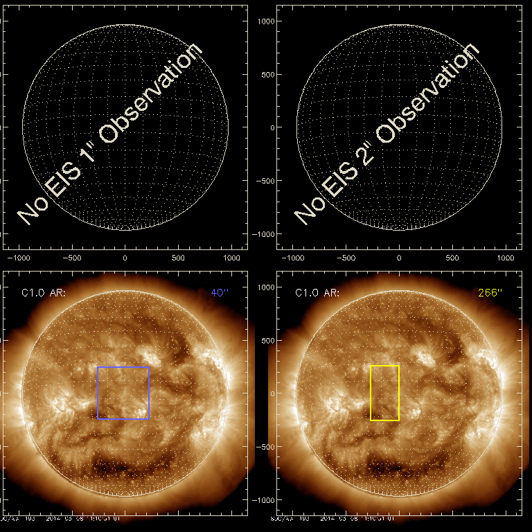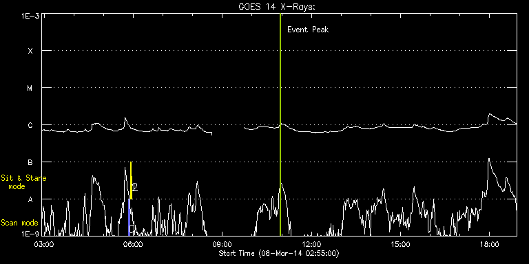 EIS Observation timeline overlay to GOES-Xray curve Code 1" 2" 40" 266" EIS Observations list for this event: STUDY ACRONYM ID DATE OBSERVED DESCRIPTION NOAA# TARGET 0 PRY_slot_contextLITE | 38987 | 2014/03/08 05:50:12 | EIS pointing monitoring | 1999 | Active Region TIMELINE ID DATE OBSERVED FITS FILE XCEN (+W/-E) YCEN (+N/-S) DUR ----------------------------------------------------------------------------------------------------------------- 38987 | 2014/03/08 05:50:12.000 | eis_l0_20140308_055012.fits.gz | -15.29 | -0.27 | 2m57s 1 Alignment_266 | 38988 | 2014/03/08 05:54:16 | EIS pointing monitoring | | Quiet Sun TIMELINE ID DATE OBSERVED FITS FILE XCEN (+W/-E) YCEN (+N/-S) DUR ----------------------------------------------------------------------------------------------------------------- 38988 | 2014/03/08 05:54:16.000 | eis_l0_20140308_055416.fits.gz | -132.49 | -0.50 | 1m22s 2 XRT_synop_AIA | 38989 | 2014/03/08 05:56:53 | EIS pointing monitoring | | Quiet Sun TIMELINE ID DATE OBSERVED FITS FILE XCEN (+W/-E) YCEN (+N/-S) DUR ----------------------------------------------------------------------------------------------------------------- 38989 | 2014/03/08 05:56:53.000 | eis_l0_20140308_055653.fits.gz | -132.49 | -0.50 | 10s : Check study information : Download file : View thumbnails For this event, also check for: