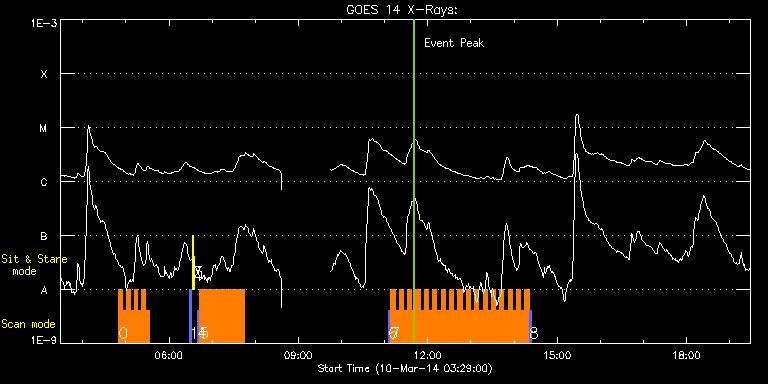 EIS Observation timeline overlay to GOES-Xray curve Code 1" 2" 40" 266" EIS Observations list for this event: STUDY ACRONYM ID DATE OBSERVED DESCRIPTION NOAA# TARGET 0 HH_Flare+AR_180x152 | 39032 | 2014/03/10 04:49:53 | AR 11998 near disc center | 1998 | Flare TIMELINE ID DATE OBSERVED FITS FILE XCEN (+W/-E) YCEN (+N/-S) DUR ----------------------------------------------------------------------------------------------------------------- 39032 | 2014/03/10 04:49:53.000 | eis_l0_20140310_044953.fits.gz | -255.36 | -70.94 | 5m19s 39032 | 2014/03/10 04:55:15.000 | eis_l0_20140310_045515.fits.gz | -254.59 | -70.94 | 5m18s 39032 | 2014/03/10 05:00:36.000 | eis_l0_20140310_050036.fits.gz | -253.82 | -70.86 | 5m19s 39032 | 2014/03/10 05:05:57.000 | eis_l0_20140310_050557.fits.gz | -252.97 | -70.86 | 5m18s 39032 | 2014/03/10 05:11:18.000 | eis_l0_20140310_051118.fits.gz | -252.20 | -70.86 | 5m19s 39032 | 2014/03/10 05:16:39.000 | eis_l0_20140310_051639.fits.gz | -251.42 | -70.78 | 5m18s 39032 | 2014/03/10 05:22:00.000 | eis_l0_20140310_052200.fits.gz | -250.65 | -70.78 | 5m18s 39032 | 2014/03/10 05:27:21.000 | eis_l0_20140310_052721.fits.gz | -249.88 | -70.78 | 5m18s 1 PRY_slot_contextLITE | 39005 | 2014/03/10 06:28:48 | EIS-AIA alignment | 1998 | Active Region TIMELINE ID DATE OBSERVED FITS FILE XCEN (+W/-E) YCEN (+N/-S) DUR ----------------------------------------------------------------------------------------------------------------- 39005 | 2014/03/10 06:28:48.000 | eis_l0_20140310_062848.fits.gz | -15.21 | -0.35 | 2m57s 2 Alignment_266 | 39006 | 2014/03/10 06:32:03 | EIS-AIA alignment | 1998 | Quiet Sun TIMELINE ID DATE OBSERVED FITS FILE XCEN (+W/-E) YCEN (+N/-S) DUR ----------------------------------------------------------------------------------------------------------------- 39006 | 2014/03/10 06:32:03.000 | eis_l0_20140310_063203.fits.gz | -132.49 | -0.42 | 1m22s 3 XRT_synop_AIA | 39007 | 2014/03/10 06:34:36 | EIS-AIA alignment | 1998 | Quiet Sun TIMELINE ID DATE OBSERVED FITS FILE XCEN (+W/-E) YCEN (+N/-S) DUR ----------------------------------------------------------------------------------------------------------------- 39007 | 2014/03/10 06:34:36.000 | eis_l0_20140310_063436.fits.gz | -132.49 | -0.50 | 10s 4 PRY_slot_context_v3 | 39018 | 2014/03/10 06:38:55 | EIS spectral atlas, QS | 1999 | Active Region TIMELINE ID DATE OBSERVED FITS FILE XCEN (+W/-E) YCEN (+N/-S) DUR ----------------------------------------------------------------------------------------------------------------- 39018 | 2014/03/10 06:38:55.000 | eis_l0_20140310_063855.fits.gz | 434.18 | 26.63 | 2m56s 5 Atlas_60 | 39019 | 2014/03/10 06:42:44 | EIS spectral atlas, QS | | Quiet Sun TIMELINE ID DATE OBSERVED FITS FILE XCEN (+W/-E) YCEN (+N/-S) DUR ----------------------------------------------------------------------------------------------------------------- 39019 | 2014/03/10 06:42:44.000 | eis_l0_20140310_064244.fits.gz | 449.31 | 26.70 | 1h1m39s 6 PRY_slot_context_v3 | 39020 | 2014/03/10 11:05:18 | HOP243, QS, at S-pole | | Active Region TIMELINE ID DATE OBSERVED FITS FILE XCEN (+W/-E) YCEN (+N/-S) DUR ----------------------------------------------------------------------------------------------------------------- 39020 | 2014/03/10 11:05:18.000 | eis_l0_20140310_110518.fits.gz | -52.94 | -951.41 | 2m57s 7 Cor_Hole_Jet_v1 | 39021 | 2014/03/10 11:08:39 | HOP243, QS, at S-pole | | Quiet Sun TIMELINE ID DATE OBSERVED FITS FILE XCEN (+W/-E) YCEN (+N/-S) DUR ----------------------------------------------------------------------------------------------------------------- 39021 | 2014/03/10 11:08:39.000 | eis_l0_20140310_110839.fits.gz | -39.60 | -951.33 | 5m47s 39021 | 2014/03/10 11:14:29.000 | eis_l0_20140310_111429.fits.gz | -39.53 | -951.48 | 5m46s 39021 | 2014/03/10 11:20:18.000 | eis_l0_20140310_112018.fits.gz | -39.60 | -951.25 | 5m47s 39021 | 2014/03/10 11:26:08.000 | eis_l0_20140310_112608.fits.gz | -39.76 | -951.41 | 5m46s 39021 | 2014/03/10 11:31:57.000 | eis_l0_20140310_113157.fits.gz | -39.60 | -951.33 | 5m47s 39021 | 2014/03/10 11:37:47.000 | eis_l0_20140310_113747.fits.gz | -39.60 | -951.33 | 5m46s 39021 | 2014/03/10 11:43:36.000 | eis_l0_20140310_114336.fits.gz | -39.60 | -951.41 | 5m47s 39021 | 2014/03/10 11:49:26.000 | eis_l0_20140310_114926.fits.gz | -39.60 | -951.48 | 5m47s 39021 | 2014/03/10 11:55:16.000 | eis_l0_20140310_115516.fits.gz | -39.60 | -951.33 | 5m46s 39021 | 2014/03/10 12:01:05.000 | eis_l0_20140310_120105.fits.gz | -39.60 | -951.33 | 5m47s 39021 | 2014/03/10 12:06:55.000 | eis_l0_20140310_120655.fits.gz | -39.53 | -951.33 | 5m47s 39021 | 2014/03/10 12:12:45.000 | eis_l0_20140310_121245.fits.gz | -39.60 | -951.41 | 5m47s 39021 | 2014/03/10 12:18:35.000 | eis_l0_20140310_121835.fits.gz | -39.60 | -951.33 | 5m47s 39021 | 2014/03/10 12:24:25.000 | eis_l0_20140310_122425.fits.gz | -39.60 | -951.33 | 5m47s 39021 | 2014/03/10 12:30:15.000 | eis_l0_20140310_123015.fits.gz | -39.53 | -951.41 | 5m47s 39021 | 2014/03/10 12:36:05.000 | eis_l0_20140310_123605.fits.gz | -39.53 | -951.10 | 5m46s 39021 | 2014/03/10 12:41:54.000 | eis_l0_20140310_124154.fits.gz | -39.60 | -951.33 | 5m47s 39021 | 2014/03/10 12:47:44.000 | eis_l0_20140310_124744.fits.gz | -39.60 | -951.41 | 5m47s 39021 | 2014/03/10 12:53:34.000 | eis_l0_20140310_125334.fits.gz | -39.60 | -951.25 | 5m46s 39021 | 2014/03/10 12:59:23.000 | eis_l0_20140310_125923.fits.gz | -39.60 | -951.25 | 5m47s 39021 | 2014/03/10 13:05:13.000 | eis_l0_20140310_130513.fits.gz | -39.60 | -951.25 | 5m46s 39021 | 2014/03/10 13:11:02.000 | eis_l0_20140310_131102.fits.gz | -39.53 | -951.33 | 5m47s 39021 | 2014/03/10 13:16:51.000 | eis_l0_20140310_131651.fits.gz | -39.53 | -951.33 | 5m47s 39021 | 2014/03/10 13:22:41.000 | eis_l0_20140310_132241.fits.gz | -39.60 | -951.33 | 5m47s 39021 | 2014/03/10 13:28:31.000 | eis_l0_20140310_132831.fits.gz | -39.60 | -951.33 | 5m46s 39021 | 2014/03/10 13:34:20.000 | eis_l0_20140310_133420.fits.gz | -39.60 | -951.25 | 5m47s 3
