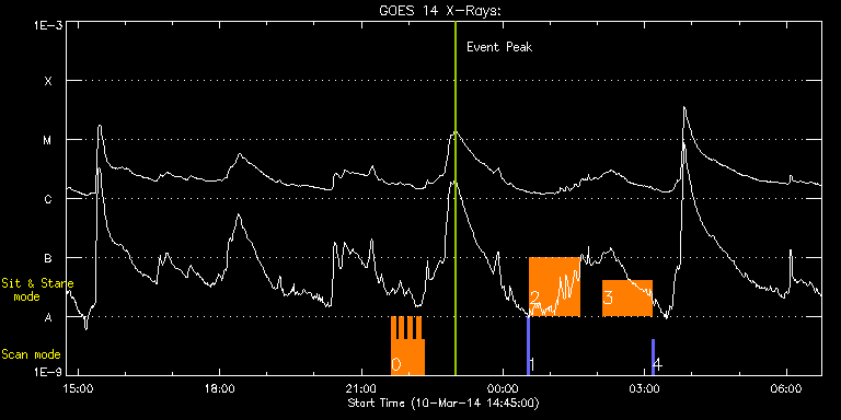 EIS Observation timeline overlay to GOES-Xray curve Code 1" 2" 40" 266" EIS Observations list for this event: STUDY ACRONYM ID DATE OBSERVED DESCRIPTION NOAA# TARGET 0 HH_Flare+AR_180x152 | 39035 | 2014/03/10 21:37:48 | AR 11998 near disc center | | Flare TIMELINE ID DATE OBSERVED FITS FILE XCEN (+W/-E) YCEN (+N/-S) DUR ----------------------------------------------------------------------------------------------------------------- 39035 | 2014/03/10 21:37:48.000 | eis_l0_20140310_213748.fits.gz | -103.57 | -67.69 | 5m18s 39035 | 2014/03/10 21:43:09.000 | eis_l0_20140310_214309.fits.gz | -102.64 | -67.69 | 5m18s 39035 | 2014/03/10 21:48:30.000 | eis_l0_20140310_214830.fits.gz | -102.03 | -67.69 | 5m18s 39035 | 2014/03/10 21:53:51.000 | eis_l0_20140310_215351.fits.gz | -101.02 | -67.69 | 5m18s 39035 | 2014/03/10 21:59:11.000 | eis_l0_20140310_215911.fits.gz | -100.25 | -67.62 | 5m18s 39035 | 2014/03/10 22:04:32.000 | eis_l0_20140310_220432.fits.gz | -99.48 | -67.62 | 5m18s 39035 | 2014/03/10 22:09:53.000 | eis_l0_20140310_220953.fits.gz | -98.63 | -67.69 | 5m18s 39035 | 2014/03/10 22:15:14.000 | eis_l0_20140310_221514.fits.gz | -97.78 | -67.62 | 5m18s 1 PRY_slot_context_v3 | 39023 | 2014/03/11 00:30:48 | IHOP248 (coronal rain). AR 11990 at W- | | Active Region TIMELINE ID DATE OBSERVED FITS FILE XCEN (+W/-E) YCEN (+N/-S) DUR ----------------------------------------------------------------------------------------------------------------- 39023 | 2014/03/11 00:30:48.000 | eis_l0_20140311_003048.fits.gz | 896.47 | -221.57 | 2m57s 2 vhh_slowar_sas_1h6m | 39024 | 2014/03/11 00:34:09 | IHOP248 (coronal rain). AR 11990 at W- | | Active Region TIMELINE ID DATE OBSERVED FITS FILE XCEN (+W/-E) YCEN (+N/-S) DUR ----------------------------------------------------------------------------------------------------------------- 39024 | 2014/03/11 00:34:09.000 | eis_l0_20140311_003409.fits.gz | 911.14 | -221.57 | 1h2m49s 3 vhh_slowar_sas_1h6m | 39025 | 2014/03/11 02:06:38 | IHOP248 (coronal rain). AR 11990 at W- | | Active Region TIMELINE ID DATE OBSERVED FITS FILE XCEN (+W/-E) YCEN (+N/-S) DUR ----------------------------------------------------------------------------------------------------------------- 39025 | 2014/03/11 02:06:38.000 | eis_l0_20140311_020638.fits.gz | 911.21 | -221.49 | 1h2m48s 4 PRY_slot_context_v3 | 39026 | 2014/03/11 03:09:37 | IHOP248 (coronal rain). AR 11990 at W- | | Active Region TIMELINE ID DATE OBSERVED FITS FILE XCEN (+W/-E) YCEN (+N/-S) DUR ----------------------------------------------------------------------------------------------------------------- 39026 | 2014/03/11 03:09:37.000 | eis_l0_20140311_030937.fits.gz | 896.40 | -221.65 | 2m57s : Check study information : Download file : View thumbnails For this event, also check for: