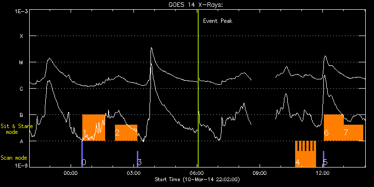 EIS Observation timeline overlay to GOES-Xray curve Code 1" 2" 40" 266" EIS Observations list for this event: STUDY ACRONYM ID DATE OBSERVED DESCRIPTION NOAA# TARGET 0 PRY_slot_context_v3 | 39023 | 2014/03/11 00:30:48 | IHOP248 (coronal rain). AR 11990 at W- | | Active Region TIMELINE ID DATE OBSERVED FITS FILE XCEN (+W/-E) YCEN (+N/-S) DUR ----------------------------------------------------------------------------------------------------------------- 39023 | 2014/03/11 00:30:48.000 | eis_l0_20140311_003048.fits.gz | 896.47 | -221.57 | 2m57s 1 vhh_slowar_sas_1h6m | 39024 | 2014/03/11 00:34:09 | IHOP248 (coronal rain). AR 11990 at W- | | Active Region TIMELINE ID DATE OBSERVED FITS FILE XCEN (+W/-E) YCEN (+N/-S) DUR ----------------------------------------------------------------------------------------------------------------- 39024 | 2014/03/11 00:34:09.000 | eis_l0_20140311_003409.fits.gz | 911.14 | -221.57 | 1h2m49s 2 vhh_slowar_sas_1h6m | 39025 | 2014/03/11 02:06:38 | IHOP248 (coronal rain). AR 11990 at W- | | Active Region TIMELINE ID DATE OBSERVED FITS FILE XCEN (+W/-E) YCEN (+N/-S) DUR ----------------------------------------------------------------------------------------------------------------- 39025 | 2014/03/11 02:06:38.000 | eis_l0_20140311_020638.fits.gz | 911.21 | -221.49 | 1h2m48s 3 PRY_slot_context_v3 | 39026 | 2014/03/11 03:09:37 | IHOP248 (coronal rain). AR 11990 at W- | | Active Region TIMELINE ID DATE OBSERVED FITS FILE XCEN (+W/-E) YCEN (+N/-S) DUR ----------------------------------------------------------------------------------------------------------------- 39026 | 2014/03/11 03:09:37.000 | eis_l0_20140311_030937.fits.gz | 896.40 | -221.65 | 2m57s 4 HH_Flare+AR_180x152 | 39099 | 2014/03/11 10:41:43 | AR12002 raster scan obs | 2002 | Flare TIMELINE ID DATE OBSERVED FITS FILE XCEN (+W/-E) YCEN (+N/-S) DUR ----------------------------------------------------------------------------------------------------------------- 39099 | 2014/03/11 10:41:43.000 | eis_l0_20140311_104143.fits.gz | -485.81 | -209.06 | 5m17s 39099 | 2014/03/11 10:47:03.000 | eis_l0_20140311_104703.fits.gz | -485.19 | -209.22 | 5m18s 39099 | 2014/03/11 10:52:24.000 | eis_l0_20140311_105224.fits.gz | -484.57 | -209.06 | 5m18s 39099 | 2014/03/11 10:57:45.000 | eis_l0_20140311_105745.fits.gz | -483.88 | -208.99 | 5m18s 39099 | 2014/03/11 11:03:05.000 | eis_l0_20140311_110305.fits.gz | -483.26 | -208.99 | 5m18s 39099 | 2014/03/11 11:08:26.000 | eis_l0_20140311_110826.fits.gz | -482.64 | -208.83 | 5m18s 39099 | 2014/03/11 11:13:47.000 | eis_l0_20140311_111347.fits.gz | -482.02 | -208.83 | 5m18s 39099 | 2014/03/11 11:19:08.000 | eis_l0_20140311_111908.fits.gz | -481.33 | -208.75 | 5m18s 39099 | 2014/03/11 11:24:29.000 | eis_l0_20140311_112429.fits.gz | -480.63 | -208.75 | 5m17s 39099 | 2014/03/11 11:29:49.000 | eis_l0_20140311_112949.fits.gz | -480.01 | -208.68 | 5m18s 39099 | 2014/03/11 11:35:09.000 | eis_l0_20140311_113509.fits.gz | -479.40 | -208.52 | 5m18s 5 PRY_slot_context_v3 | 39068 | 2014/03/11 12:00:20 | IHOP241, AR12002 flare obs, sit-and-st | 2002 | Active Region TIMELINE ID DATE OBSERVED FITS FILE XCEN (+W/-E) YCEN (+N/-S) DUR ----------------------------------------------------------------------------------------------------------------- 39068 | 2014/03/11 12:00:20.000 | eis_l0_20140311_120020.fits.gz | -488.97 | -208.21 | 2m56s 6 FLAREDOP_EIS | 39069 | 2014/03/11 12:03:41 | IHOP241, AR12002 flare obs, sit-and-st | | Flare TIMELINE ID DATE OBSERVED FITS FILE XCEN (+W/-E) YCEN (+N/-S) DUR ----------------------------------------------------------------------------------------------------------------- 39069 | 2014/03/11 12:03:41.000 | eis_l0_20140311_120341.fits.gz | -453.96 | -208.29 | 55m52s 7 FLAREDOP_EIS | 39070 | 2014/03/11 12:59:38 | IHOP241, AR12002 flare obs, sit-and-st | | Flare TIMELINE ID DATE OBSERVED FITS FILE XCEN (+W/-E) YCEN (+N/-S) DUR ----------------------------------------------------------------------------------------------------------------- 39070 | 2014/03/11 12:59:38.000 | eis_l0_20140311_125938.fits.gz | -447.00 | -207.67 | 55m52s : Check study information : Download file : View thumbnails For this event, also check for: