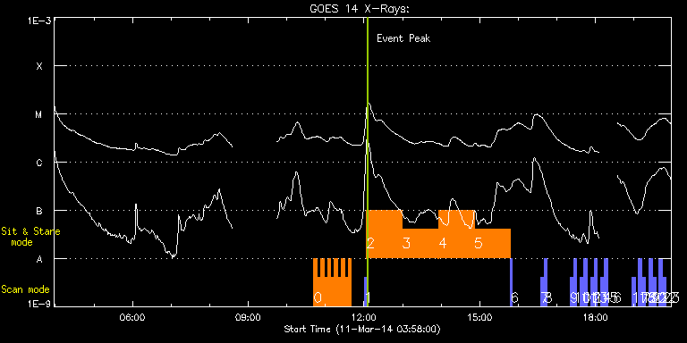 EIS Observation timeline overlay to GOES-Xray curve Code 1" 2" 40" 266" EIS Observations list for this event: STUDY ACRONYM ID DATE OBSERVED DESCRIPTION NOAA# TARGET 0 HH_Flare+AR_180x152 | 39099 | 2014/03/11 10:41:43 | AR12002 raster scan obs | 2002 | Flare TIMELINE ID DATE OBSERVED FITS FILE XCEN (+W/-E) YCEN (+N/-S) DUR ----------------------------------------------------------------------------------------------------------------- 39099 | 2014/03/11 10:41:43.000 | eis_l0_20140311_104143.fits.gz | -485.81 | -209.06 | 5m17s 39099 | 2014/03/11 10:47:03.000 | eis_l0_20140311_104703.fits.gz | -485.19 | -209.22 | 5m18s 39099 | 2014/03/11 10:52:24.000 | eis_l0_20140311_105224.fits.gz | -484.57 | -209.06 | 5m18s 39099 | 2014/03/11 10:57:45.000 | eis_l0_20140311_105745.fits.gz | -483.88 | -208.99 | 5m18s 39099 | 2014/03/11 11:03:05.000 | eis_l0_20140311_110305.fits.gz | -483.26 | -208.99 | 5m18s 39099 | 2014/03/11 11:08:26.000 | eis_l0_20140311_110826.fits.gz | -482.64 | -208.83 | 5m18s 39099 | 2014/03/11 11:13:47.000 | eis_l0_20140311_111347.fits.gz | -482.02 | -208.83 | 5m18s 39099 | 2014/03/11 11:19:08.000 | eis_l0_20140311_111908.fits.gz | -481.33 | -208.75 | 5m18s 39099 | 2014/03/11 11:24:29.000 | eis_l0_20140311_112429.fits.gz | -480.63 | -208.75 | 5m17s 39099 | 2014/03/11 11:29:49.000 | eis_l0_20140311_112949.fits.gz | -480.01 | -208.68 | 5m18s 39099 | 2014/03/11 11:35:09.000 | eis_l0_20140311_113509.fits.gz | -479.40 | -208.52 | 5m18s 1 PRY_slot_context_v3 | 39068 | 2014/03/11 12:00:20 | IHOP241, AR12002 flare obs, sit-and-st | 2002 | Active Region TIMELINE ID DATE OBSERVED FITS FILE XCEN (+W/-E) YCEN (+N/-S) DUR ----------------------------------------------------------------------------------------------------------------- 39068 | 2014/03/11 12:00:20.000 | eis_l0_20140311_120020.fits.gz | -488.97 | -208.21 | 2m56s 2 FLAREDOP_EIS | 39069 | 2014/03/11 12:03:41 | IHOP241, AR12002 flare obs, sit-and-st | | Flare TIMELINE ID DATE OBSERVED FITS FILE XCEN (+W/-E) YCEN (+N/-S) DUR ----------------------------------------------------------------------------------------------------------------- 39069 | 2014/03/11 12:03:41.000 | eis_l0_20140311_120341.fits.gz | -453.96 | -208.29 | 55m52s 3 FLAREDOP_EIS | 39070 | 2014/03/11 12:59:38 | IHOP241, AR12002 flare obs, sit-and-st | | Flare TIMELINE ID DATE OBSERVED FITS FILE XCEN (+W/-E) YCEN (+N/-S) DUR ----------------------------------------------------------------------------------------------------------------- 39070 | 2014/03/11 12:59:38.000 | eis_l0_20140311_125938.fits.gz | -447.00 | -207.67 | 55m52s 4 FLAREDOP_EIS | 39071 | 2014/03/11 13:55:34 | IHOP241, AR12002 flare obs, sit-and-st | | Flare TIMELINE ID DATE OBSERVED FITS FILE XCEN (+W/-E) YCEN (+N/-S) DUR ----------------------------------------------------------------------------------------------------------------- 39071 | 2014/03/11 13:55:34.000 | eis_l0_20140311_135534.fits.gz | -440.55 | -207.21 | 55m53s 5 FLAREDOP_EIS | 39072 | 2014/03/11 14:51:31 | IHOP241, AR12002 flare obs, sit-and-st | | Flare TIMELINE ID DATE OBSERVED FITS FILE XCEN (+W/-E) YCEN (+N/-S) DUR ----------------------------------------------------------------------------------------------------------------- 39072 | 2014/03/11 14:51:31.000 | eis_l0_20140311_145131.fits.gz | -433.60 | -206.82 | 55m52s 6 PRY_slot_context_v3 | 39073 | 2014/03/11 15:47:34 | IHOP241, AR12002 flare obs, sit-and-st | 2002 | Active Region TIMELINE ID DATE OBSERVED FITS FILE XCEN (+W/-E) YCEN (+N/-S) DUR ----------------------------------------------------------------------------------------------------------------- 39073 | 2014/03/11 15:47:34.000 | eis_l0_20140311_154734.fits.gz | -460.85 | -206.28 | 2m57s 7 full_sun_slot_scan_1 | 39036 | 2014/03/11 16:34:13 | HOP130 (01t/15) | 1996 | Quiet Sun TIMELINE ID DATE OBSERVED FITS FILE XCEN (+W/-E) YCEN (+N/-S) DUR ----------------------------------------------------------------------------------------------------------------- 39036 | 2014/03/11 16:34:13.000 | eis_l0_20140311_163413.fits.gz | 920.87 | 185.50 | 5m27s 8 full_sun_slot_scan_1 | 39037 | 2014/03/11 16:39:46 | HOP130 (01b/15) | | Quiet Sun TIMELINE ID DATE OBSERVED FITS FILE XCEN (+W/-E) YCEN (+N/-S) DUR ----------------------------------------------------------------------------------------------------------------- 39037 | 2014/03/11 16:39:46.000 | eis_l0_20140311_163946.fits.gz | 920.72 | -286.27 | 5m26s 9 full_sun_slot_scan_1 | 39038 | 2014/03/11 17:20:13 | HOP130 (02t/15) | | Quiet Sun TIMELINE ID DATE OBSERVED FITS FILE XCEN (+W/-E) YCEN (+N/-S) DUR ----------------------------------------------------------------------------------------------------------------- 39038 | 2014/03/11 17:20:13.000 | eis_l0_20140311_172013.fits.gz | 452.68 | 185.42 | 5m27s 10 full_sun_slot_scan_1 | 39039 | 2014/03/11 17:25:45 | HOP130 (02b/15) | | Quiet Sun TIMELINE ID DATE OBSERVED FITS FILE XCEN (+W/-E) YCEN (+N/-S) DUR ----------------------------------------------------------------------------------------------------------------- 39039 | 2014/03/11 17:25:45.000 | eis_l0_20140311_172545.fits.gz | 452.75 | -286.50 | 5m27s 11 full_sun_slot_scan_1 | 39040 | 2014/03/11 17:36:13 | HOP130 (03t/15) | 1998 | Quiet Sun TIMELINE ID DATE OBSERVED FITS FILE XCEN (+W/-E) YCEN (+N/-S) DUR ----------------------------------------------------------------------------------------------------------------- 39040 | 2014/03/11 17:36:13.000 | eis_l0_20140311_173613.fits.gz | -15.29 | 185.58 | 5m28s 12 full_sun_slot_scan_1 | 39041 | 2014/03/11 17:41:46 | HOP130 (03b/15) | | Quiet Sun TIMELINE ID DATE OBSERVED FITS FILE XCEN (+W/-E) YCEN (+N/-S) DUR ----------------------------------------------------------------------------------------------------------------- 39041 | 2014/03/11 17:41:46.000 | eis_l0_20140311_174146.fits.gz | -15.29 | -286.42 | 5m26s 13 full_sun_slot_scan_1 | 39042 | 2014/03/11 17:52:13 | HOP130 (04t/15) | | Quiet Sun TIMELINE ID DATE OBSERVED FITS FILE XCEN (