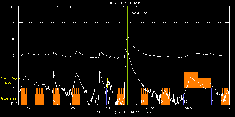 EIS Observation timeline overlay to GOES-Xray curve Code 1" 2" 40" 266" EIS Observations list for this event: STUDY ACRONYM ID DATE OBSERVED DESCRIPTION NOAA# TARGET 0 HH_Flare_162x152 | 39158 | 2014/03/13 11:12:53 | AR19996 raster scan obs at NW-limb | 1996 | Flare TIMELINE ID DATE OBSERVED FITS FILE XCEN (+W/-E) YCEN (+N/-S) DUR ----------------------------------------------------------------------------------------------------------------- 39158 | 2014/03/13 11:12:53.000 | eis_l0_20140313_111253.fits.gz | 982.66 | 311.43 | 4m11s 39158 | 2014/03/13 11:17:07.000 | eis_l0_20140313_111707.fits.gz | 982.74 | 311.51 | 4m10s 39158 | 2014/03/13 11:21:20.000 | eis_l0_20140313_112120.fits.gz | 982.66 | 311.51 | 4m11s 39158 | 2014/03/13 11:25:34.000 | eis_l0_20140313_112534.fits.gz | 982.74 | 311.43 | 4m10s 39158 | 2014/03/13 11:29:47.000 | eis_l0_20140313_112947.fits.gz | 982.59 | 311.28 | 4m10s 39158 | 2014/03/13 11:34:00.000 | eis_l0_20140313_113400.fits.gz | 982.66 | 311.35 | 4m11s 39158 | 2014/03/13 11:38:14.000 | eis_l0_20140313_113814.fits.gz | 982.59 | 311.35 | 4m10s 1 HH_Flare+AR_180x152 | 39166 | 2014/03/13 12:19:14 | AR19996 raster scan obs at NW-limb | 1996 | Flare TIMELINE ID DATE OBSERVED FITS FILE XCEN (+W/-E) YCEN (+N/-S) DUR ----------------------------------------------------------------------------------------------------------------- 39166 | 2014/03/13 12:19:14.000 | eis_l0_20140313_121914.fits.gz | 981.24 | 311.43 | 5m18s 39166 | 2014/03/13 12:24:35.000 | eis_l0_20140313_122435.fits.gz | 981.24 | 311.28 | 5m18s 39166 | 2014/03/13 12:29:56.000 | eis_l0_20140313_122956.fits.gz | 981.17 | 311.28 | 5m18s 39166 | 2014/03/13 12:35:16.000 | eis_l0_20140313_123516.fits.gz | 981.09 | 311.43 | 5m18s 39166 | 2014/03/13 12:40:36.000 | eis_l0_20140313_124036.fits.gz | 981.24 | 311.51 | 5m18s 39166 | 2014/03/13 12:45:57.000 | eis_l0_20140313_124557.fits.gz | 981.24 | 311.43 | 5m18s 39166 | 2014/03/13 12:51:18.000 | eis_l0_20140313_125118.fits.gz | 981.17 | 311.28 | 5m17s 2 HH_Flare+AR_180x152 | 39150 | 2014/03/13 13:38:50 | AR19996 raster scan obs at NW-limb | 1996 | Flare TIMELINE ID DATE OBSERVED FITS FILE XCEN (+W/-E) YCEN (+N/-S) DUR ----------------------------------------------------------------------------------------------------------------- 39150 | 2014/03/13 13:38:50.000 | eis_l0_20140313_133850.fits.gz | 981.17 | 311.28 | 5m18s 39150 | 2014/03/13 13:44:11.000 | eis_l0_20140313_134411.fits.gz | 981.17 | 311.35 | 5m18s 39150 | 2014/03/13 13:49:32.000 | eis_l0_20140313_134932.fits.gz | 981.17 | 311.35 | 5m18s 39150 | 2014/03/13 13:54:53.000 | eis_l0_20140313_135453.fits.gz | 981.17 | 311.35 | 5m17s 39150 | 2014/03/13 14:00:13.000 | eis_l0_20140313_140013.fits.gz | 981.17 | 311.35 | 5m18s 39150 | 2014/03/13 14:05:34.000 | eis_l0_20140313_140534.fits.gz | 981.24 | 311.43 | 5m17s 3 HH_Flare_162x152 | 39160 | 2014/03/13 15:08:24 | AR19996 raster scan obs at NW-limb | 1996 | Flare TIMELINE ID DATE OBSERVED FITS FILE XCEN (+W/-E) YCEN (+N/-S) DUR ----------------------------------------------------------------------------------------------------------------- 39160 | 2014/03/13 15:08:24.000 | eis_l0_20140313_150824.fits.gz | 982.66 | 311.35 | 4m10s 39160 | 2014/03/13 15:12:37.000 | eis_l0_20140313_151237.fits.gz | 982.74 | 311.35 | 4m11s 39160 | 2014/03/13 15:16:51.000 | eis_l0_20140313_151651.fits.gz | 982.74 | 311.28 | 4m10s 39160 | 2014/03/13 15:21:04.000 | eis_l0_20140313_152104.fits.gz | 982.74 | 311.28 | 4m11s 39160 | 2014/03/13 15:25:18.000 | eis_l0_20140313_152518.fits.gz | 982.74 | 311.35 | 4m10s 39160 | 2014/03/13 15:29:31.000 | eis_l0_20140313_152931.fits.gz | 982.59 | 311.35 | 4m11s 39160 | 2014/03/13 15:33:45.000 | eis_l0_20140313_153345.fits.gz | 982.66 | 311.35 | 4m10s 39160 | 2014/03/13 15:37:58.000 | eis_l0_20140313_153758.fits.gz | 982.74 | 311.51 | 4m11s 4 PRY_slot_contextLITE | 39109 | 2014/03/13 17:42:20 | EIS-AIA alignment | 2002 | Active Region TIMELINE ID DATE OBSERVED FITS FILE XCEN (+W/-E) YCEN (+N/-S) DUR ----------------------------------------------------------------------------------------------------------------- 39109 | 2014/03/13 17:42:20.000 | eis_l0_20140313_174220.fits.gz | -15.21 | -0.27 | 2m56s 5 Alignment_266 | 39110 | 2014/03/13 17:45:35 | EIS-AIA alignment | 2002 | Quiet Sun TIMELINE ID DATE OBSERVED FITS FILE XCEN (+W/-E) YCEN (+N/-S) DUR ----------------------------------------------------------------------------------------------------------------- 39110 | 2014/03/13 17:45:35.000 | eis_l0_20140313_174535.fits.gz | -132.49 | -0.35 | 1m22s 6 XRT_synop_AIA | 39111 | 2014/03/13 17:48:09 | EIS-AIA alignment | 2002 | Quiet Sun TIMELINE ID DATE OBSERVED FITS FILE XCEN (+W/-E) YCEN (+N/-S) DUR ----------------------------------------------------------------------------------------------------------------- 39111 | 2014/03/13 17:48:09.000 | eis_l0_20140313_174809.fits.gz | -132.57 | -0.58 | 10s 7 HH_Flare+AR_180x152 | 39152 | 2014/03/13 18:31:06 | AR19996 raster scan obs at NW-limb | 1996 | Flare TIMELINE ID DATE OBSERVED FITS FILE XCEN (+W/-E) YCEN (+N/-S) DUR ----------------------------------------------------------------------------------------------------------------- 39152 | 2014/03/13 18:31:06.000 | eis_l0_20140313_183106.fits.gz | 981.24 | 311.35 | 5m18s 39152 | 2014/03/13 18:36:27.000 | eis_l0_20140313_183627.fits.gz | 981.24 | 311.43 | 5m18s 39152 | 2014/03/13 18:41:47.000 | eis_l0_20140313_184147.fits.gz | 981.17 | 311.28 | 5m18s 39152 | 2014/03/13 18:47:07.000 | eis_l0_20140313_184707.fits.gz | 981.17 | 311.35 | 5m18s 39152 | 2014/03/13 18:52:28.000 | eis_l0_20140313_185228.fits.gz | 981.17 | 311.35 | 5m18s 39152 | 2014/03/13 18:57:49.000 | eis_l0_20140313_185749.fits.gz | 981.17 | 311.28 | 5m17s 39152 | 2014/03/13 19:03:09.000 | eis_l0_20140313_190309.fits.gz | 981.17 | 311.35 | 5m18s 8 HH_Flare_162x152 | 39165 | 2014/03/13 20:20:40 | AR19996 raster scan obs at NW-limb | 1996 | Flare TIMELINE ID DATE OBSERVED FITS FILE XCEN (+W/-E) YCEN (+N/